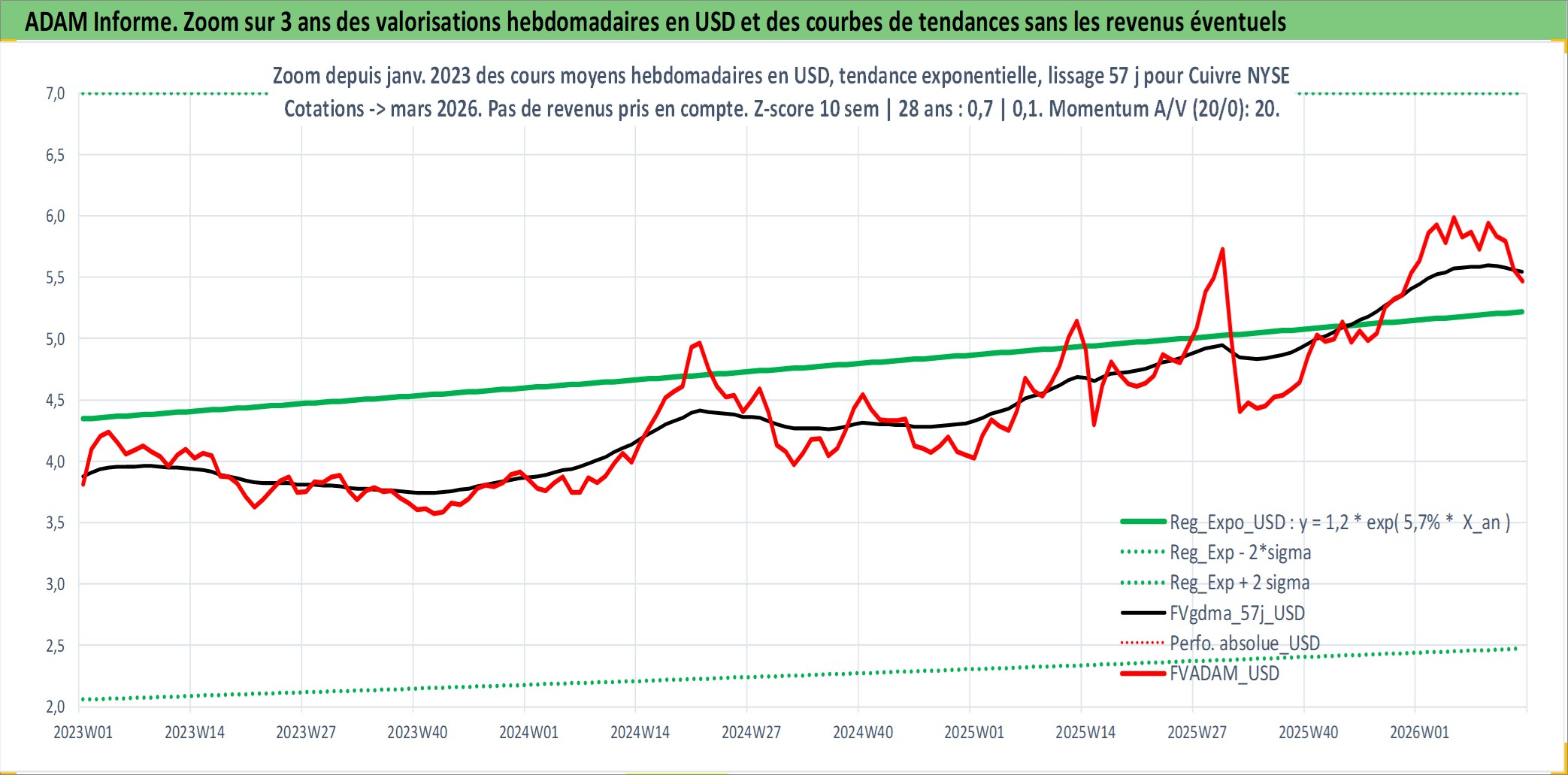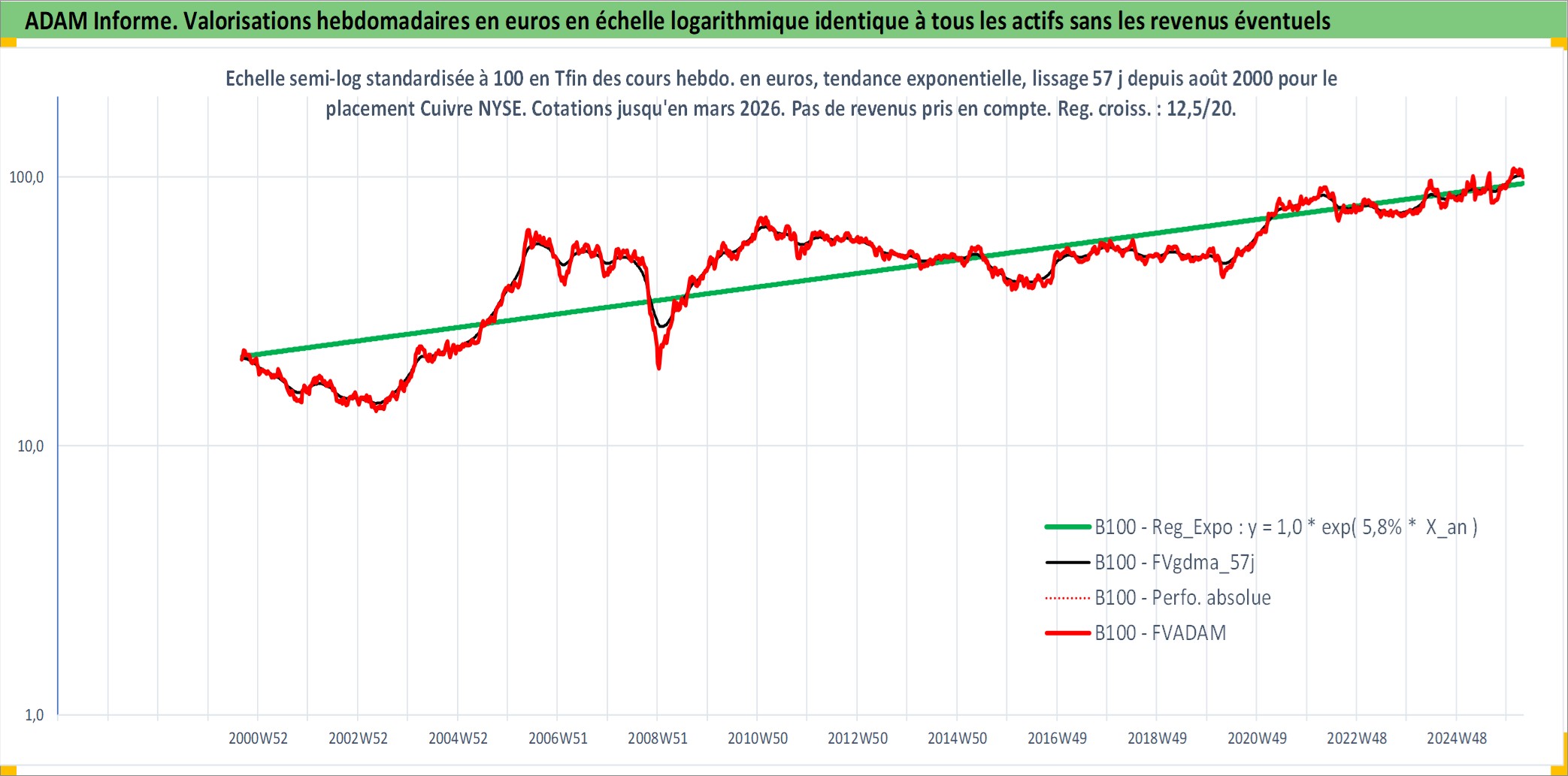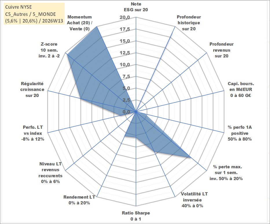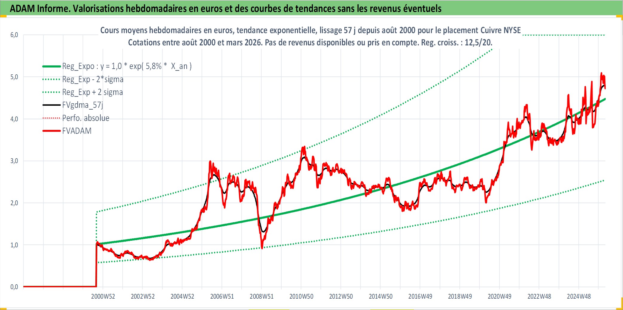 Site dédié aux investisseursPage dédiée sur site financeAnalyse des valorisations hebdomadaires de l'actif Cuivre NYSE. Cet actif est cote en USD. Les valorisations sont en contrevaleur EURO et couvrent les semaines 2000W35 a 2026W13. Les revenus de cet actif financier ne sont pas connus car non existants ou non disponibles sur le site Yahoo Finance. La note ESG de cet actif n'est pas connue.