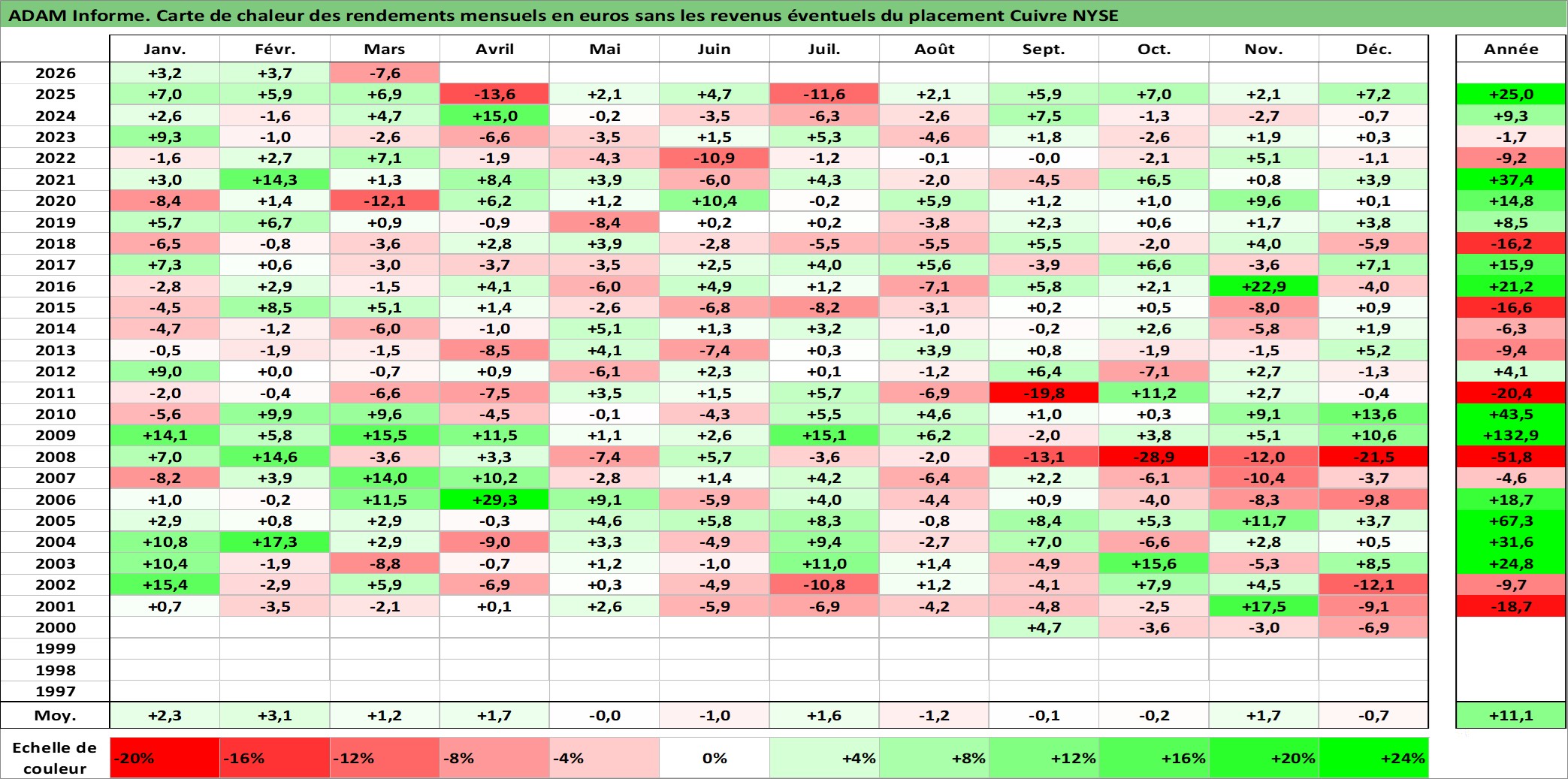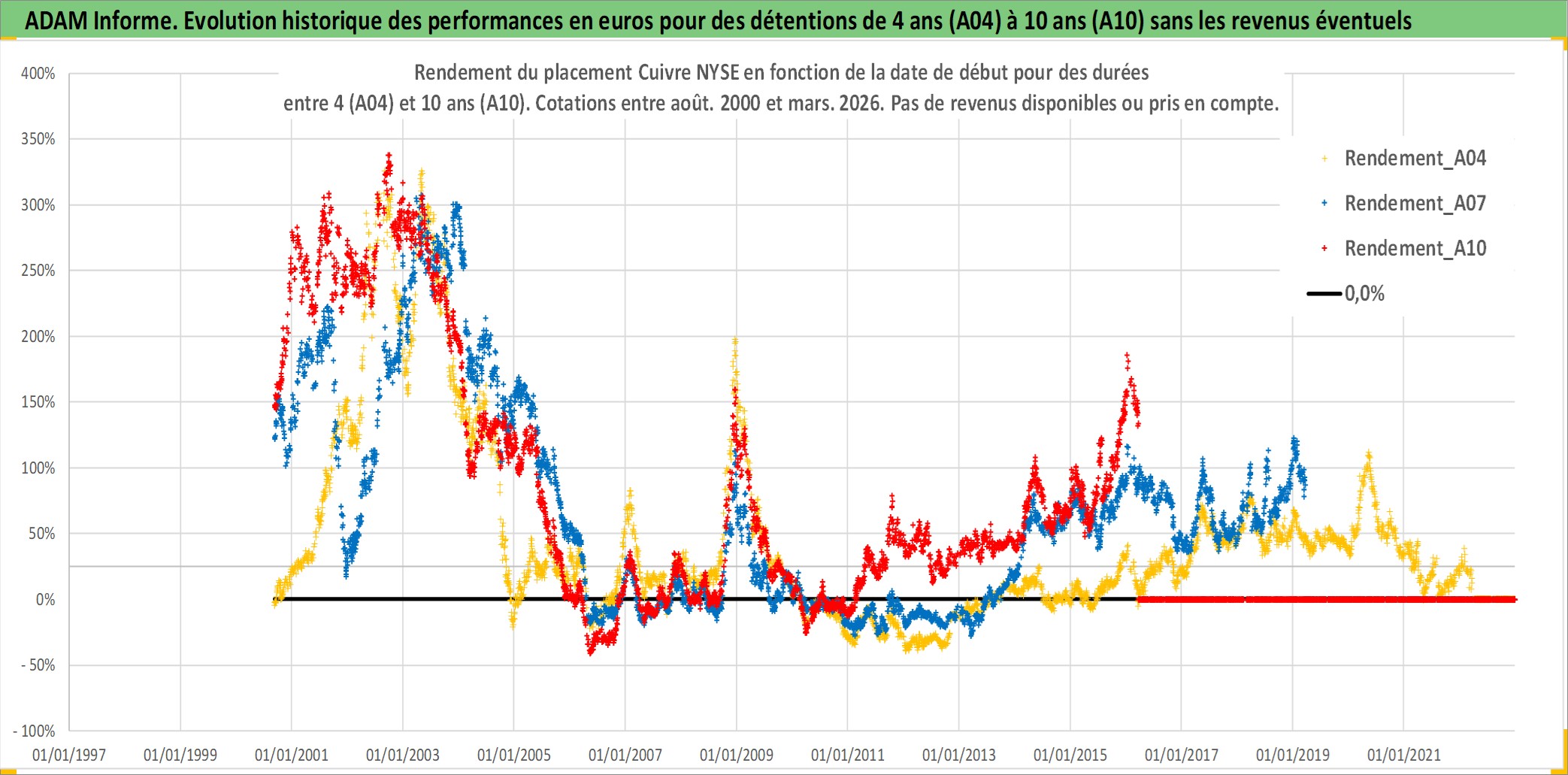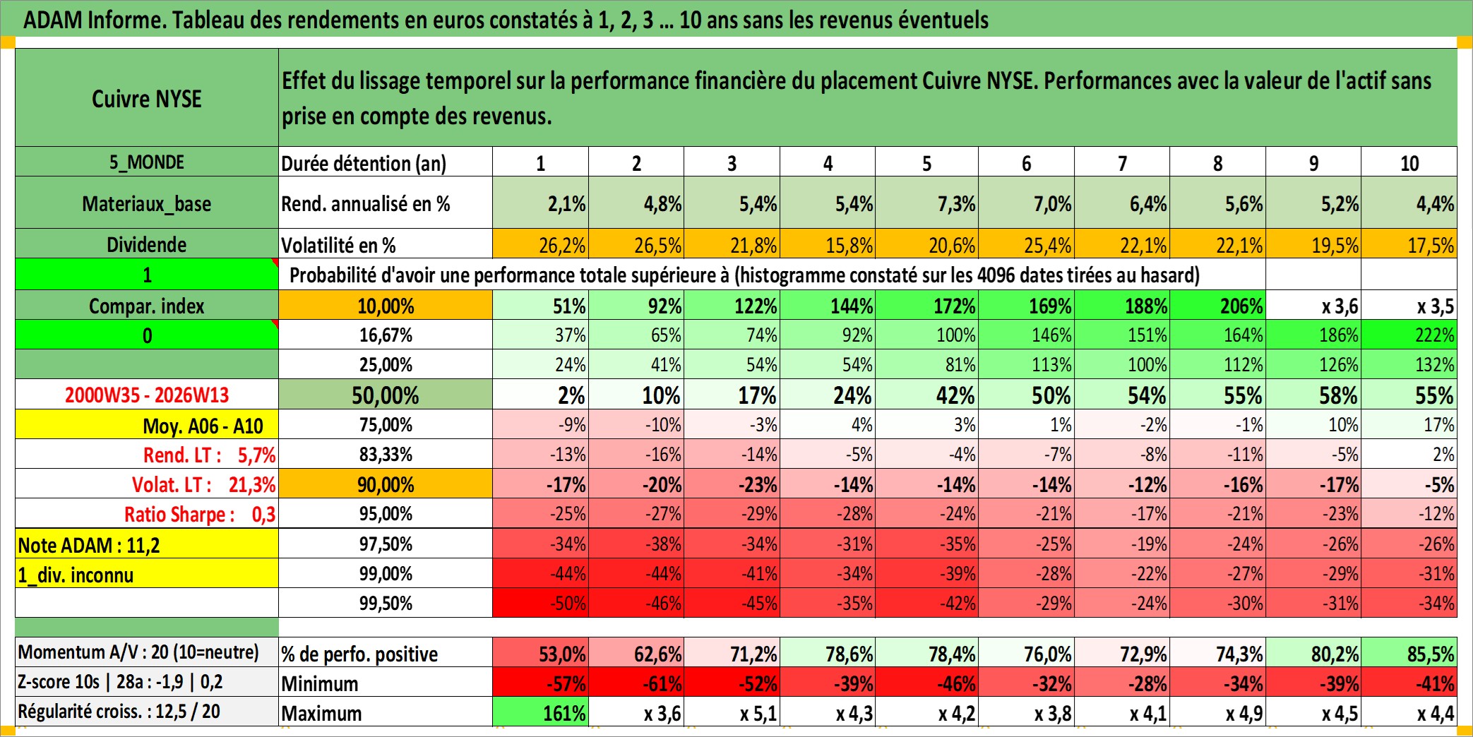 Site dédié aux investisseursPage dédiée sur site financeAnalyse des valorisations hebdomadaires de l'actif Cuivre NYSE. Cet actif est cote en USD. Les valorisations sont en contrevaleur EURO et couvrent les semaines 2000W35 a 2026W13. Les revenus de cet actif financier ne sont pas connus car non existants ou non disponibles sur le site Yahoo Finance. La note ESG de cet actif n'est pas connue.