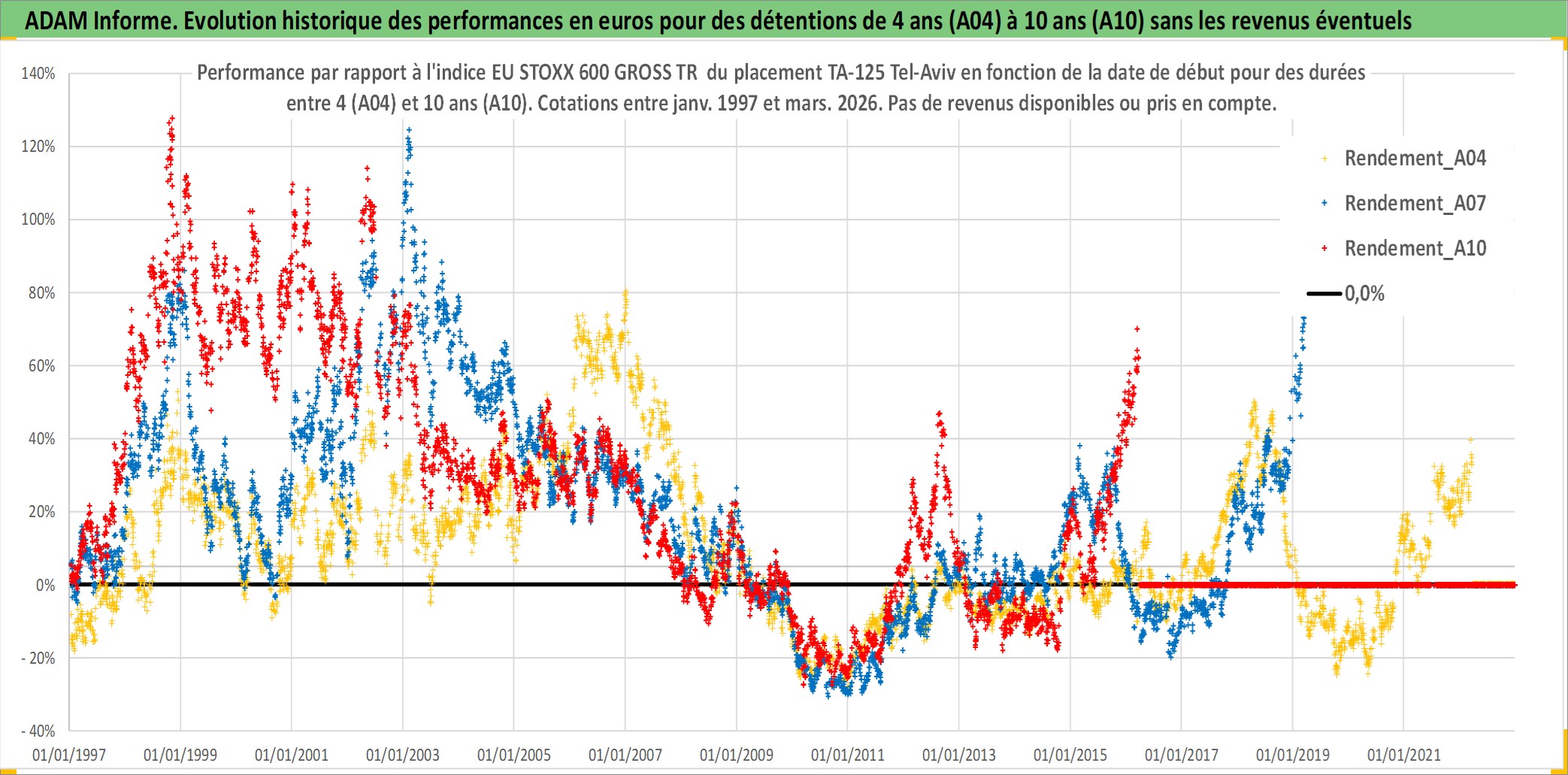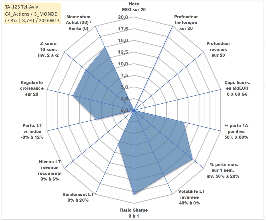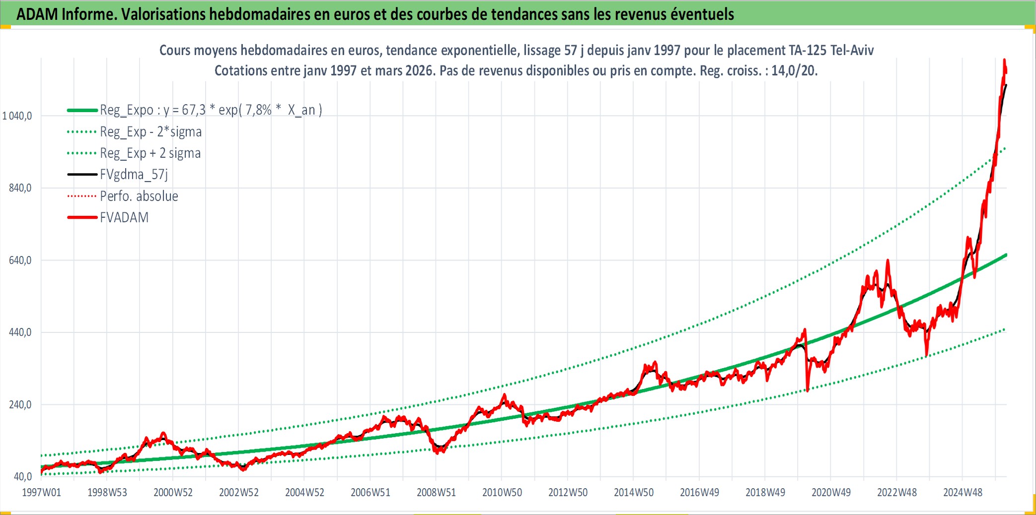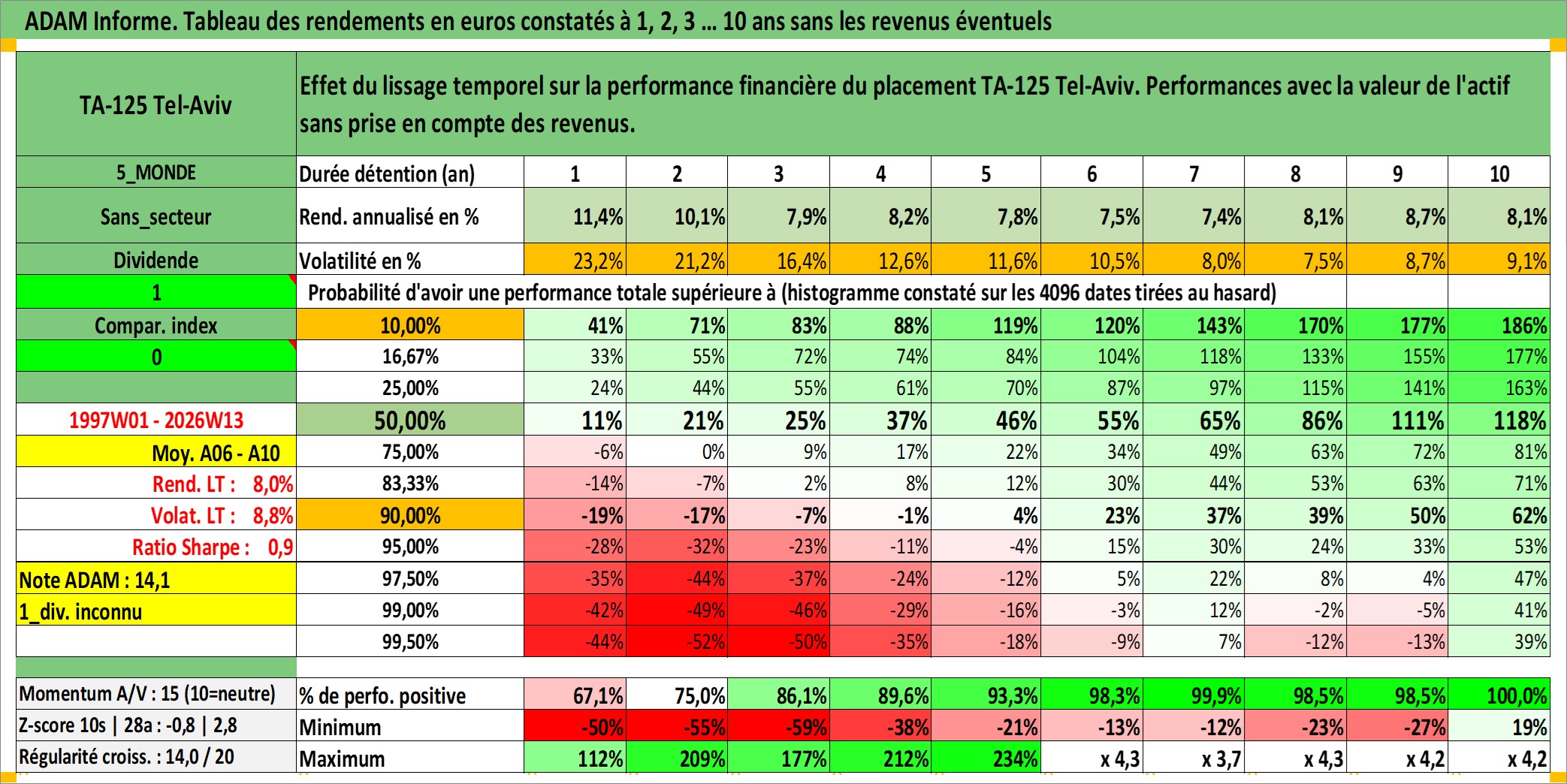 Site dédié aux investisseursPage dédiée sur site financeAnalyse des valorisations hebdomadaires de l'actif TA-125 Tel-Aviv. Cet actif est cote en ILS. Les valorisations sont en contrevaleur EURO et couvrent les semaines 1997W01 a 2026W13. Les revenus de cet actif financier ne sont pas connus car non existants ou non disponibles sur le site Yahoo Finance. La note ESG de cet actif n'est pas connue.