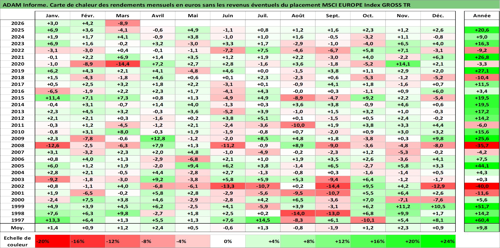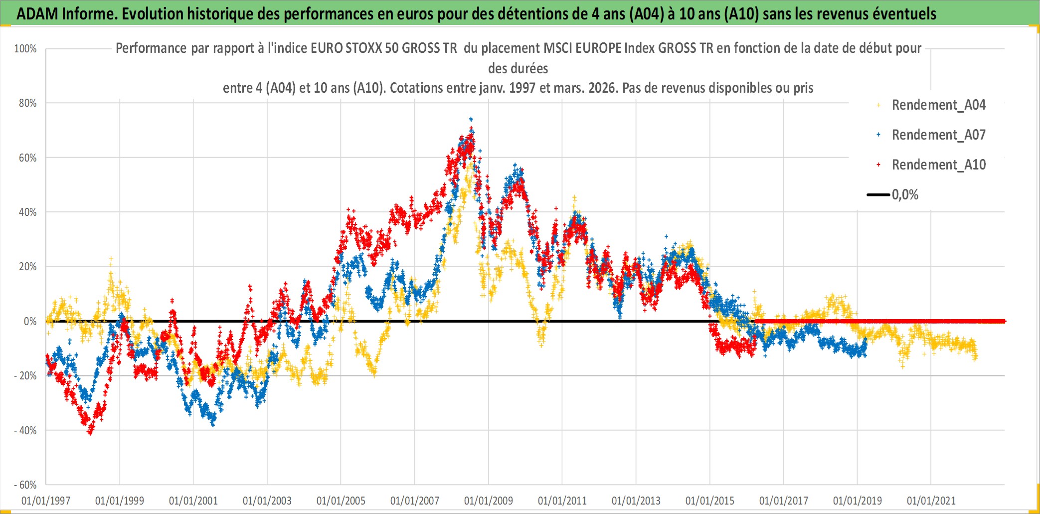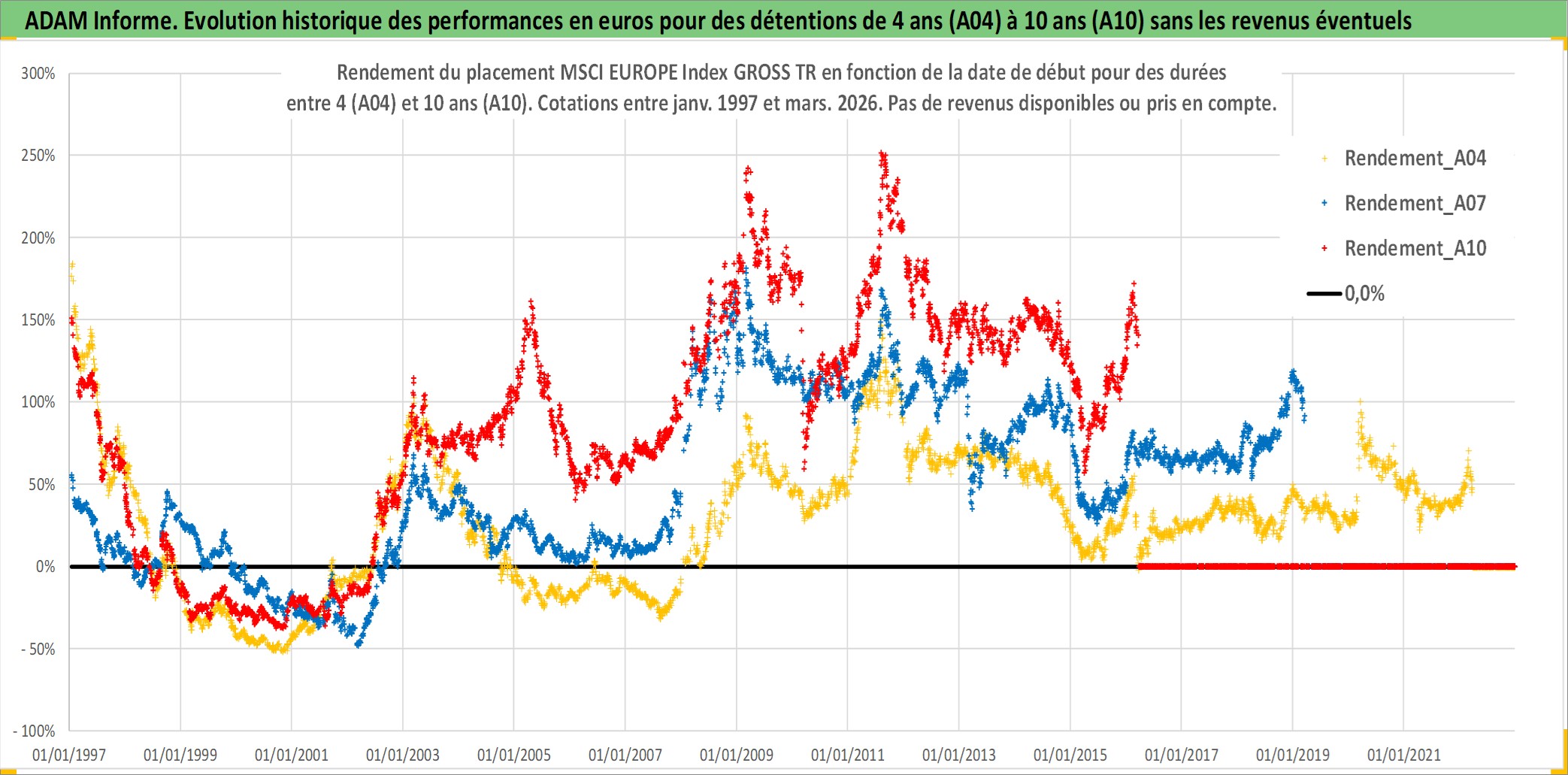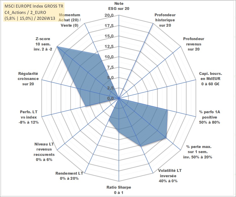 Site dédié aux investisseursPage dédiée sur site financeAnalyse des valorisations hebdomadaires de l'actif MSCI EUROPE Index GROSS TR. Cet actif est cote en USD. Les valorisations sont en contrevaleur EURO et couvrent les semaines 1997W01 a 2026W13. Les revenus de cet actif financier ne sont pas connus car non existants ou non disponibles sur le site Yahoo Finance. La note ESG de cet actif n'est pas connue.