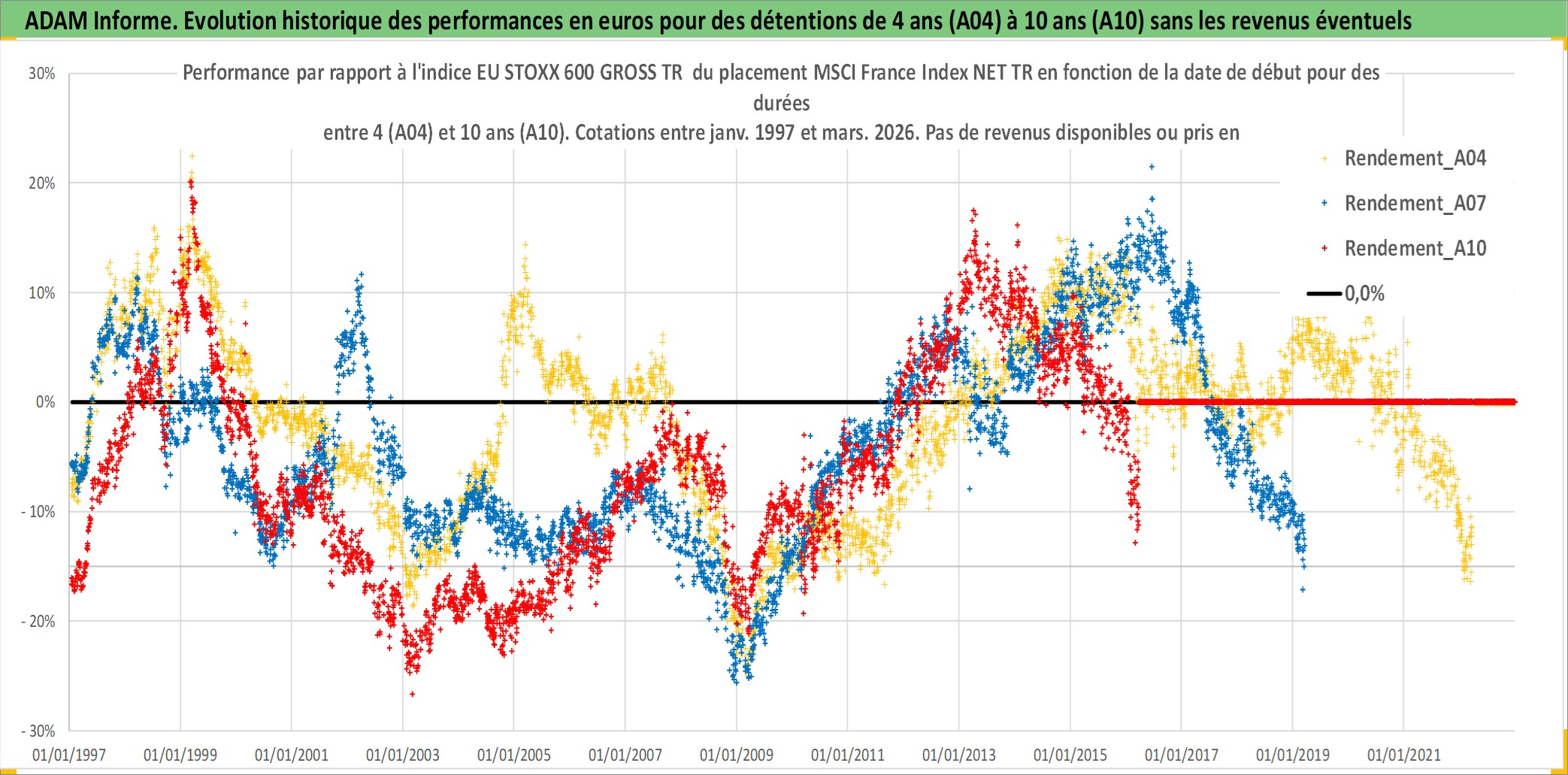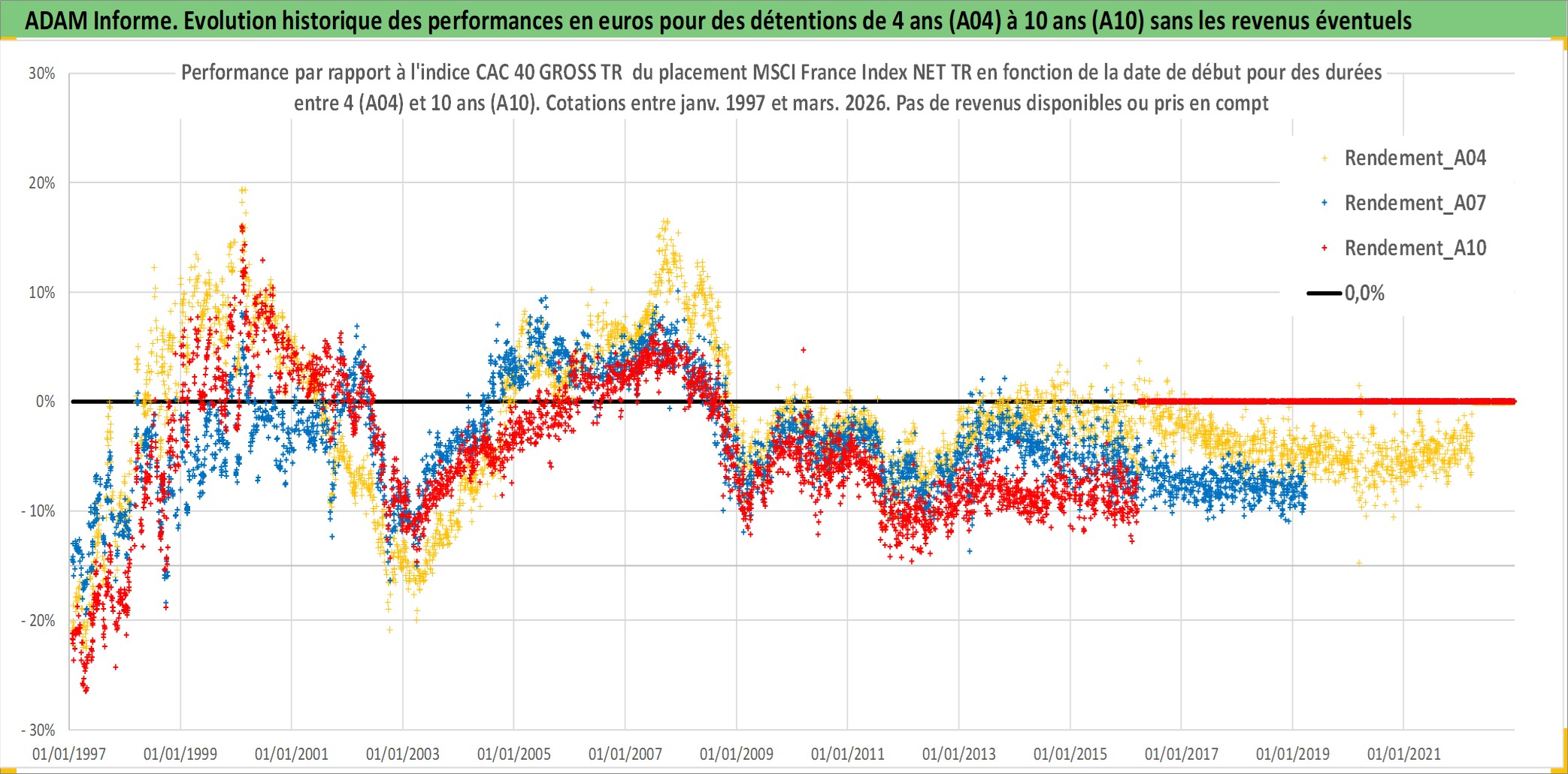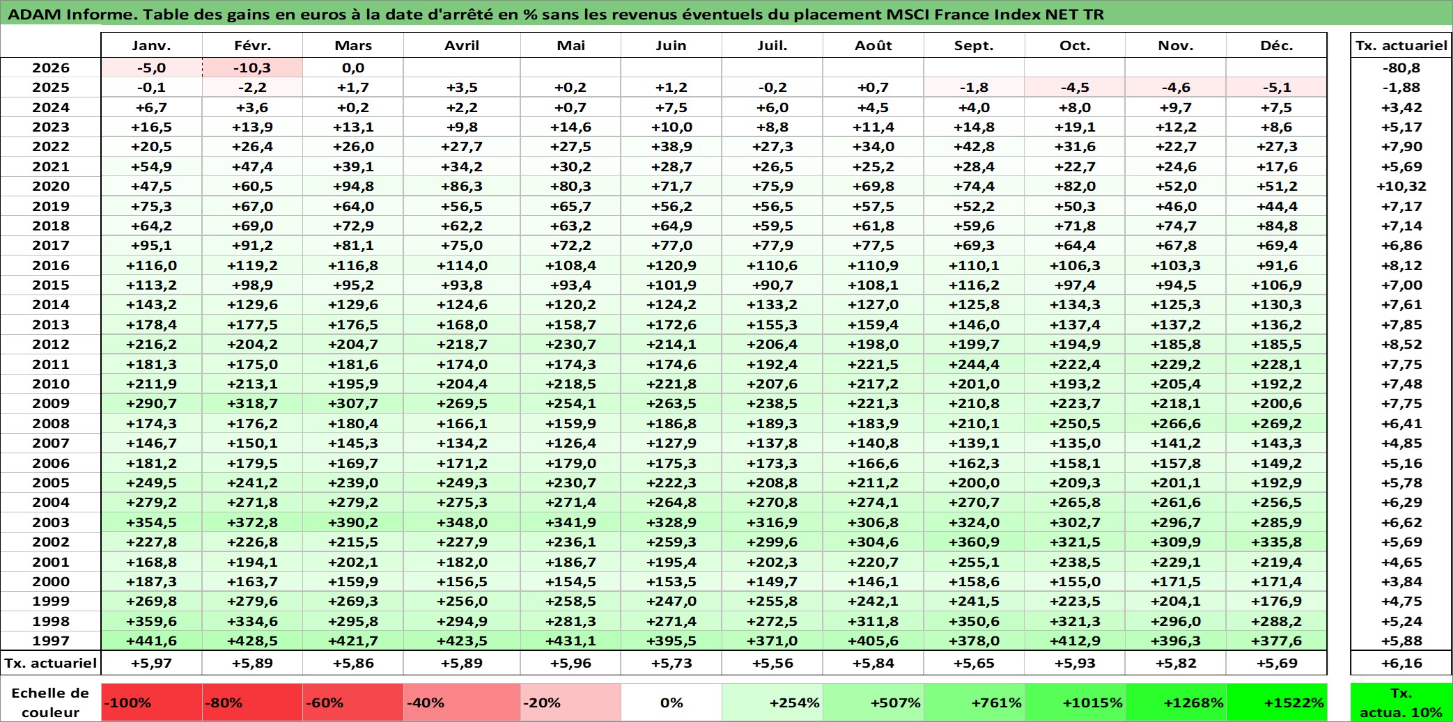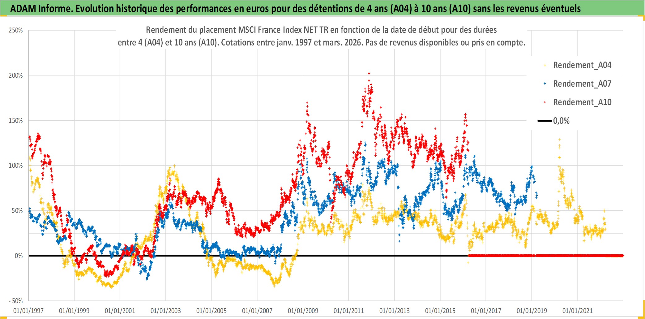 Site dédié aux investisseursPage dédiée sur site financeAnalyse des valorisations hebdomadaires de l'actif MSCI France Index NET TR. Cet actif est cote en EUR. Les valorisations couvrent les semaines 1997W01 a 2026W13. Les revenus de cet actif financier ne sont pas connus car non existants ou non disponibles sur le site Yahoo Finance. La note ESG de cet actif n'est pas connue.
