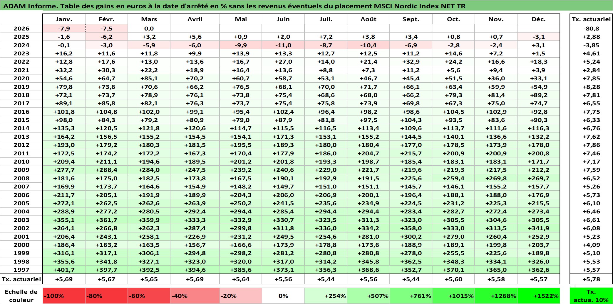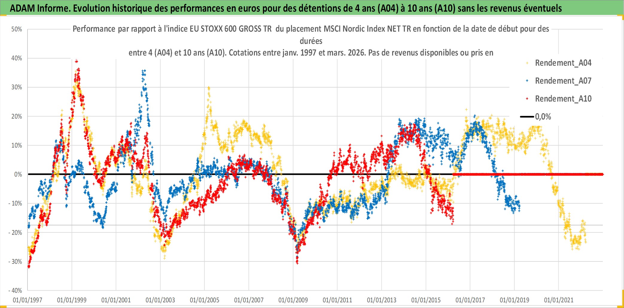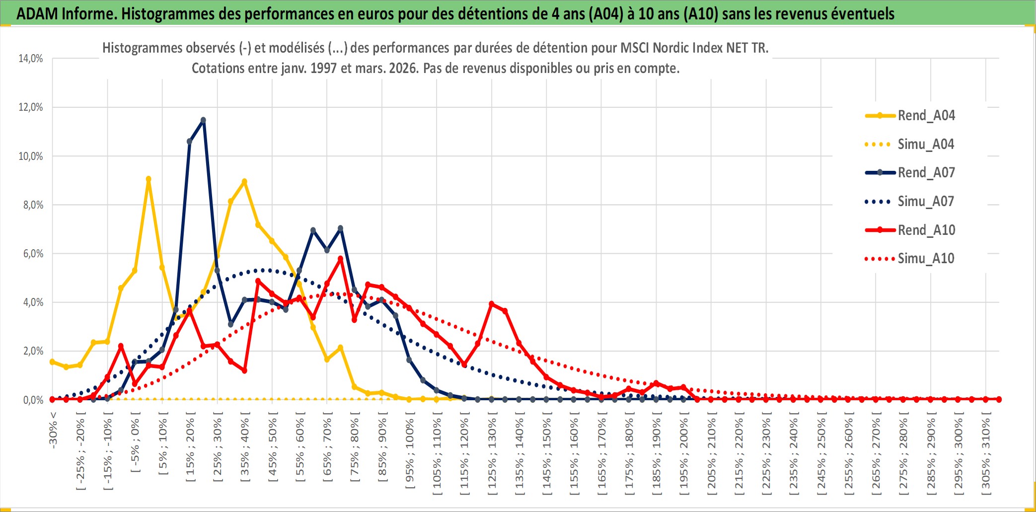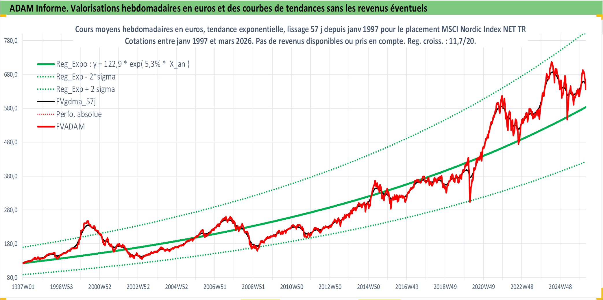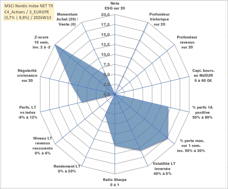 Site dédié aux investisseursPage dédiée sur site financeAnalyse des valorisations hebdomadaires de l'actif MSCI Nordic Index NET TR. Cet actif est cote en EUR. Les valorisations couvrent les semaines 1997W01 a 2026W13. Les revenus de cet actif financier ne sont pas connus car non existants ou non disponibles sur le site Yahoo Finance. La note ESG de cet actif n'est pas connue.