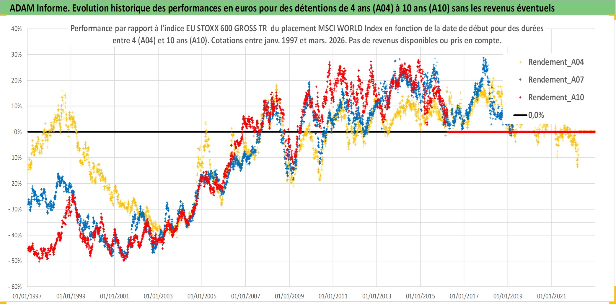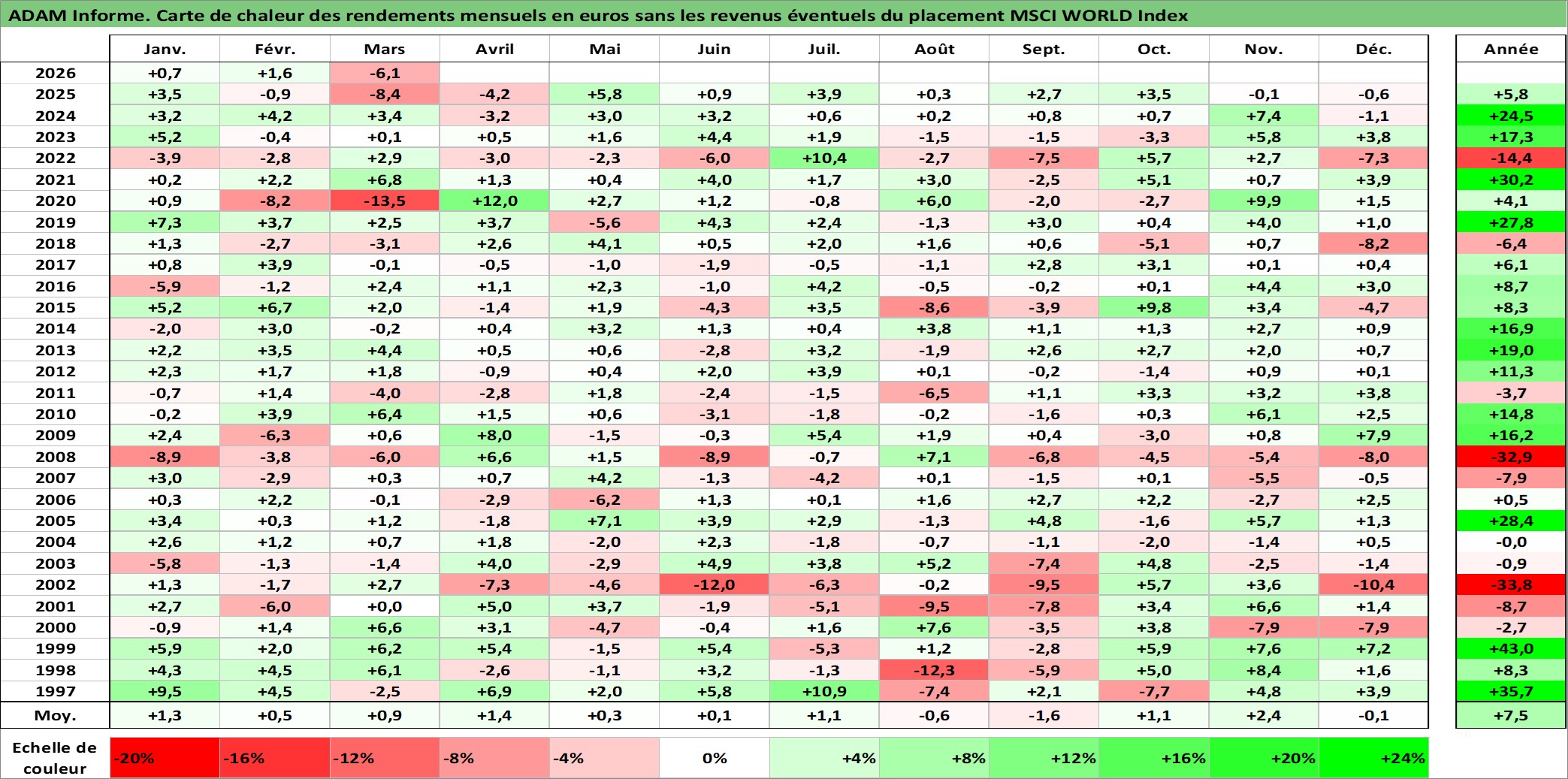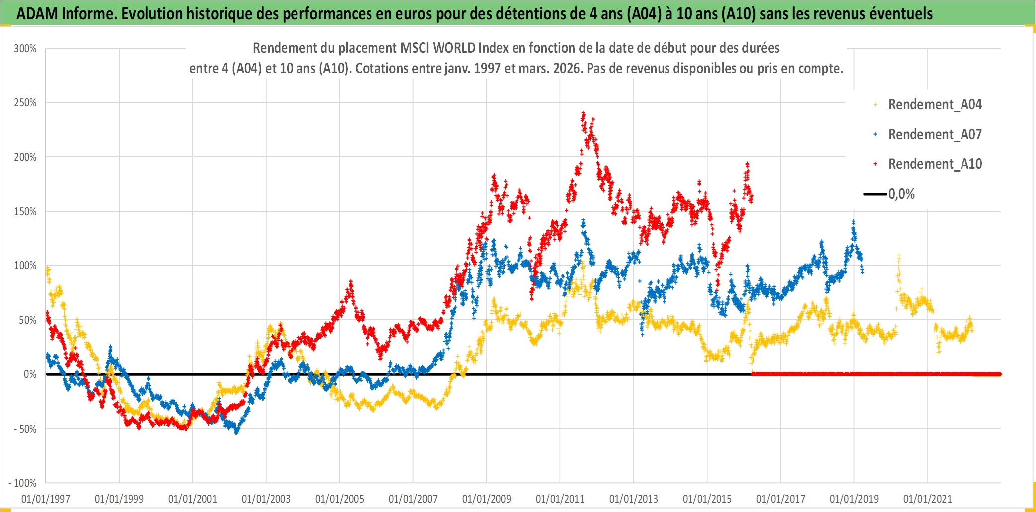 Site dédié aux investisseursPage dédiée sur site financeAnalyse des valorisations hebdomadaires de l'actif MSCI WORLD Index. Cet actif est cote en USD. Les valorisations sont en contrevaleur EURO et couvrent les semaines 1997W01 a 2026W13. Les revenus de cet actif financier ne sont pas connus car non existants ou non disponibles sur le site Yahoo Finance. La note ESG de cet actif n'est pas connue.