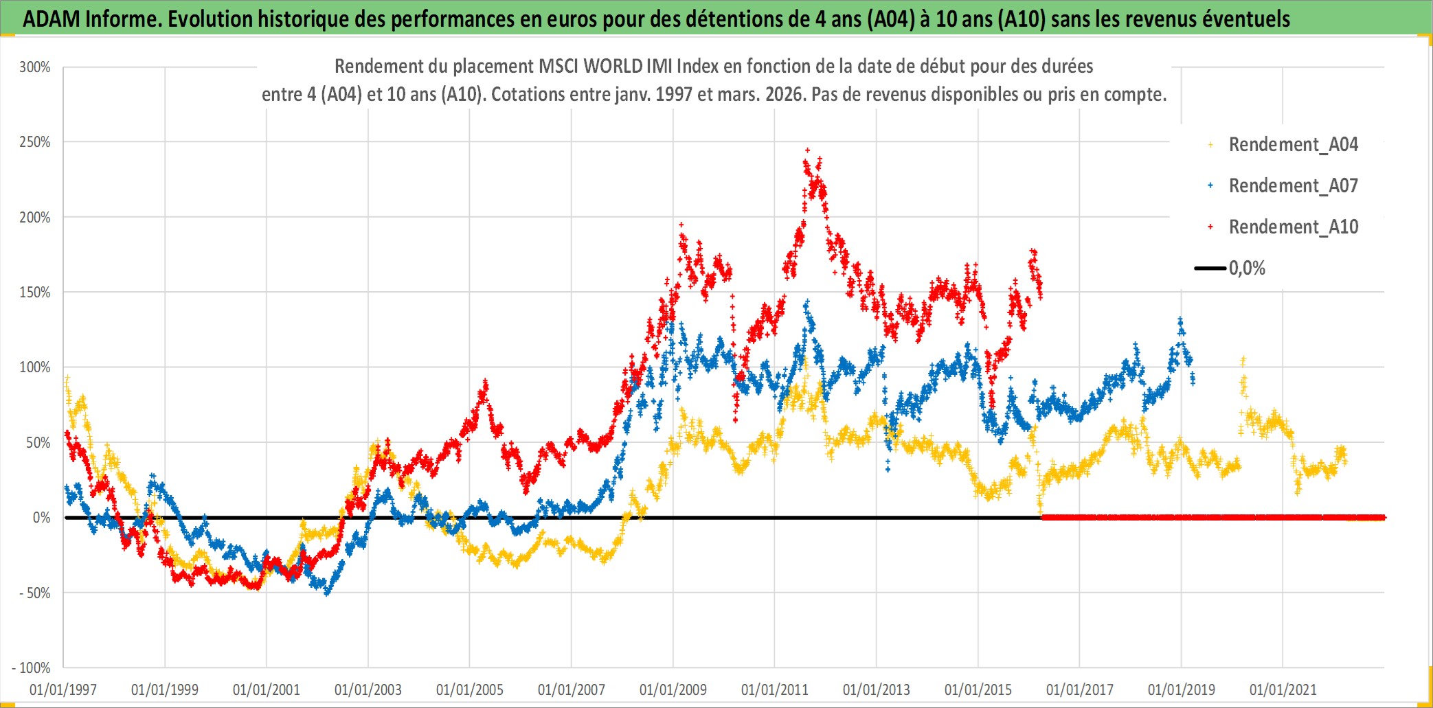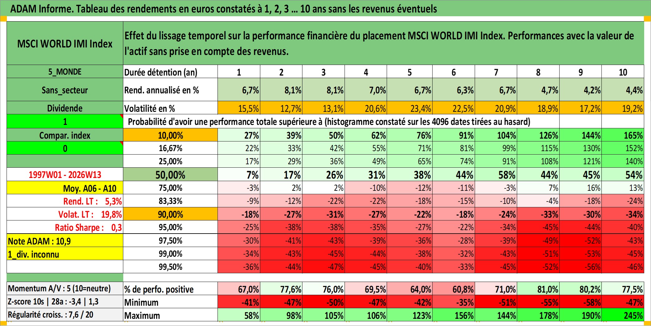 Site dédié aux investisseursPage dédiée sur site financeAnalyse des valorisations hebdomadaires de l'actif MSCI WORLD IMI Index. Cet actif est cote en USD. Les valorisations sont en contrevaleur EURO et couvrent les semaines 1997W01 a 2026W13. Les revenus de cet actif financier ne sont pas connus car non existants ou non disponibles sur le site Yahoo Finance. La note ESG de cet actif n'est pas connue.