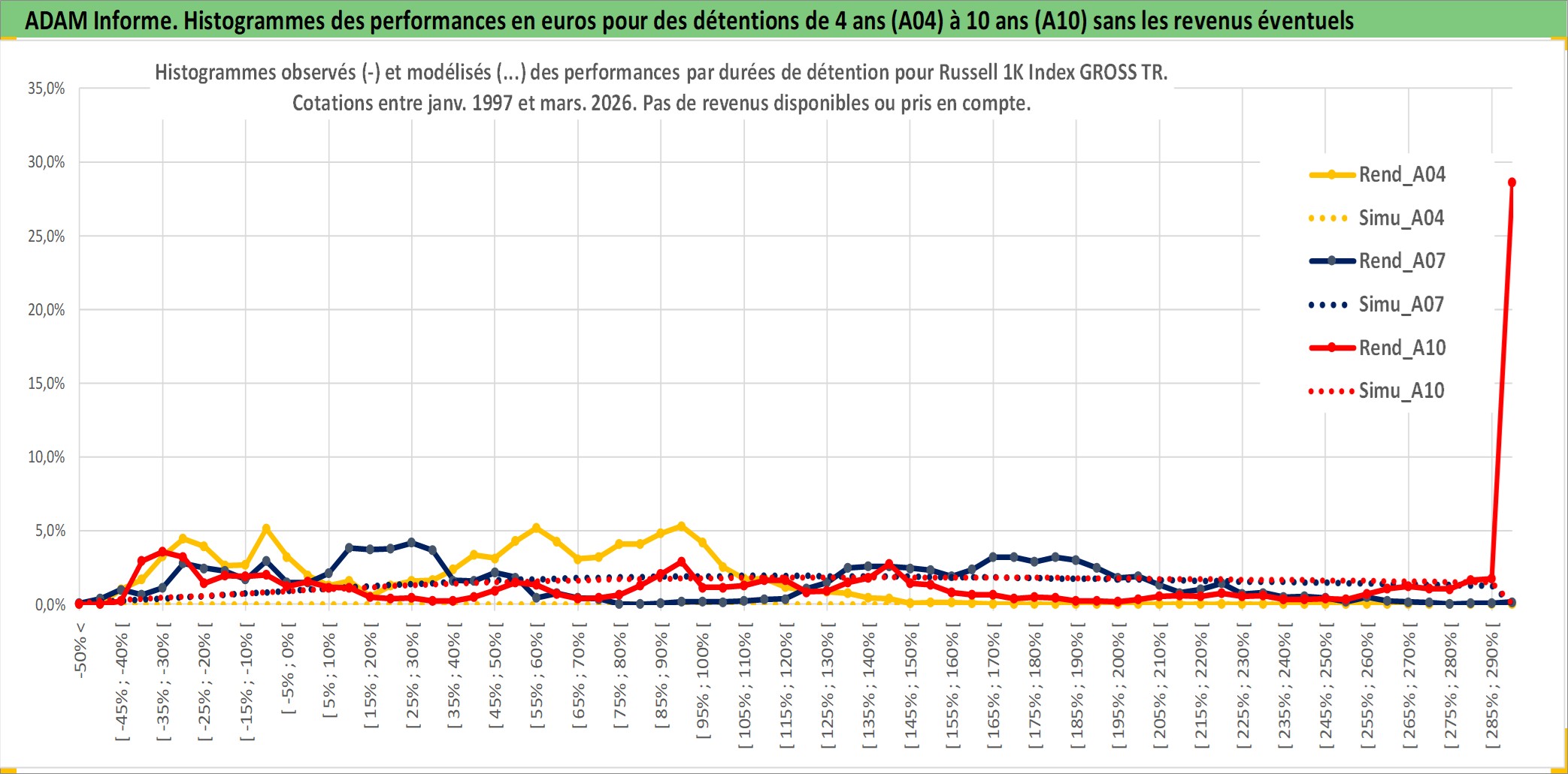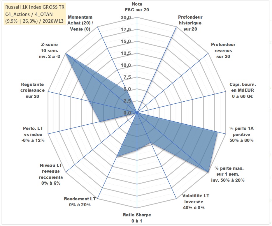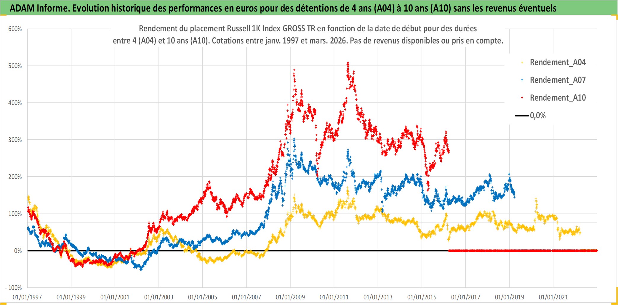 Site dédié aux investisseursPage dédiée sur site financeAnalyse des valorisations hebdomadaires de l'actif Russell 1K Index GROSS TR. Cet actif est cote en USD. Les valorisations sont en contrevaleur EURO et couvrent les semaines 1997W01 a 2026W13. Les revenus de cet actif financier ne sont pas connus car non existants ou non disponibles sur le site Yahoo Finance. La note ESG de cet actif n'est pas connue.