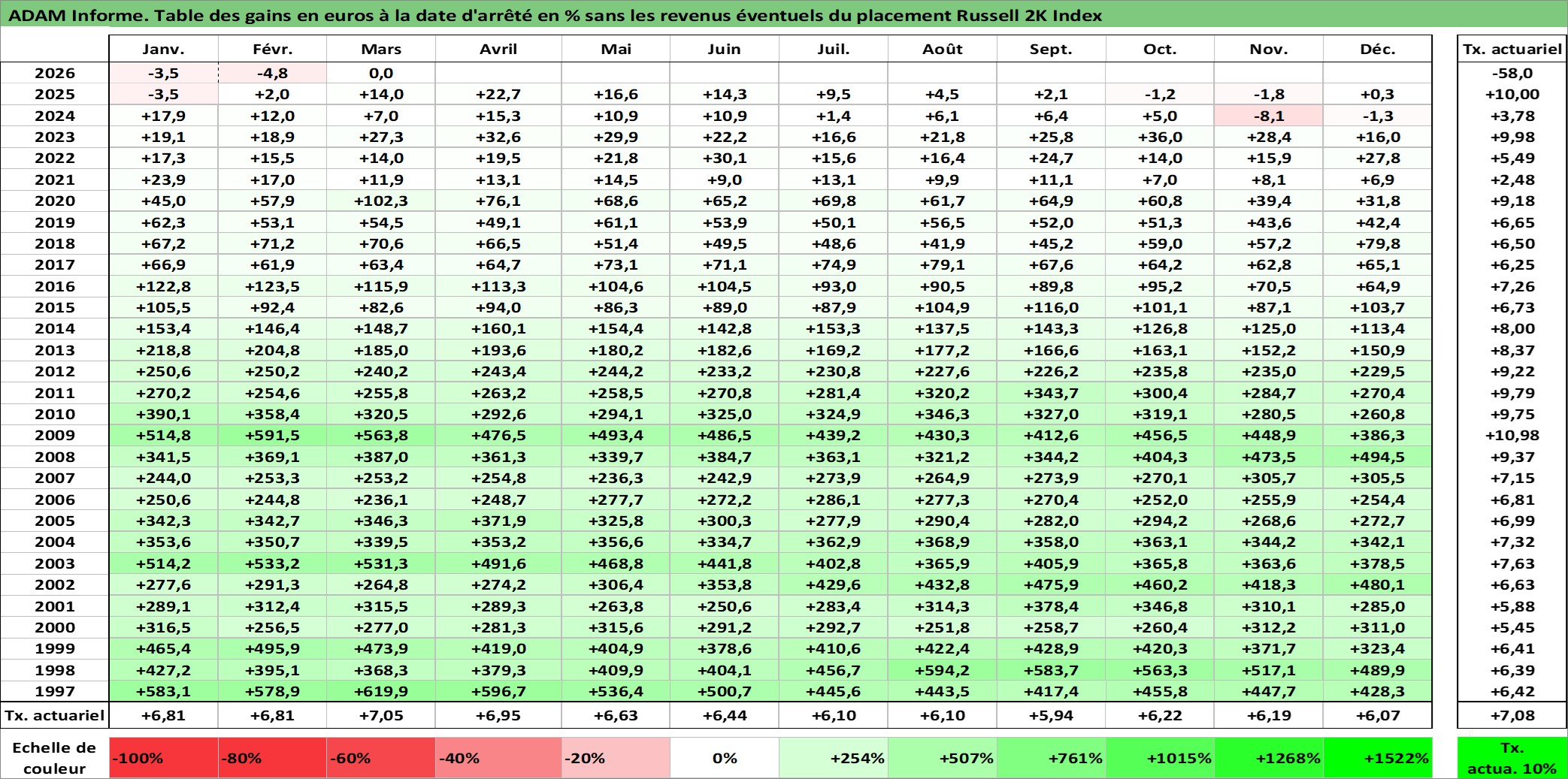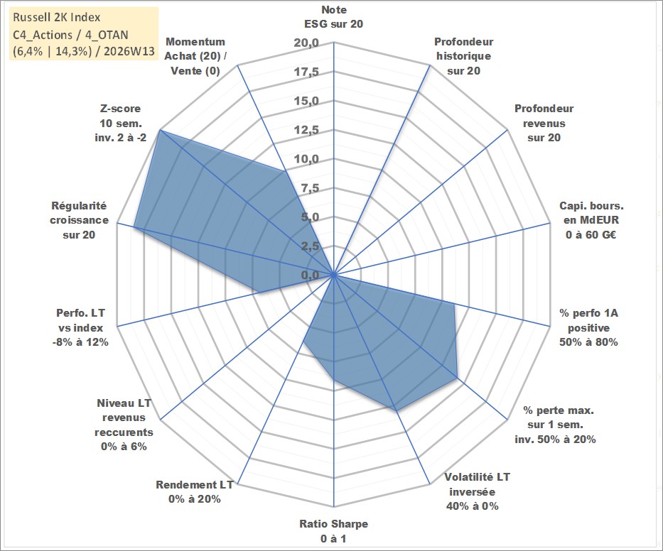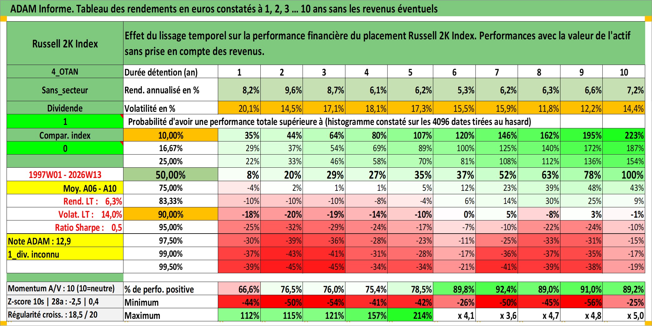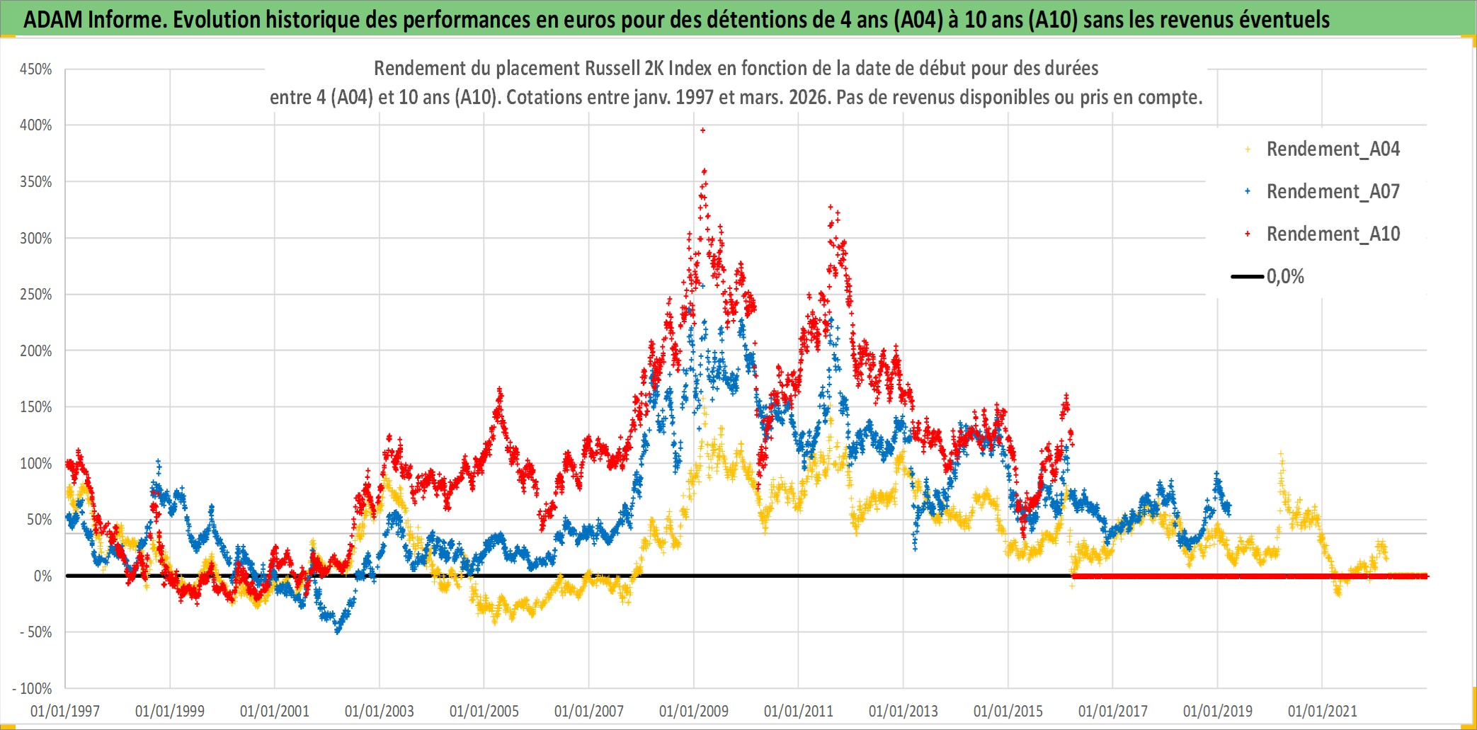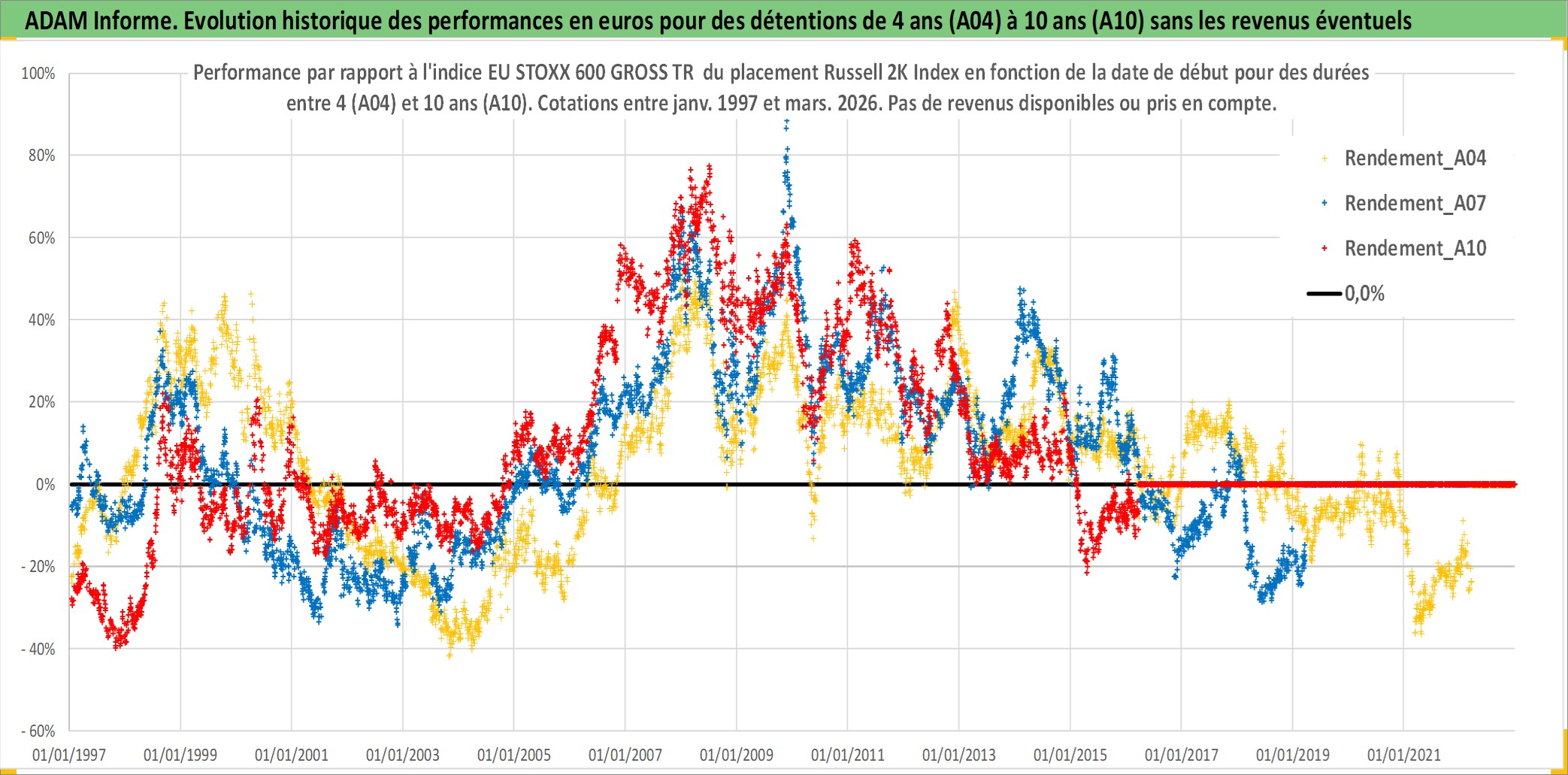 Site dédié aux investisseursPage dédiée sur site financeAnalyse des valorisations hebdomadaires de l'actif Russell 2K Index. Cet actif est cote en USD. Les valorisations sont en contrevaleur EURO et couvrent les semaines 1997W01 a 2026W13. Les revenus de cet actif financier ne sont pas connus car non existants ou non disponibles sur le site Yahoo Finance. La note ESG de cet actif n'est pas connue.