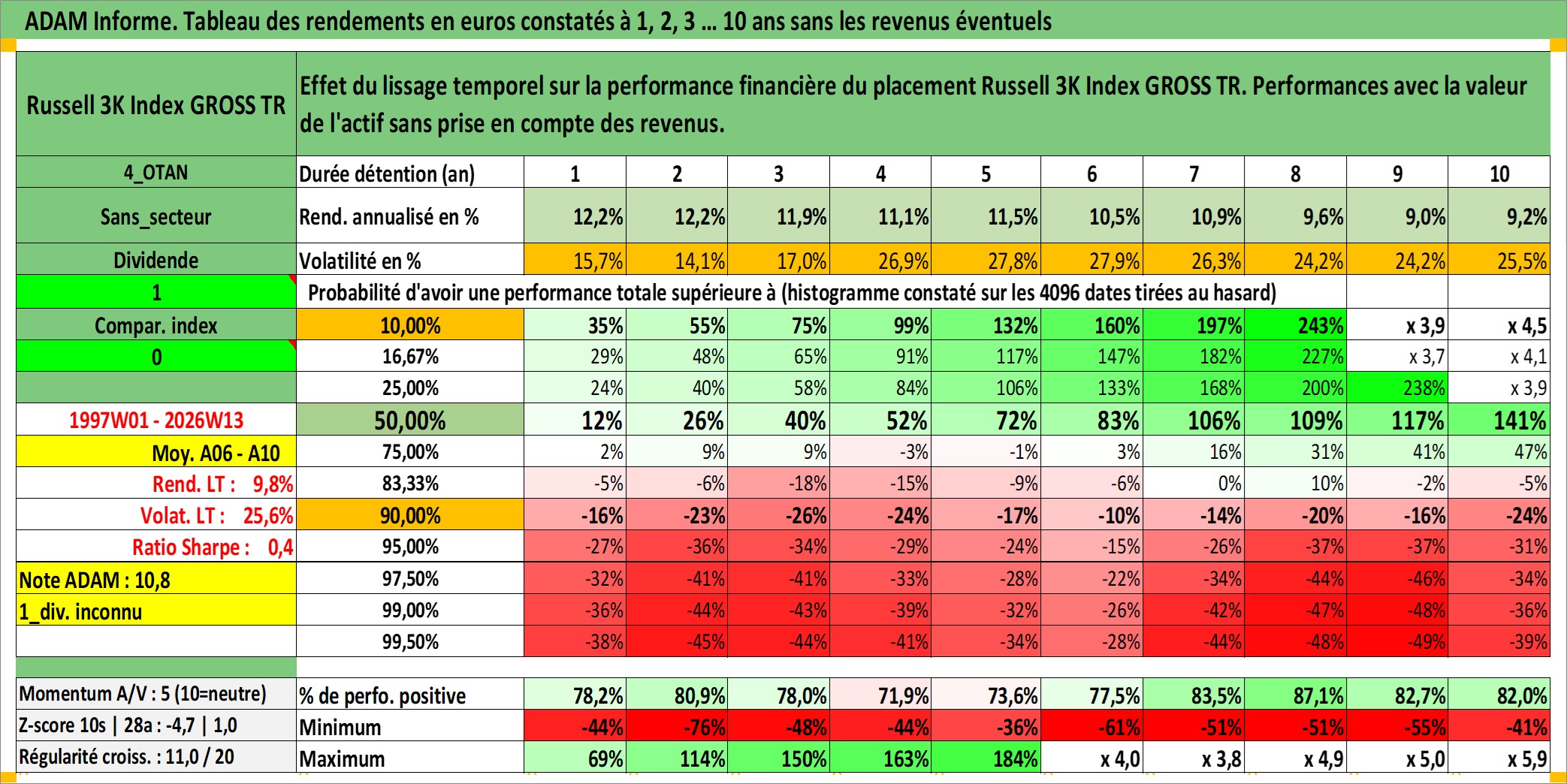 Dernière perfo 10 ans en %