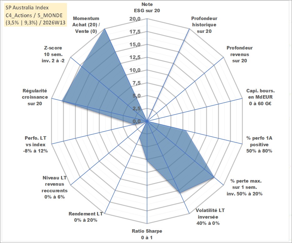 Site dédié aux investisseursPage dédiée sur site financeAnalyse des valorisations hebdomadaires de l'actif SP Australia Index. Cet actif est cote en AUD. Les valorisations sont en contrevaleur EURO et couvrent les semaines 1997W01 a 2026W13. Les revenus de cet actif financier ne sont pas connus car non existants ou non disponibles sur le site Yahoo Finance. La note ESG de cet actif n'est pas connue.