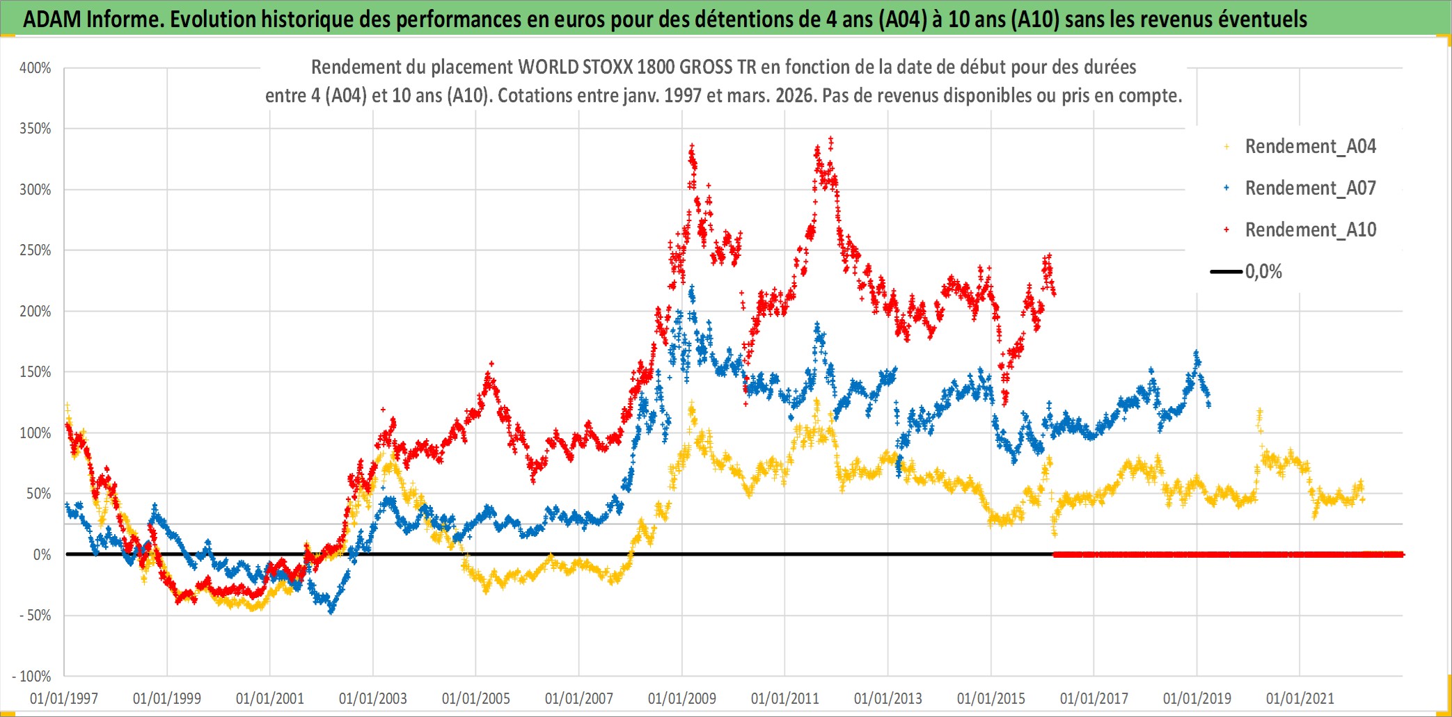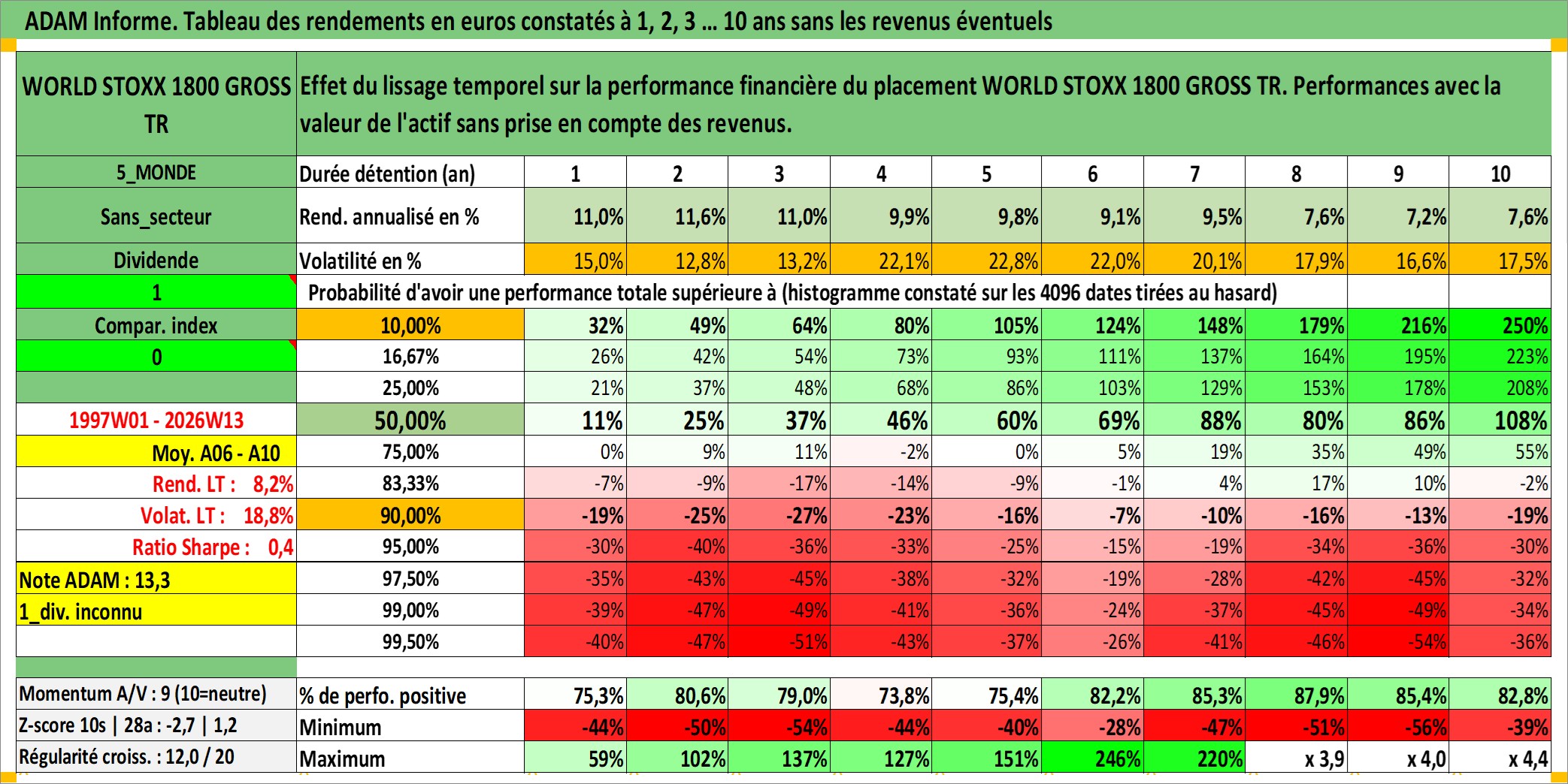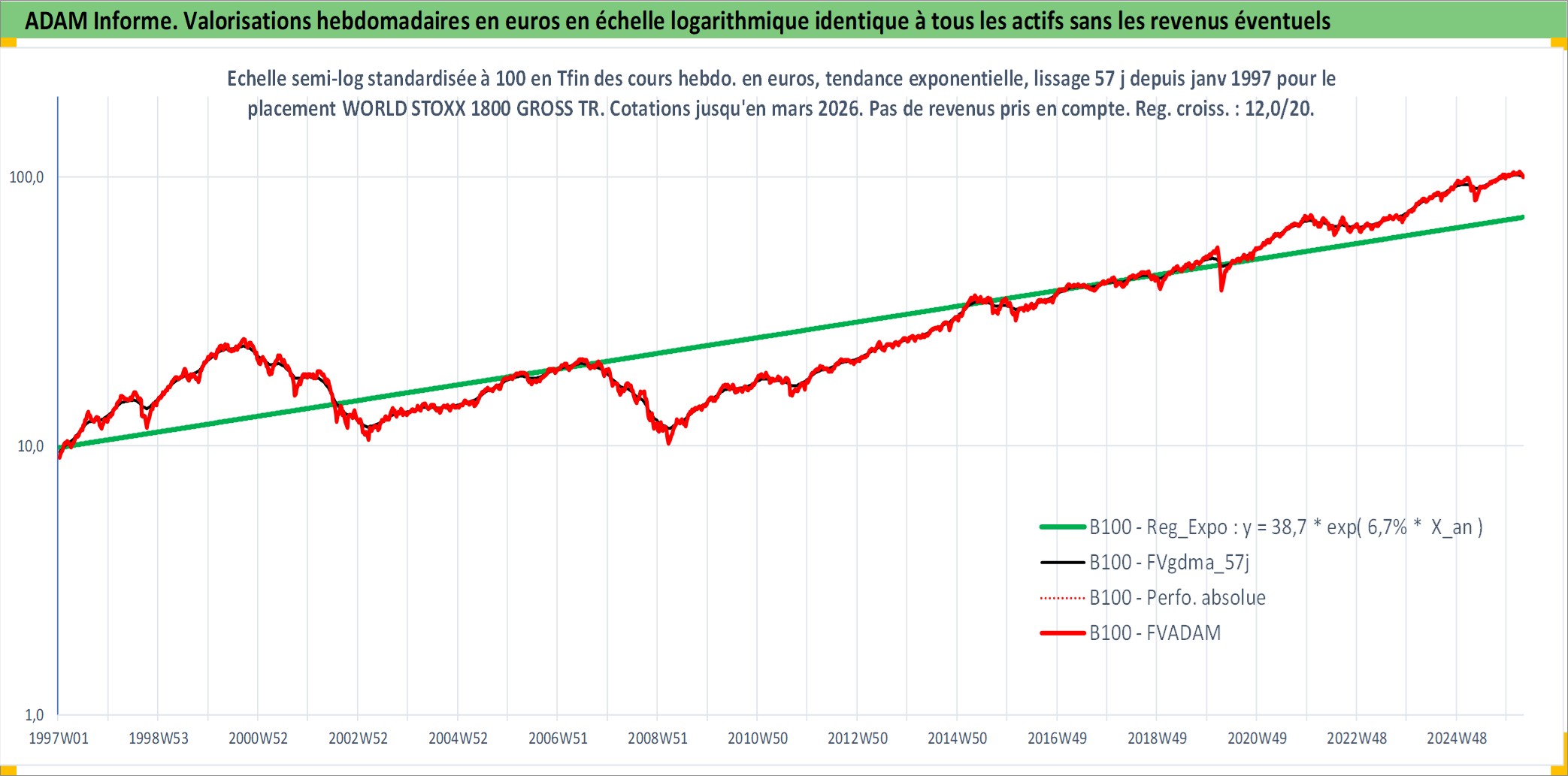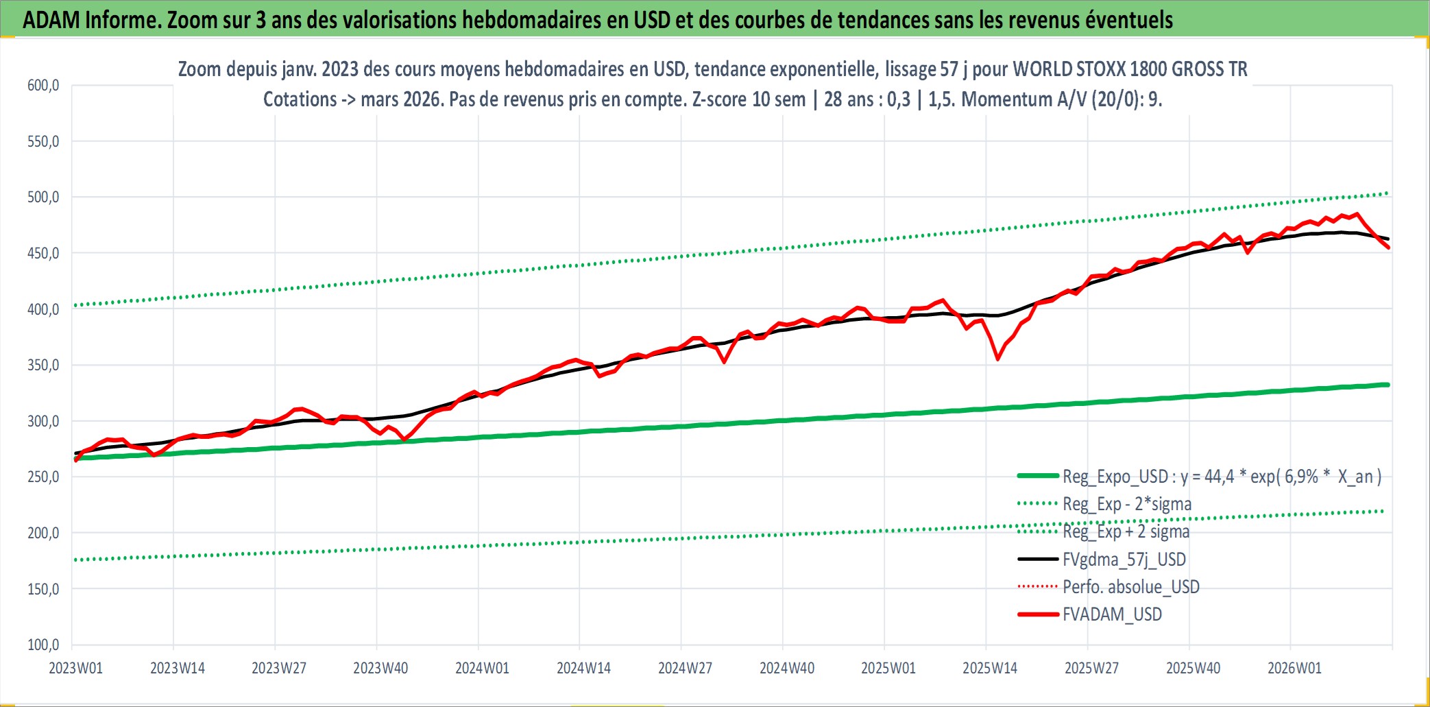 Site dédié aux investisseursPage dédiée sur site financeAnalyse des valorisations hebdomadaires de l'actif WORLD STOXX 1800 GROSS TR. Cet actif est cote en USD. Les valorisations sont en contrevaleur EURO et couvrent les semaines 1997W01 a 2026W13. Les revenus de cet actif financier ne sont pas connus car non existants ou non disponibles sur le site Yahoo Finance. La note ESG de cet actif n'est pas connue.
