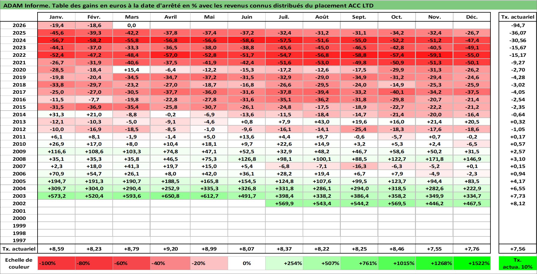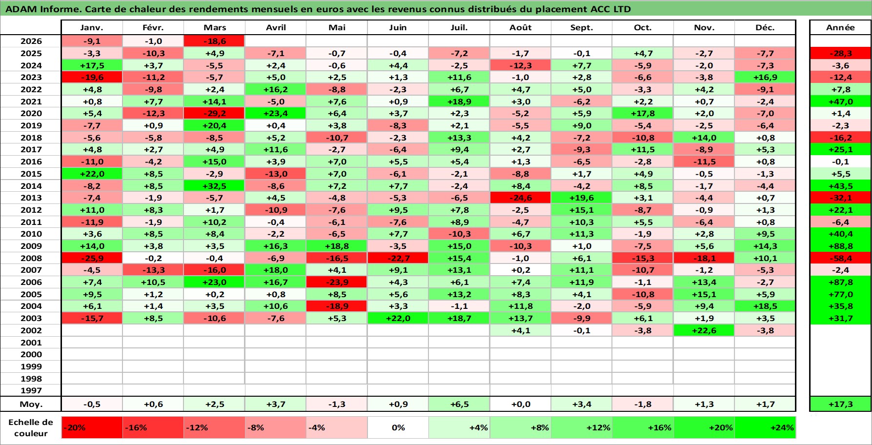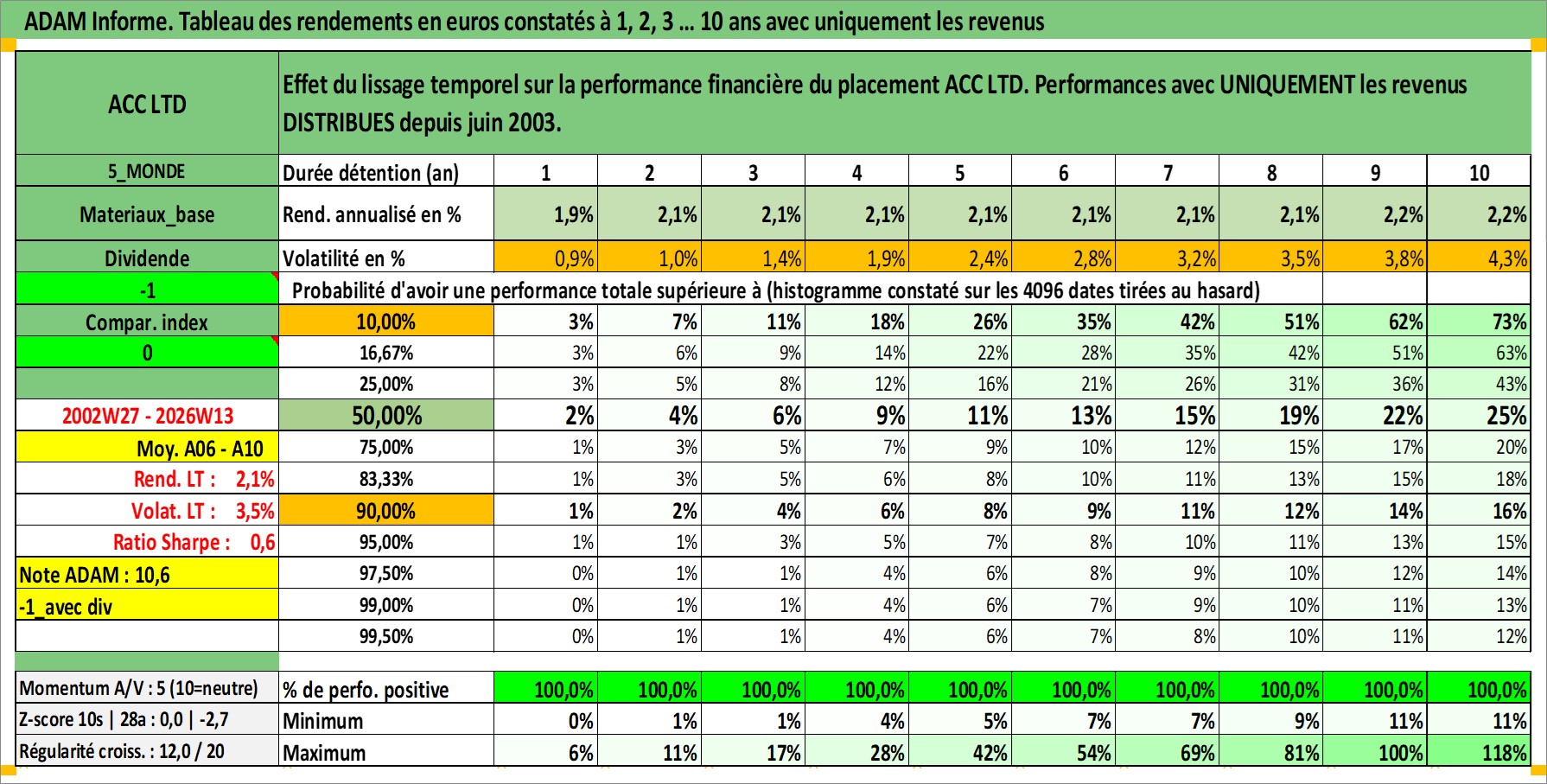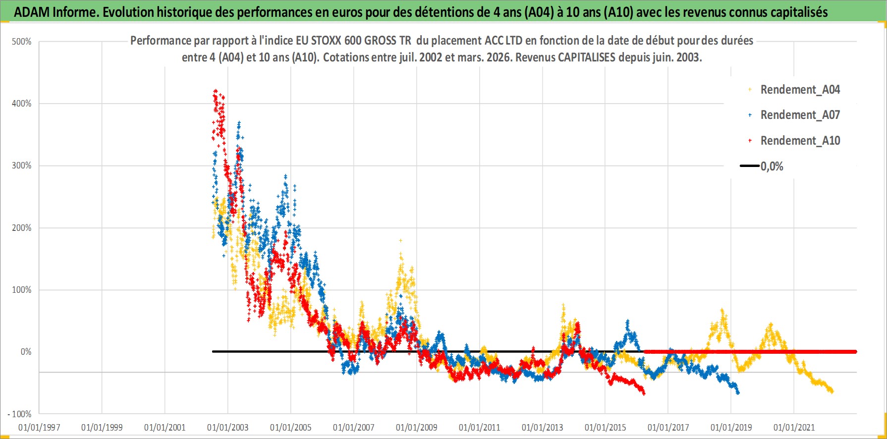 Site dédié aux investisseursPage dédiée sur site financeAnalyse des valorisations hebdomadaires de l'action ACC LTD. Cet actif est cote en INR. Les valorisations sont en contrevaleur EURO et couvrent les semaines 2002W27 a 2026W13. Les revenus de cet actif financier sont pris en compte depuis la semaine 2003W27. La note ESG de cet actif n'est pas connue.