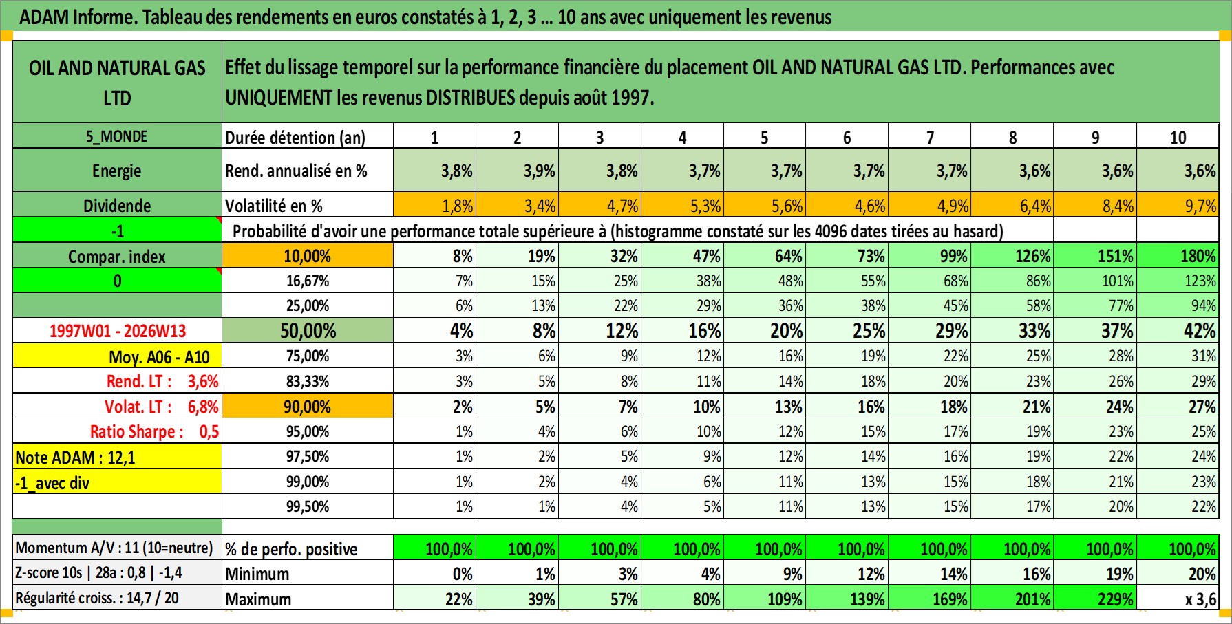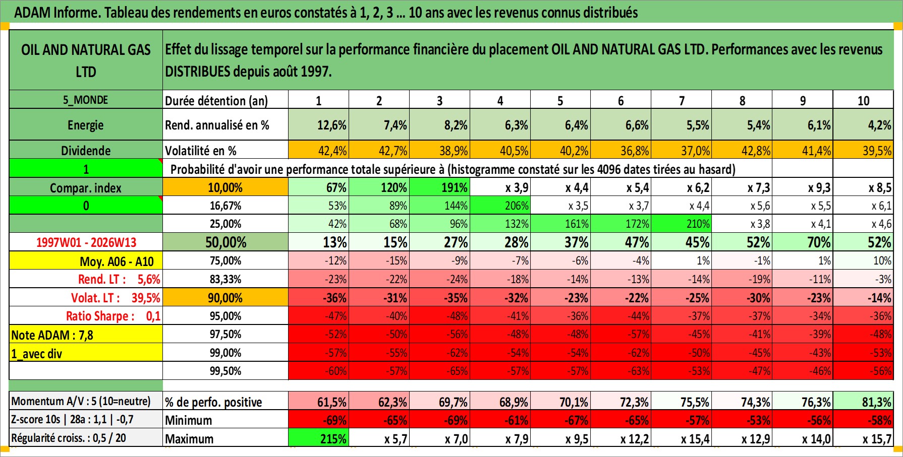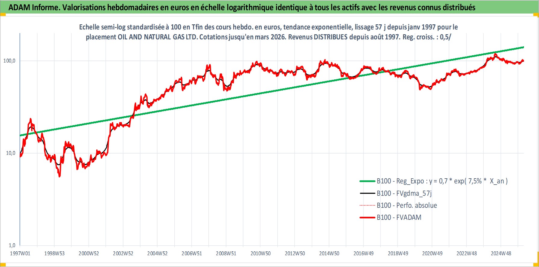 Site dédié aux investisseursPage dédiée sur site financeAnalyse des valorisations hebdomadaires de l'action OIL AND NATURAL GAS LTD. Cet actif est cote en INR. Les valorisations sont en contrevaleur EURO et couvrent les semaines 1997W01 a 2026W13. Les revenus de cet actif financier sont pris en compte depuis la semaine 1997W35. La note ESG de cet actif n'est pas connue.