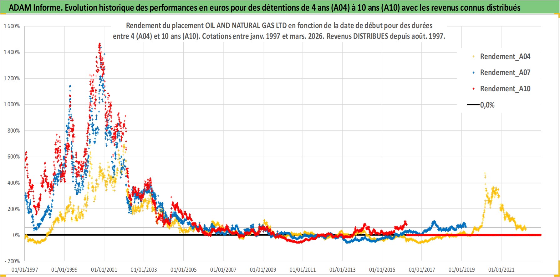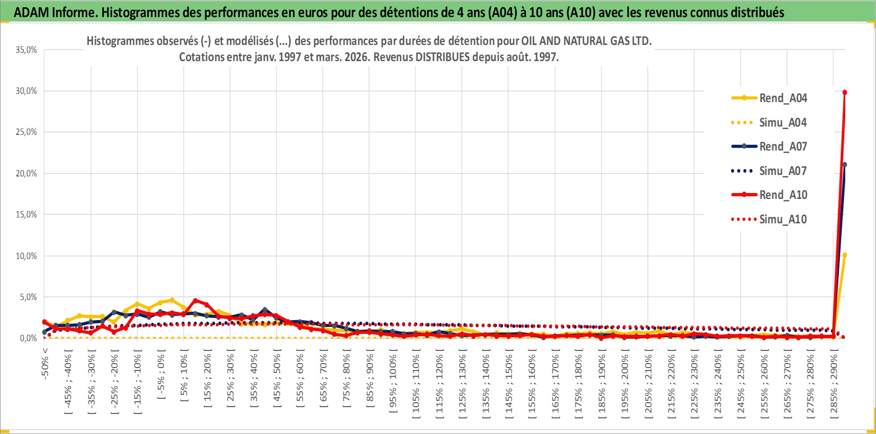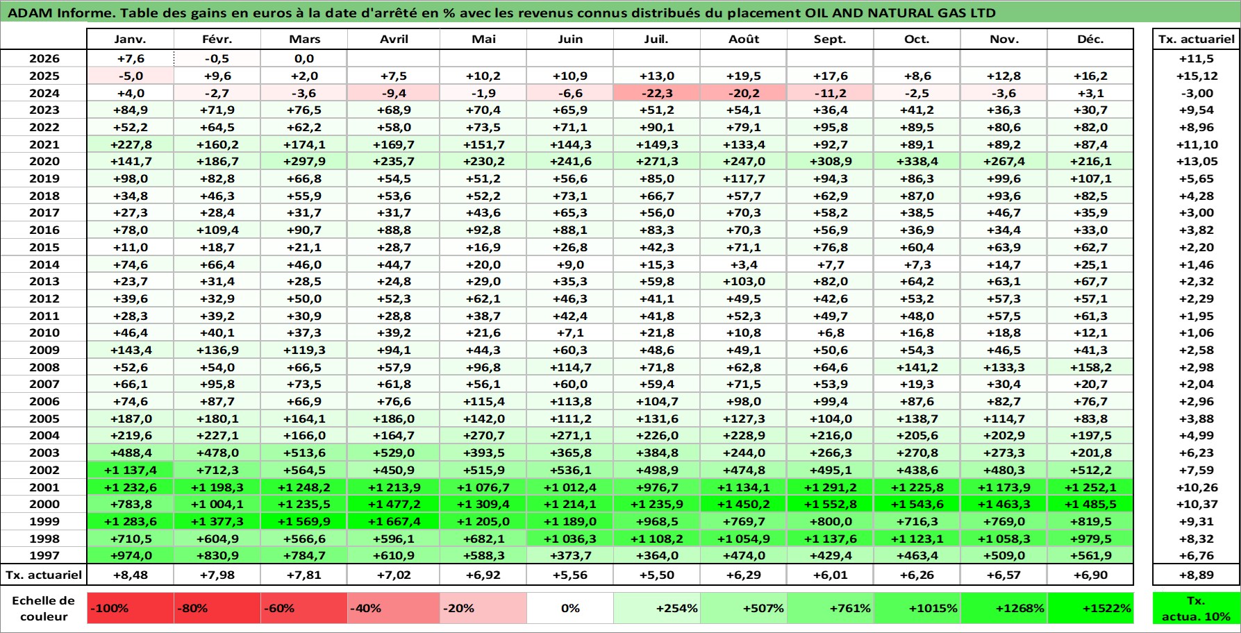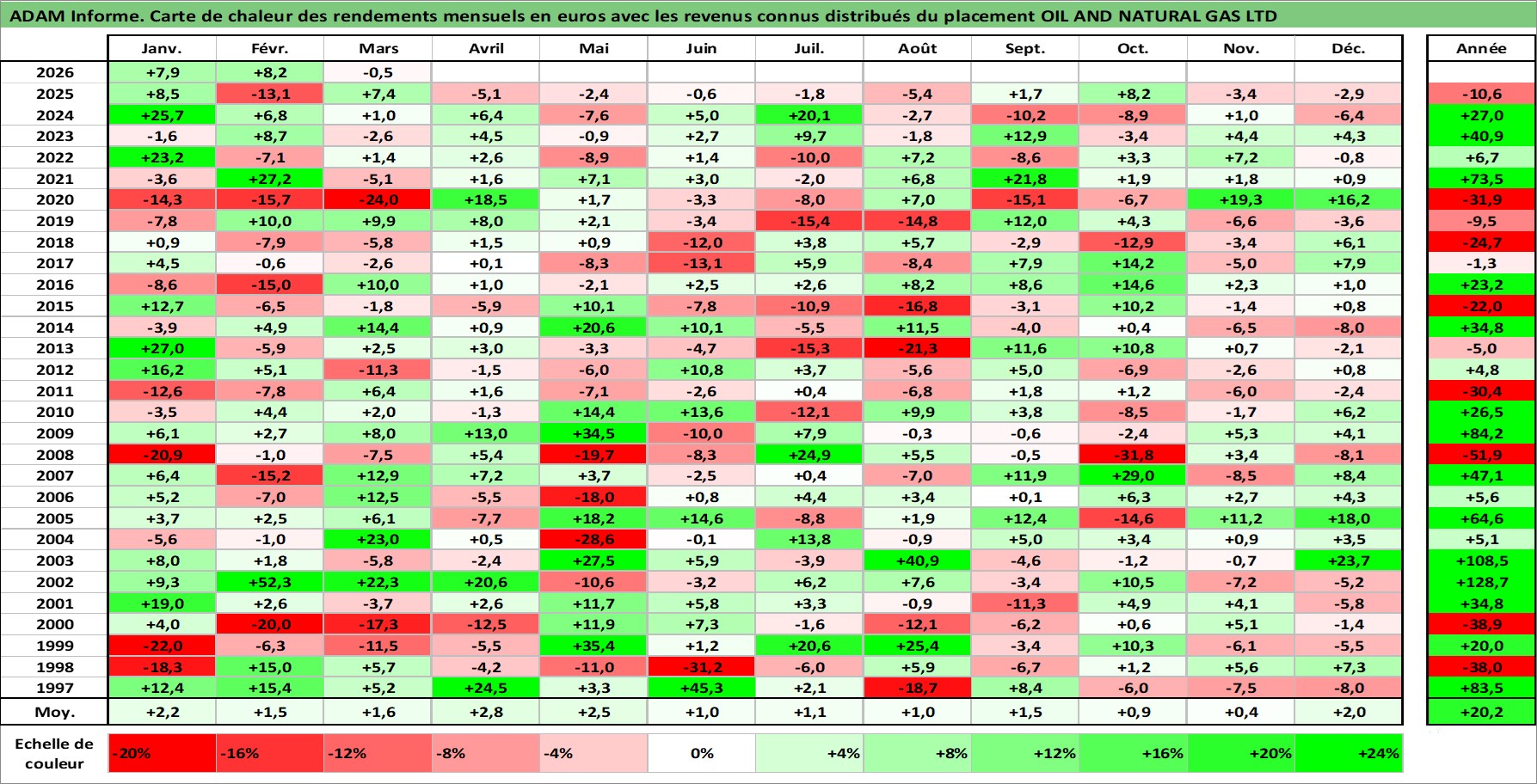 Site dédié aux investisseursPage dédiée sur site financeAnalyse des valorisations hebdomadaires de l'action OIL AND NATURAL GAS LTD. Cet actif est cote en INR. Les valorisations sont en contrevaleur EURO et couvrent les semaines 1997W01 a 2026W13. Les revenus de cet actif financier sont pris en compte depuis la semaine 1997W35. La note ESG de cet actif n'est pas connue.