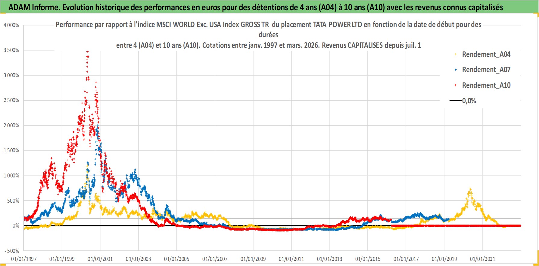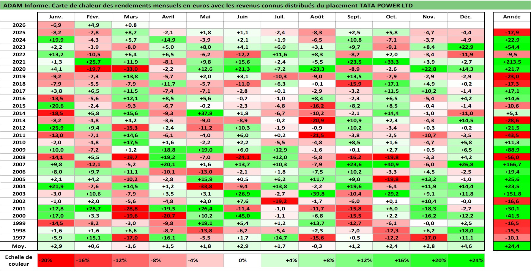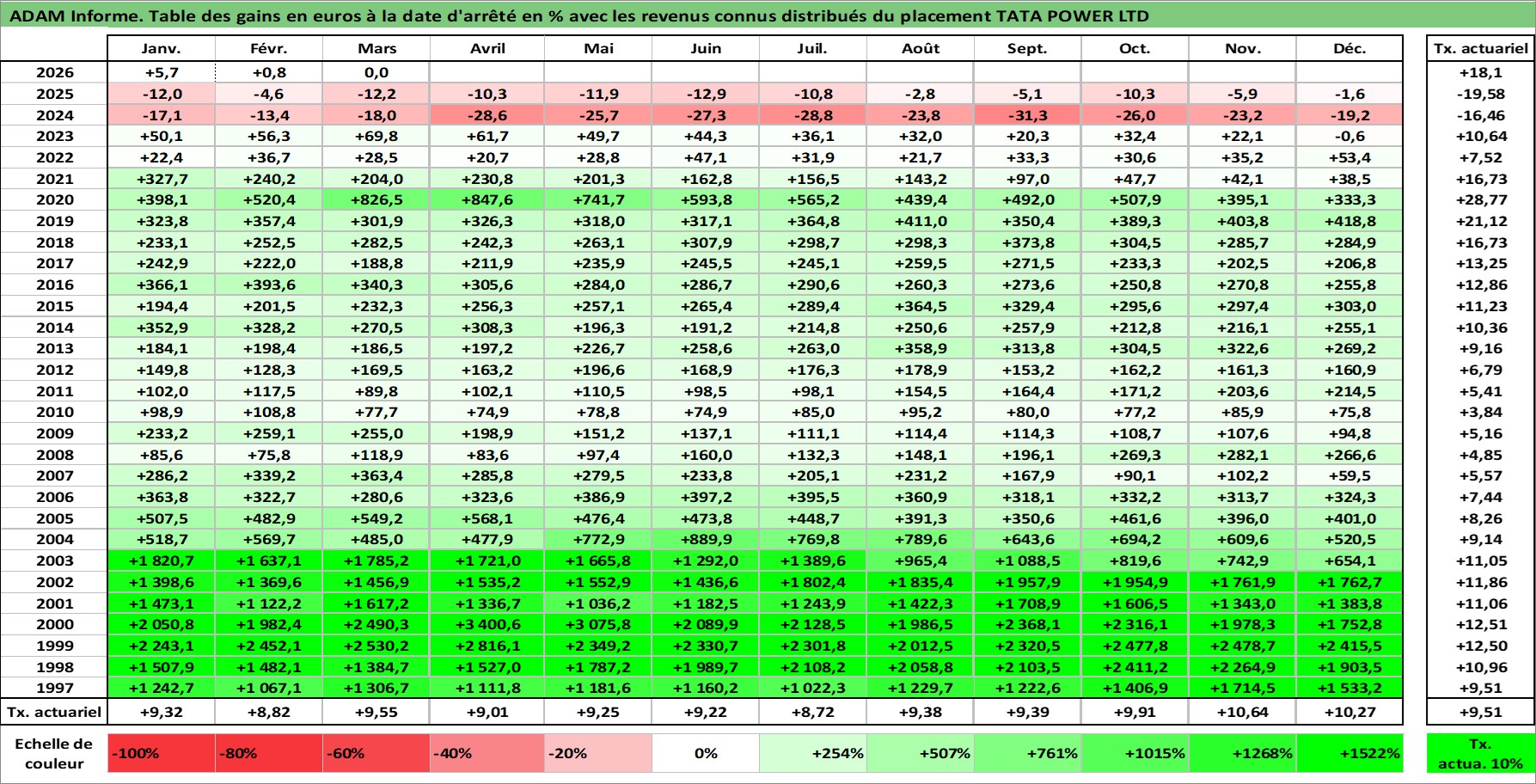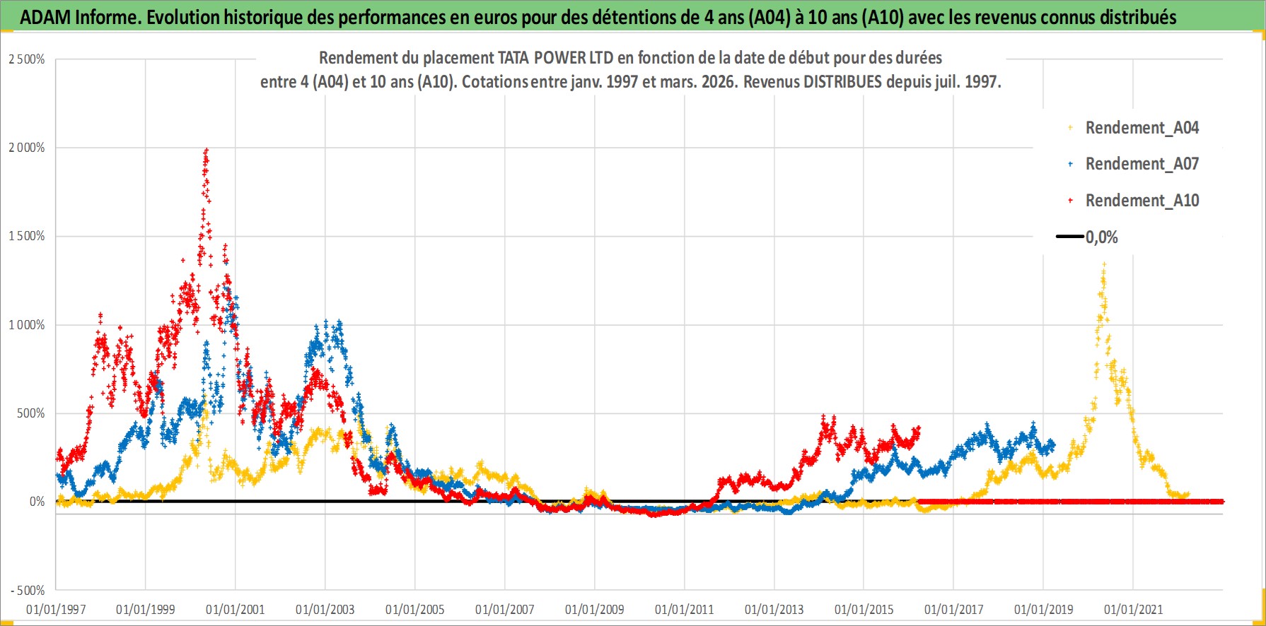 Site dédié aux investisseursPage dédiée sur site financeAnalyse des valorisations hebdomadaires de l'action TATA POWER LTD. Cet actif est cote en INR. Les valorisations sont en contrevaleur EURO et couvrent les semaines 1997W01 a 2026W13. Les revenus de cet actif financier sont pris en compte depuis la semaine 1997W28. La note ESG de cet actif n'est pas connue.