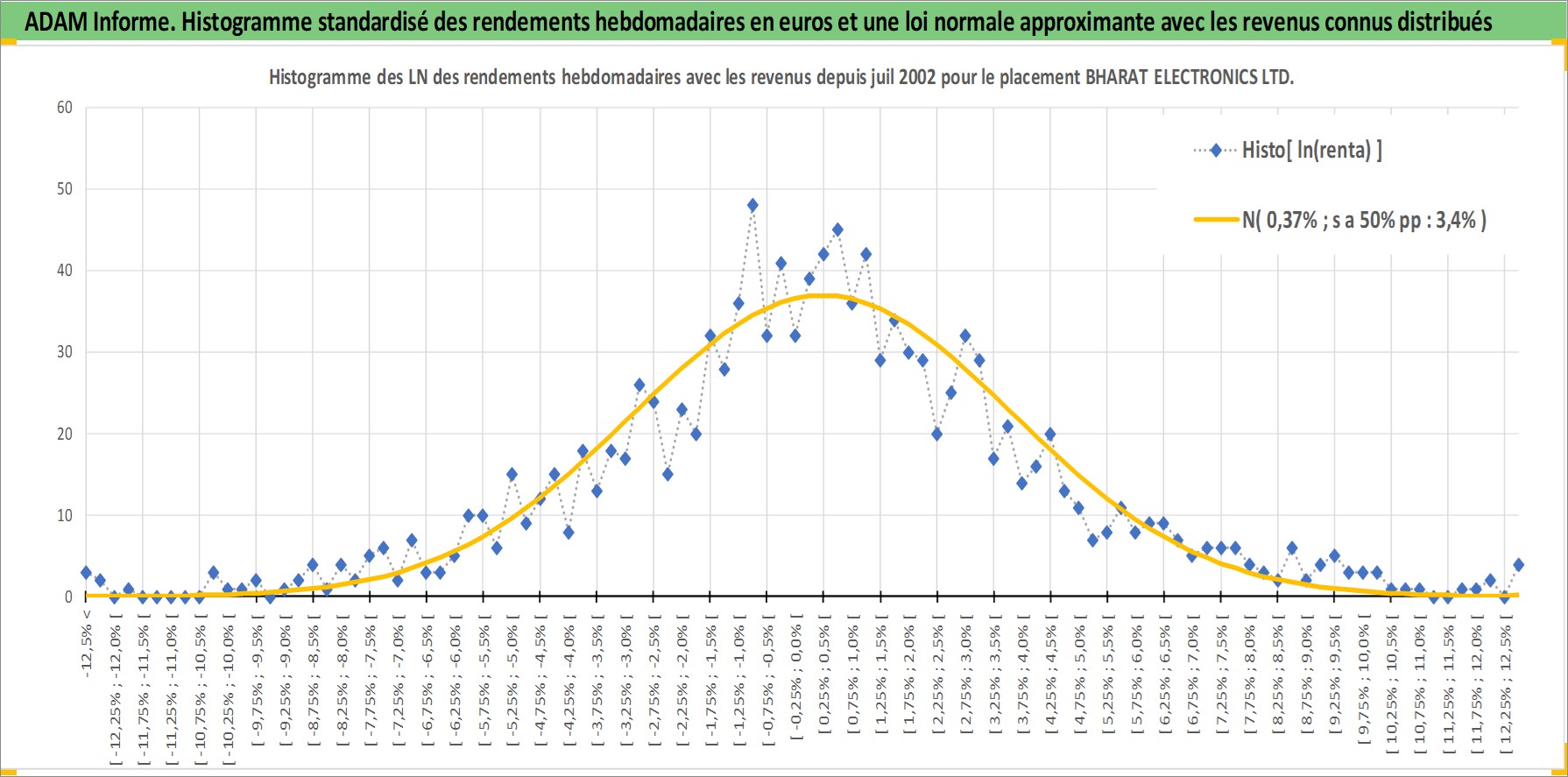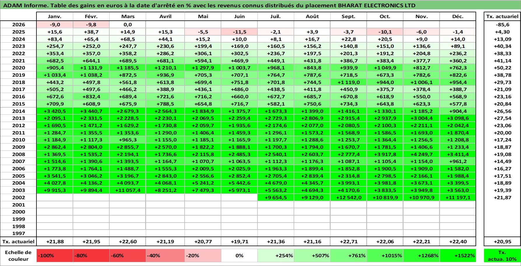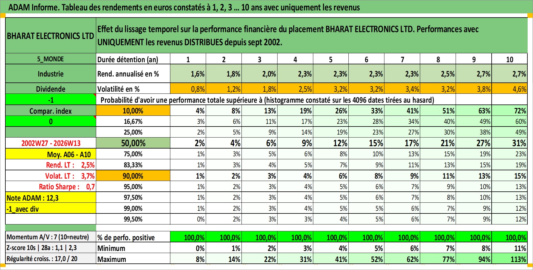 Site dédié aux investisseursPage dédiée sur site financeAnalyse des valorisations hebdomadaires de l'action BHARAT ELECTRONICS LTD. Cet actif est cote en INR. Les valorisations sont en contrevaleur EURO et couvrent les semaines 2002W27 a 2026W13. Les revenus de cet actif financier sont pris en compte depuis la semaine 2002W37. La note ESG de cet actif n'est pas connue.