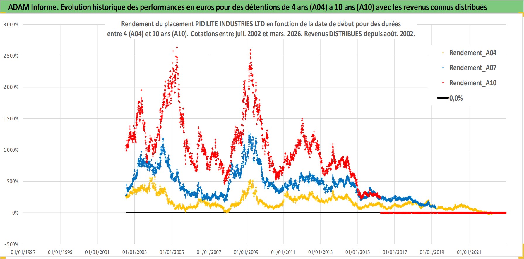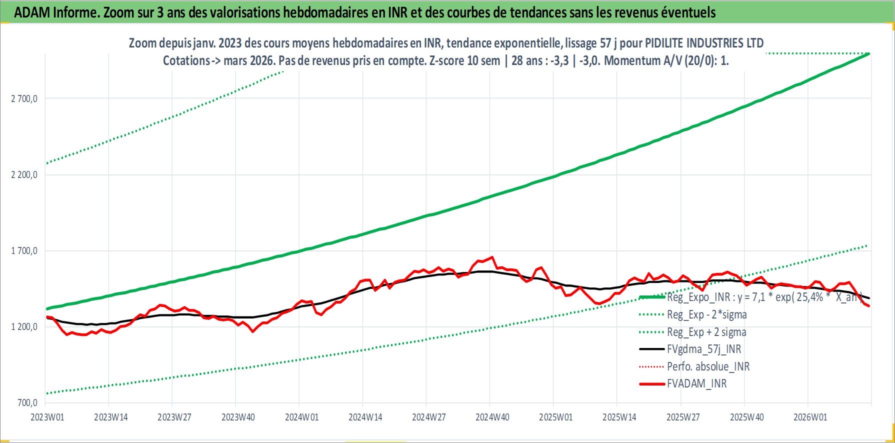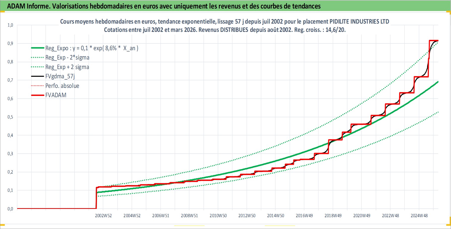 Site dédié aux investisseursPage dédiée sur site financeAnalyse des valorisations hebdomadaires de l'action PIDILITE INDUSTRIES LTD. Cet actif est cote en INR. Les valorisations sont en contrevaleur EURO et couvrent les semaines 2002W27 a 2026W13. Les revenus de cet actif financier sont pris en compte depuis la semaine 2002W34. La note ESG de cet actif n'est pas connue.