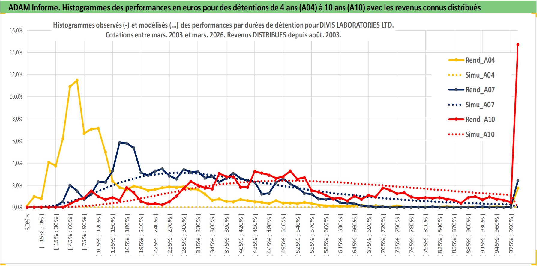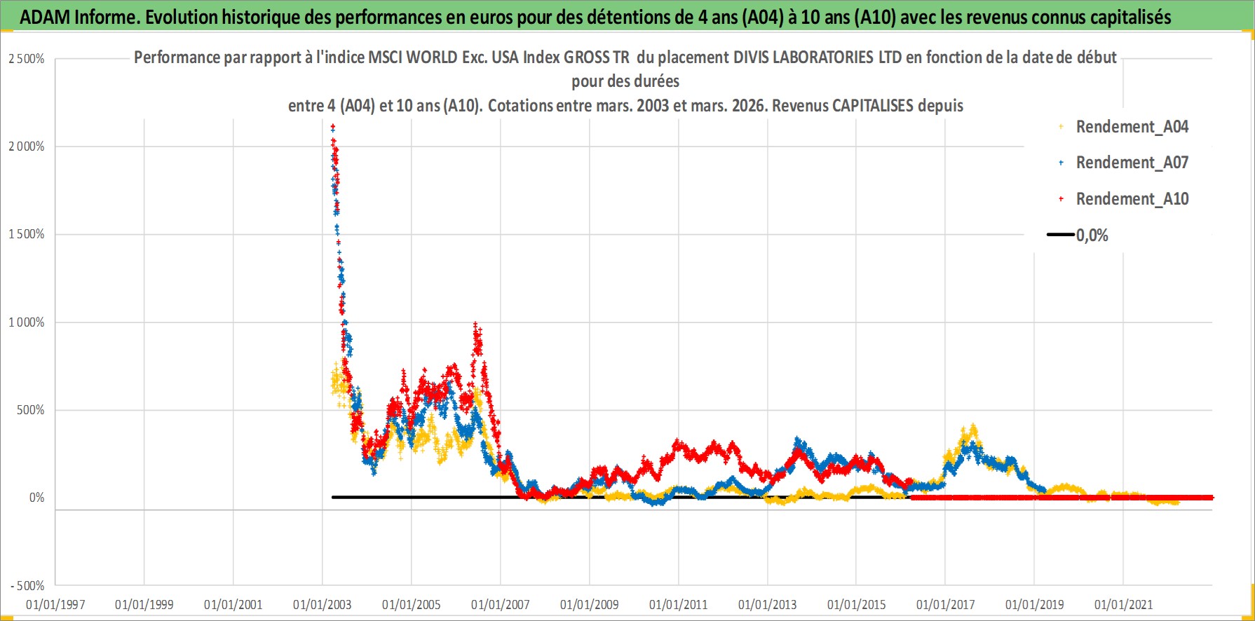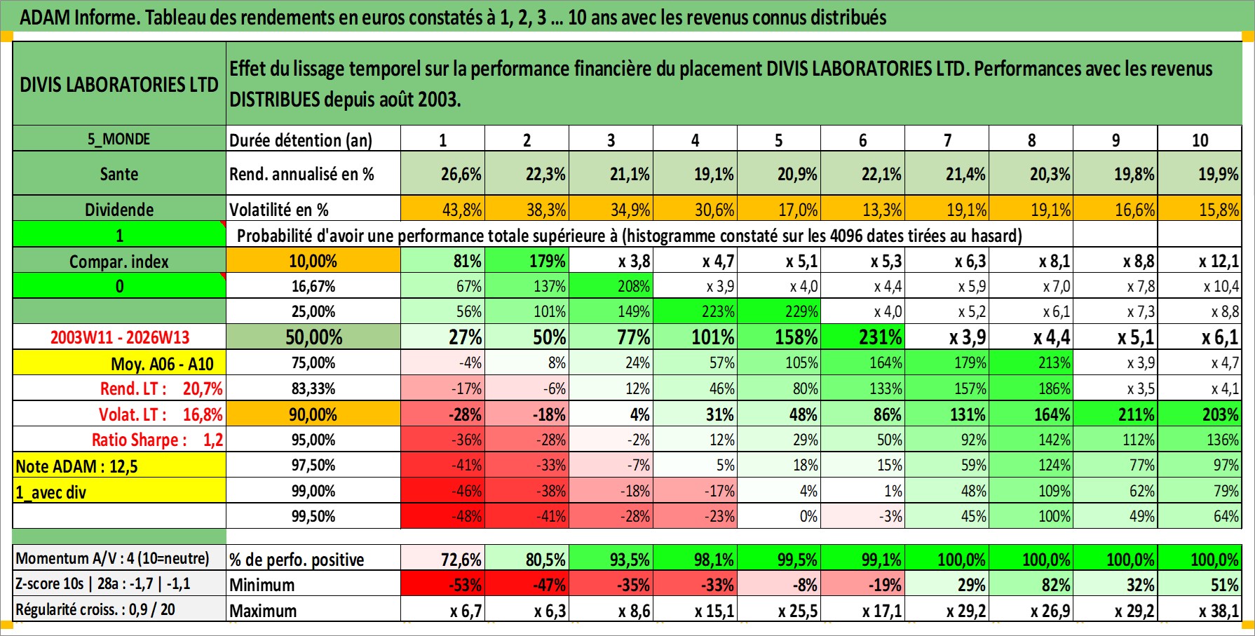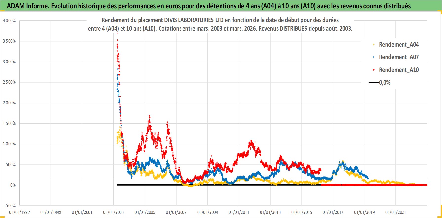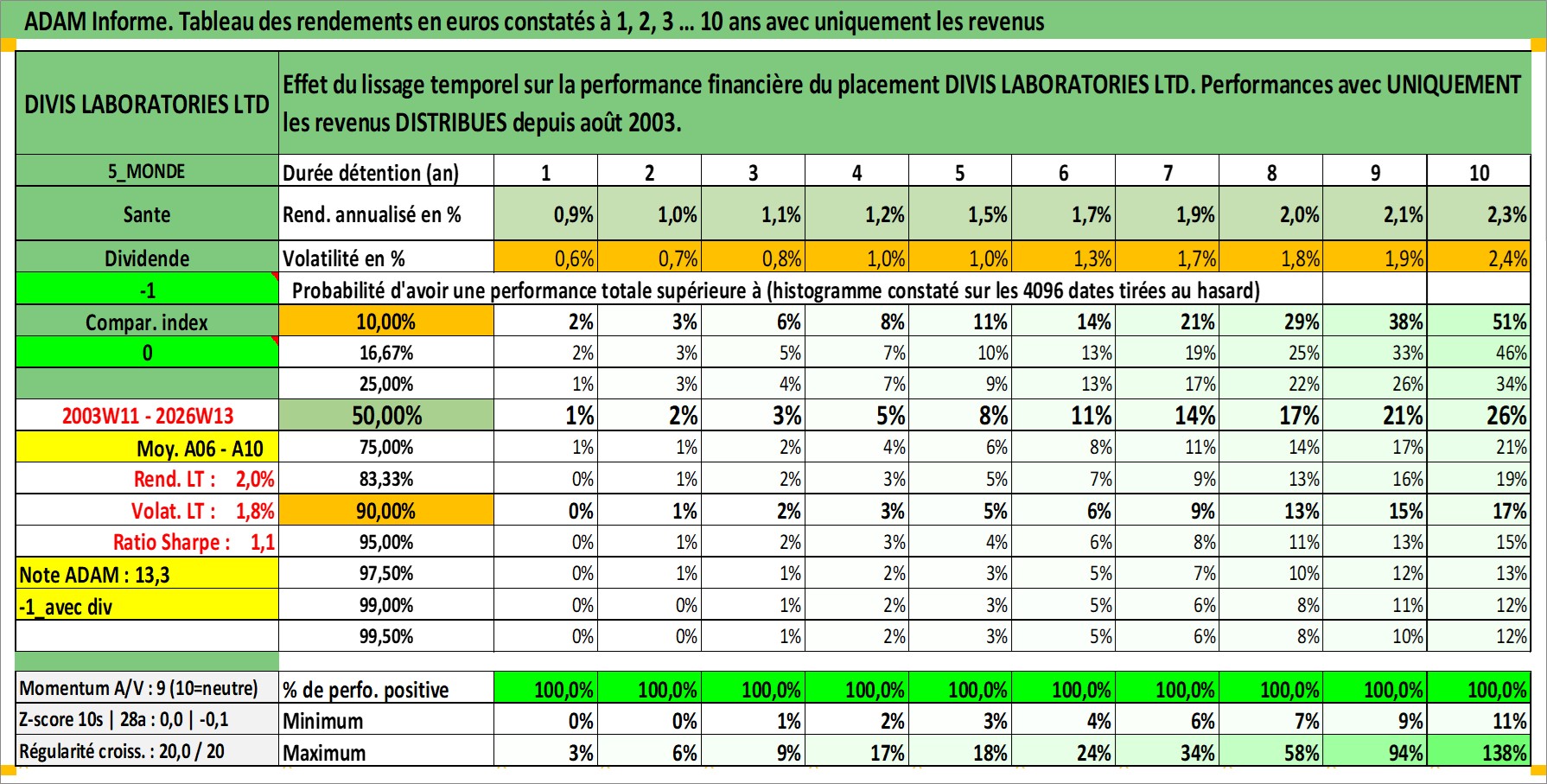 Site dédié aux investisseursPage dédiée sur site financeAnalyse des valorisations hebdomadaires de l'action DIVIS LABORATORIES LTD. Cet actif est cote en INR. Les valorisations sont en contrevaleur EURO et couvrent les semaines 2003W11 a 2026W13. Les revenus de cet actif financier sont pris en compte depuis la semaine 2003W33. La note ESG de cet actif n'est pas connue.