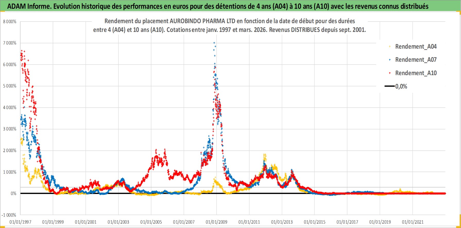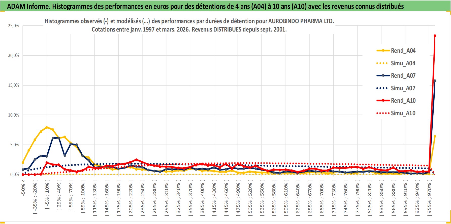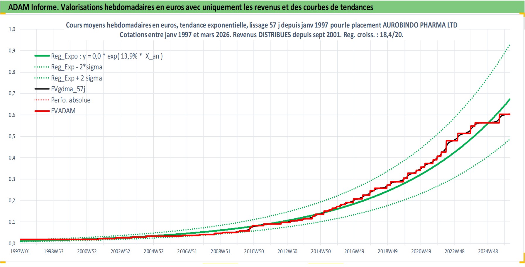 Site dédié aux investisseursPage dédiée sur site financeAnalyse des valorisations hebdomadaires de l'action AUROBINDO PHARMA LTD. Cet actif est cote en INR. Les valorisations sont en contrevaleur EURO et couvrent les semaines 1997W01 a 2026W13. Les revenus de cet actif financier sont pris en compte depuis la semaine 2001W37. La note globale ESG de cet actif est estimee a 4.0 (apres rebasage entre 0 et 20).