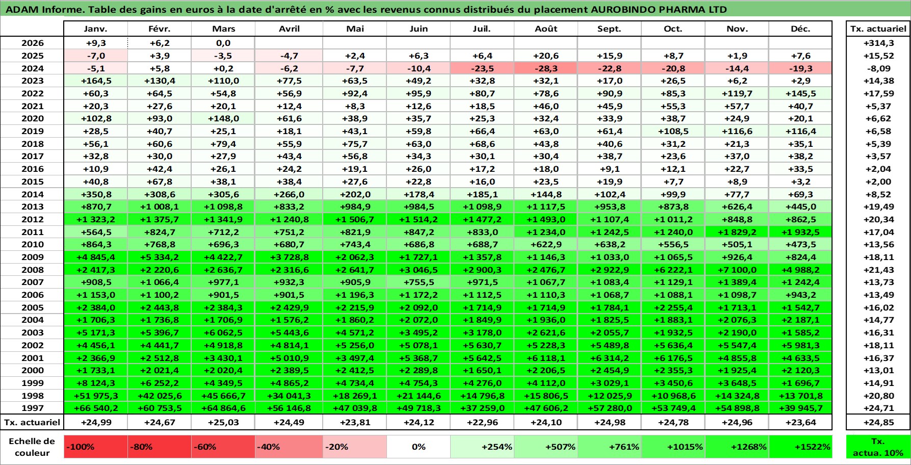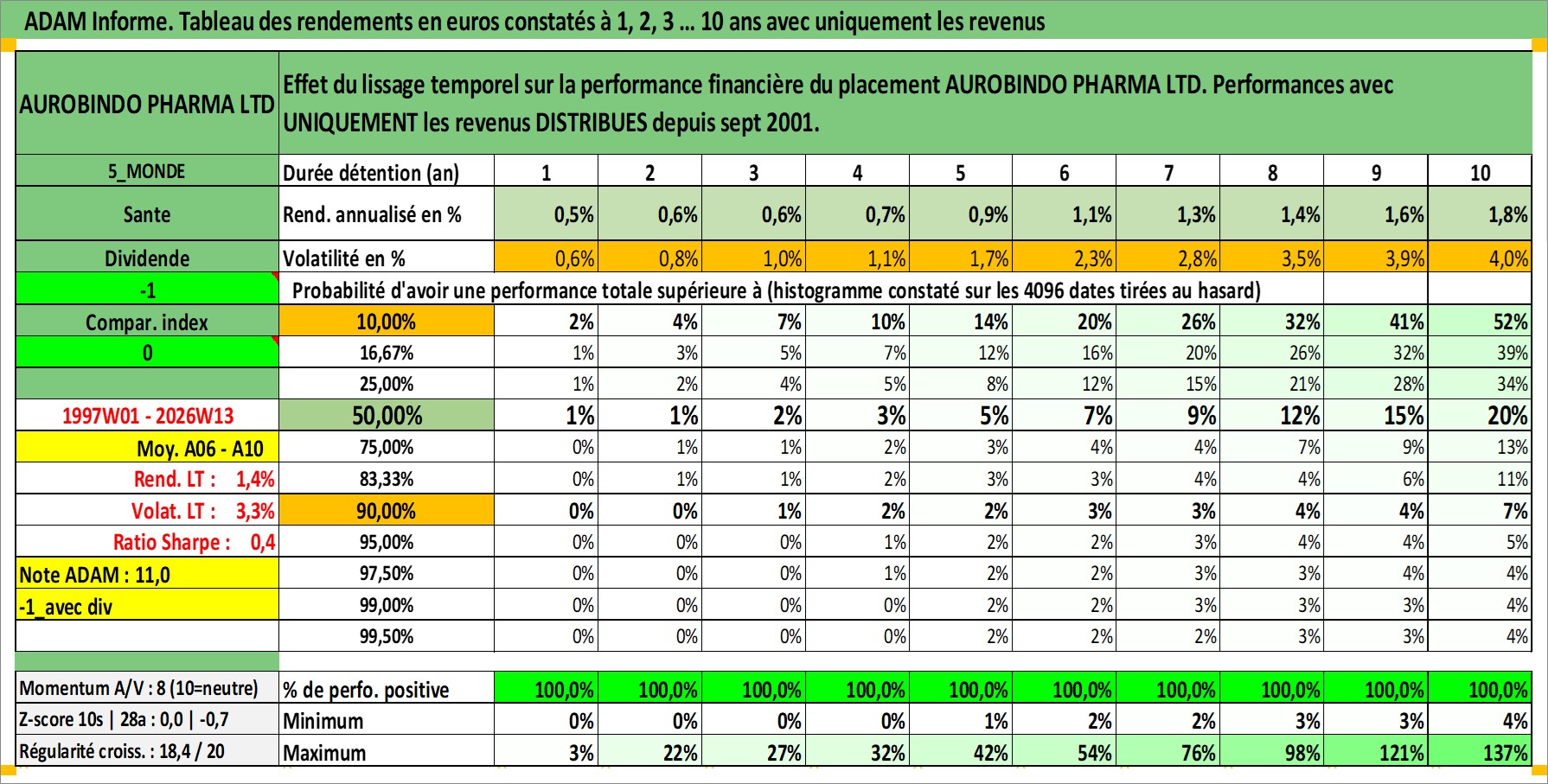 Dernière perfo 10 ans en %