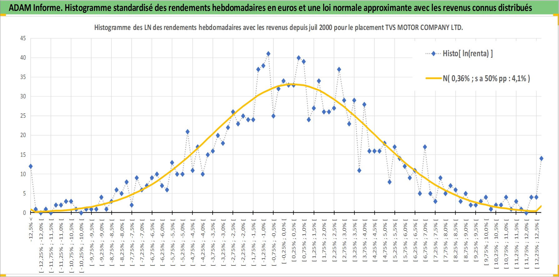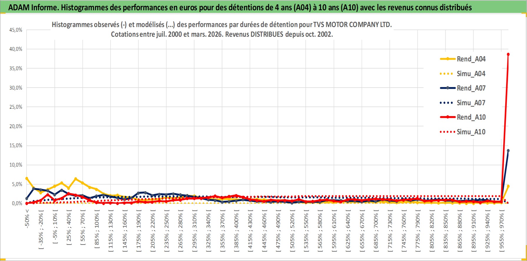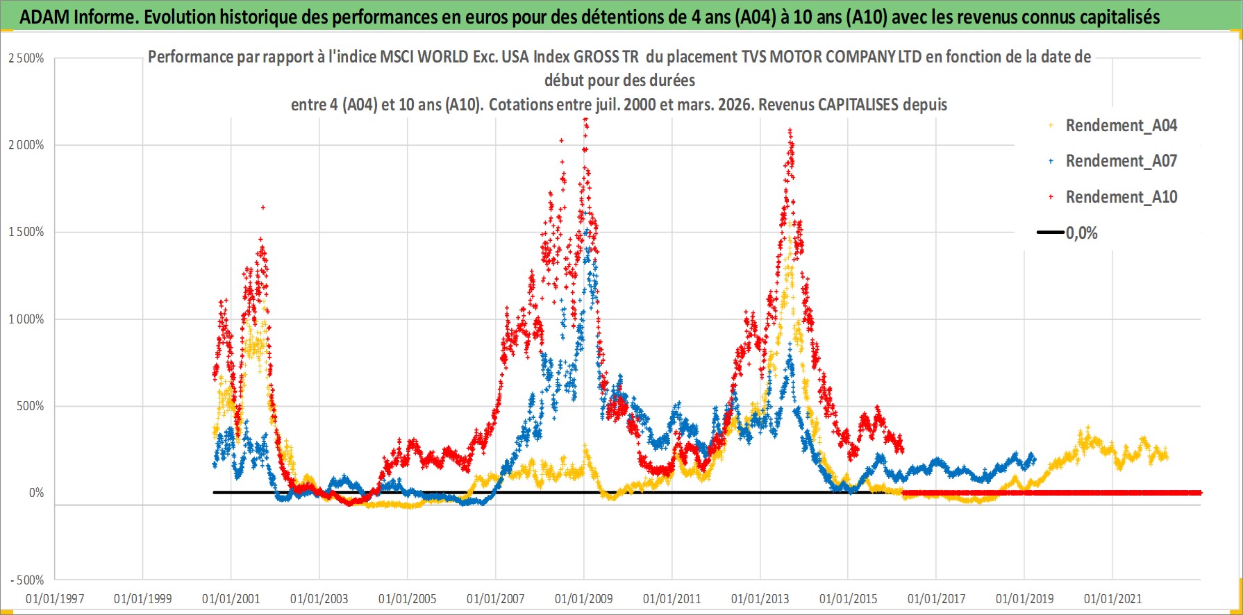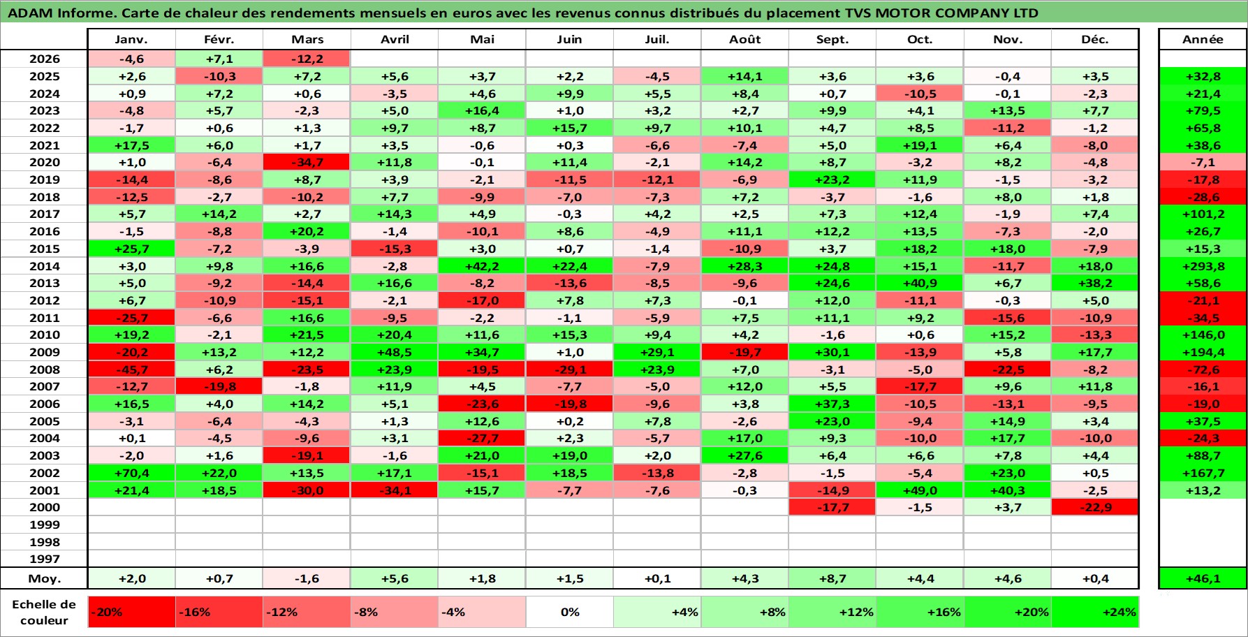 Site dédié aux investisseursPage dédiée sur site financeAnalyse des valorisations hebdomadaires de l'action TVS MOTOR COMPANY LTD. Cet actif est cote en INR. Les valorisations sont en contrevaleur EURO et couvrent les semaines 2000W31 a 2026W13. Les revenus de cet actif financier sont pris en compte depuis la semaine 2002W43. La note ESG de cet actif n'est pas connue.