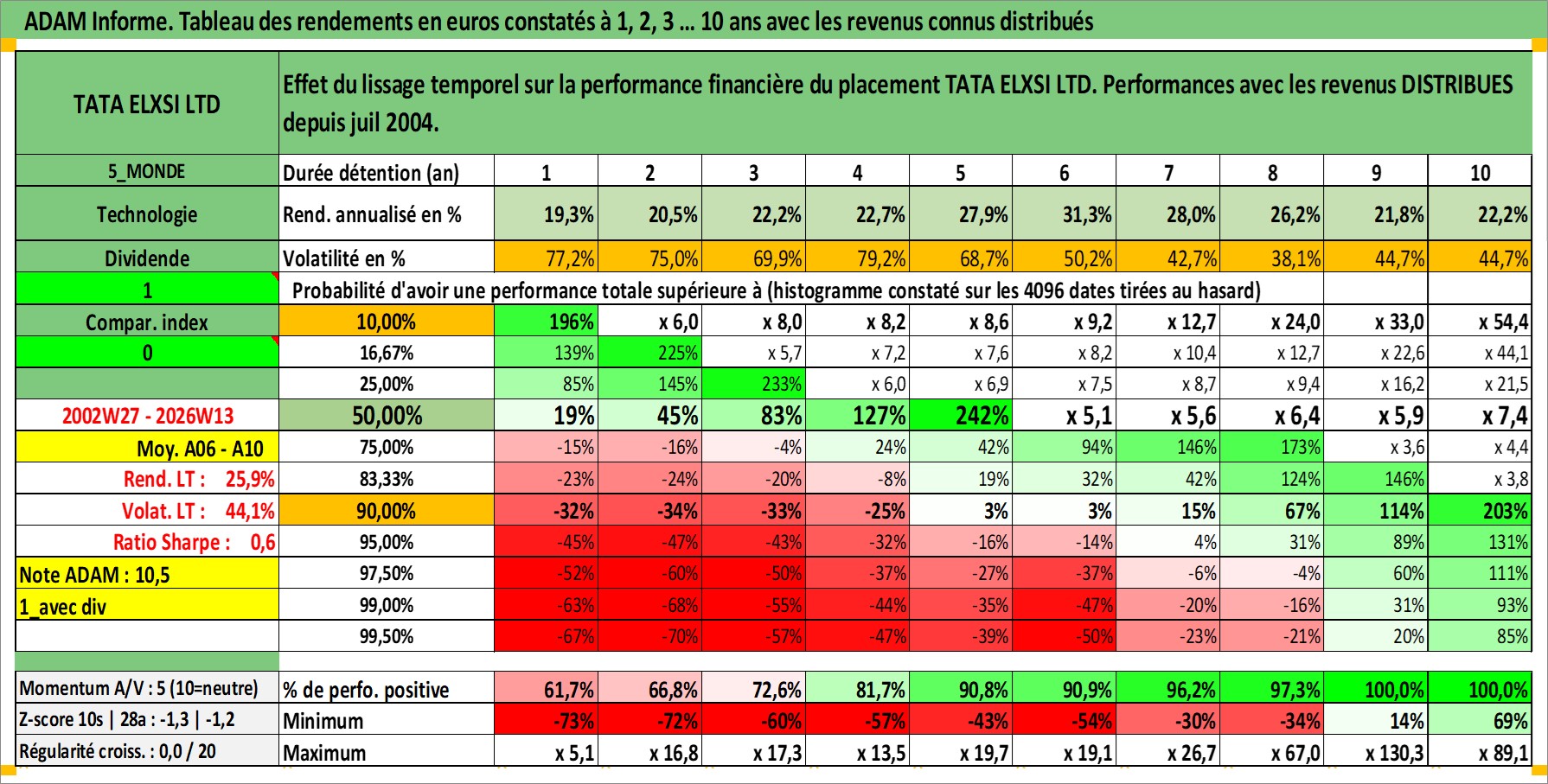Dernière perfo 10 ans en %
