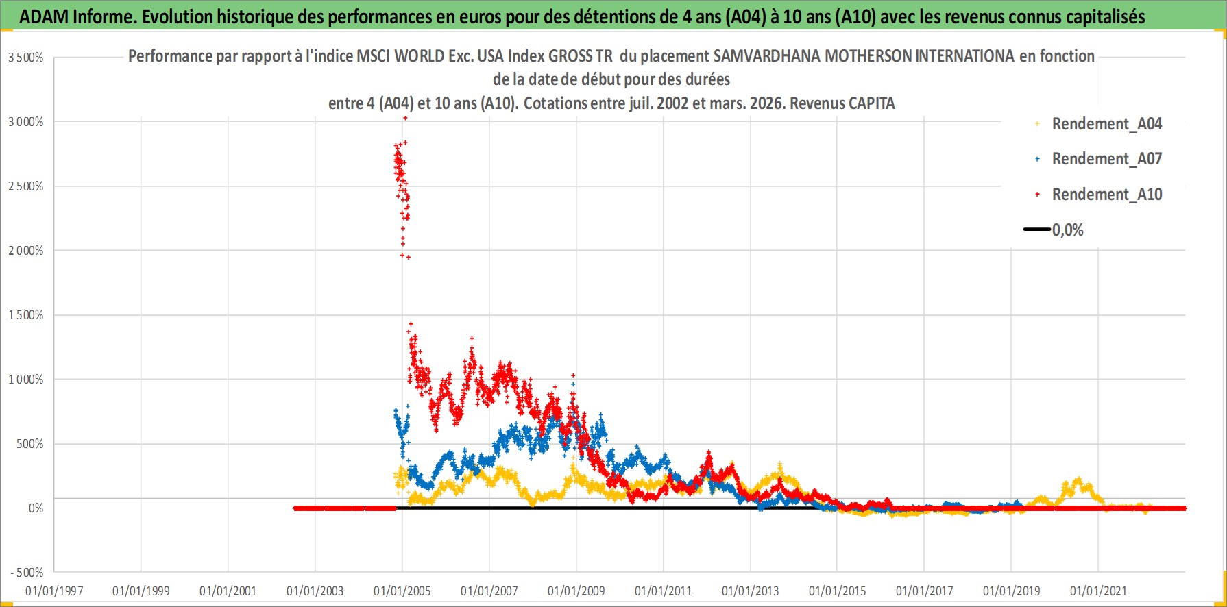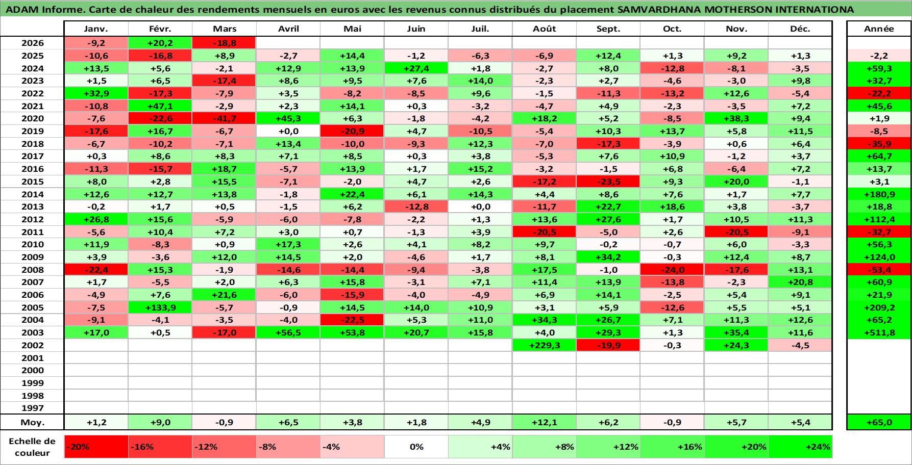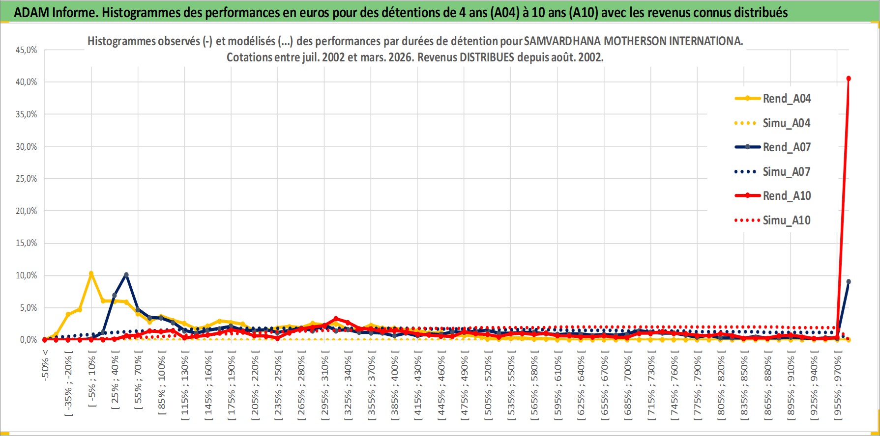 Site dédié aux investisseursPage dédiée sur site financeAnalyse des valorisations hebdomadaires de l'action SAMVARDHANA MOTHERSON INTERNATIONA. Cet actif est cote en INR. Les valorisations sont en contrevaleur EURO et couvrent les semaines 2002W27 a 2026W13. Les revenus de cet actif financier sont pris en compte depuis la semaine 2002W35. La note globale ESG de cet actif est estimee a 7.0 (apres rebasage entre 0 et 20).