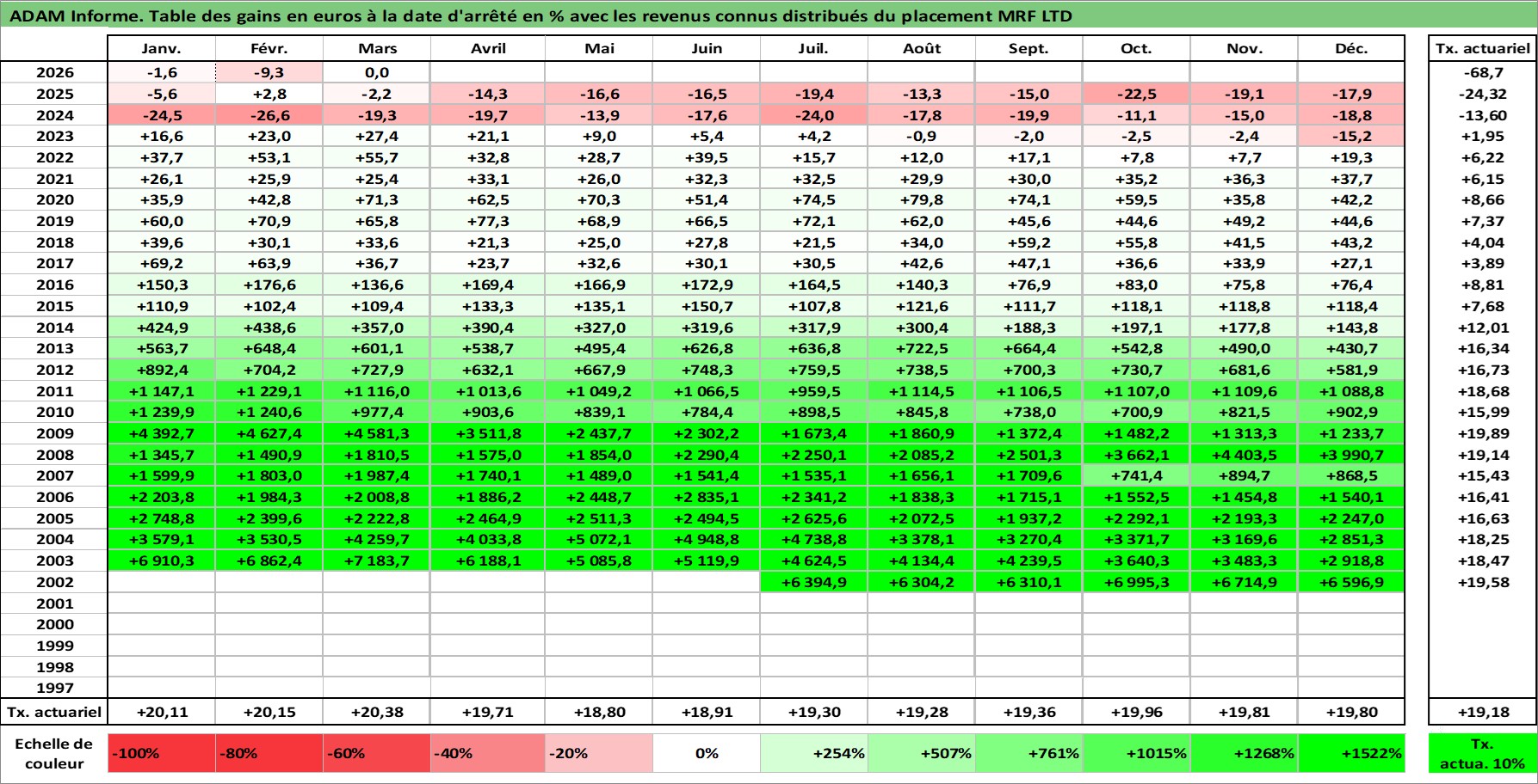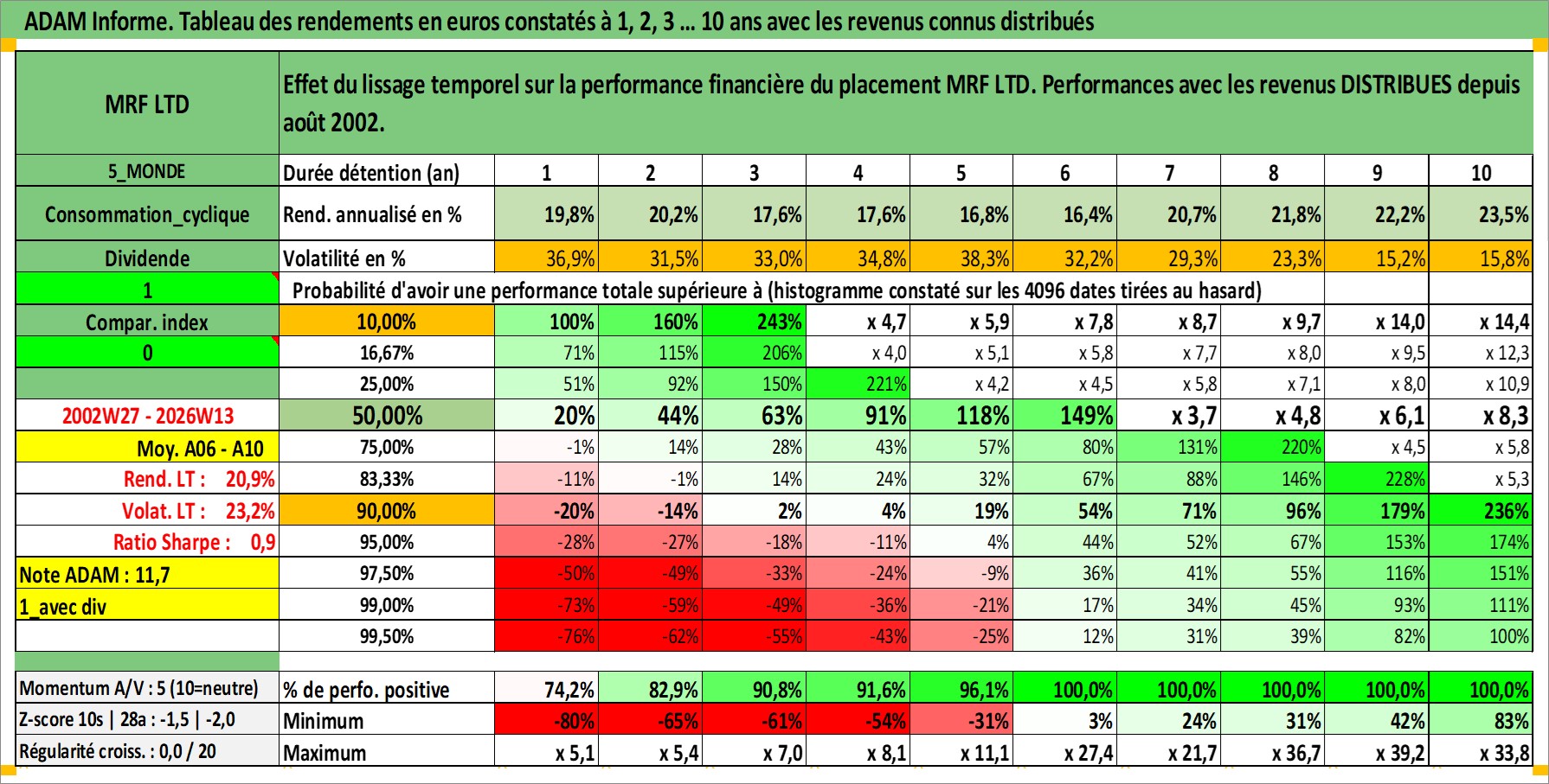 Dernière perfo 10 ans en %