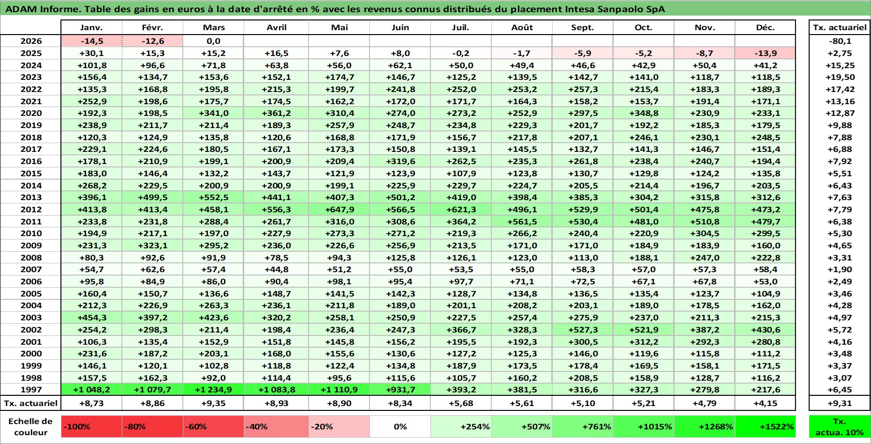 Dernière perfo 1 an en %