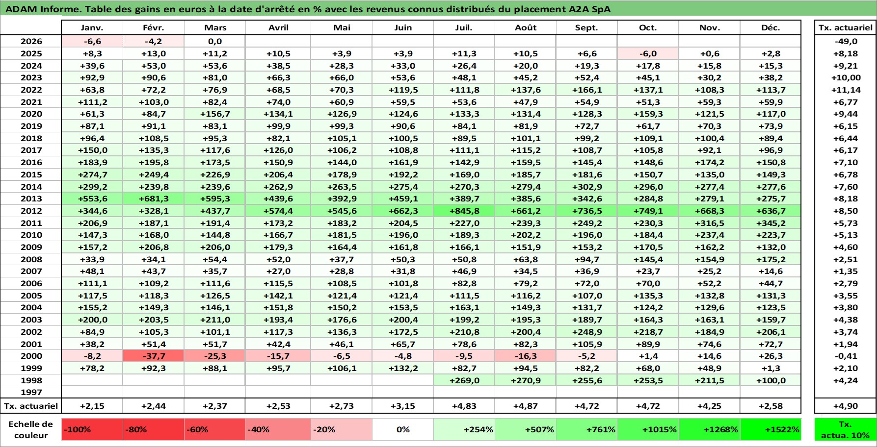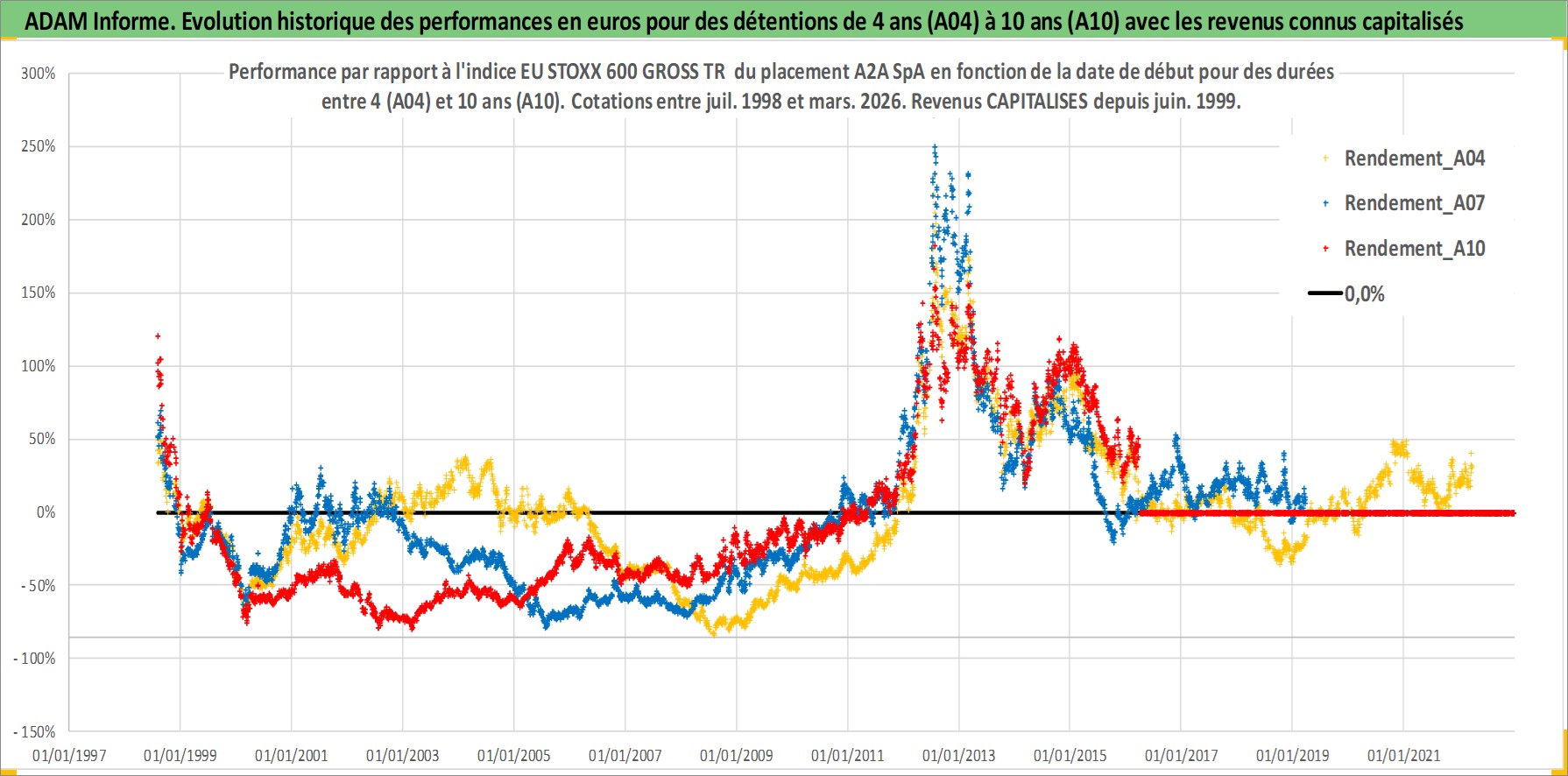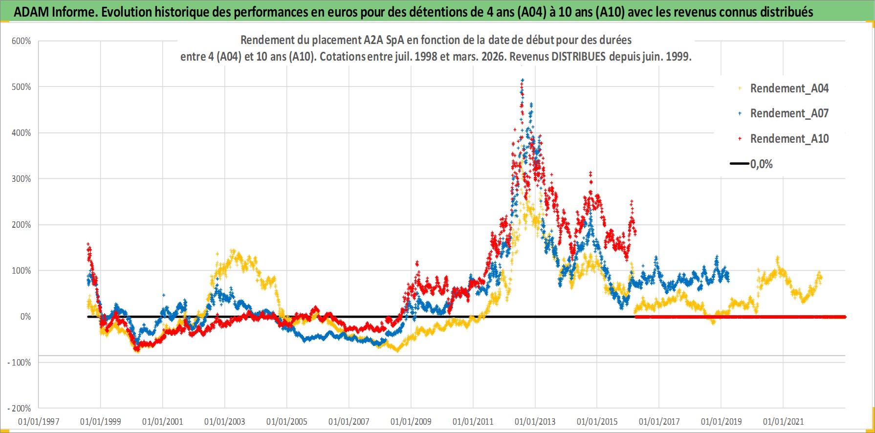 Site dédié aux investisseursPage dédiée sur site financeAnalyse des valorisations hebdomadaires de l'action A2A SpA. Cet actif est cote en EUR. Les valorisations couvrent les semaines 1998W30 a 2026W13. Les revenus de cet actif financier sont pris en compte depuis la semaine 1999W25. La note ESG de cet actif n'est pas connue.
