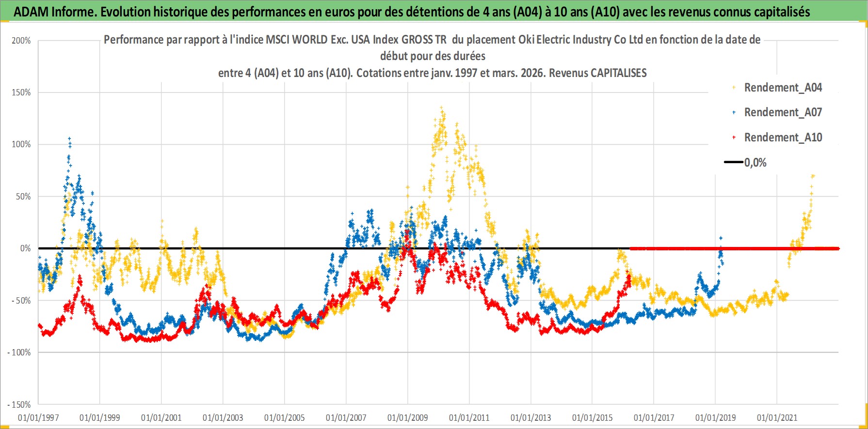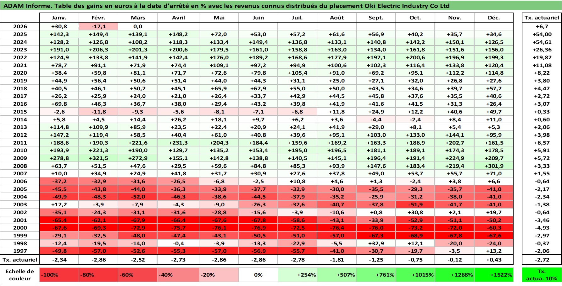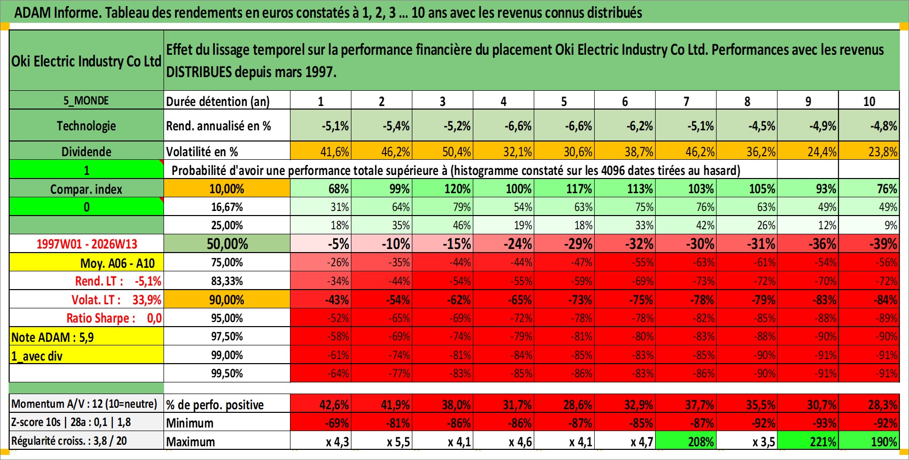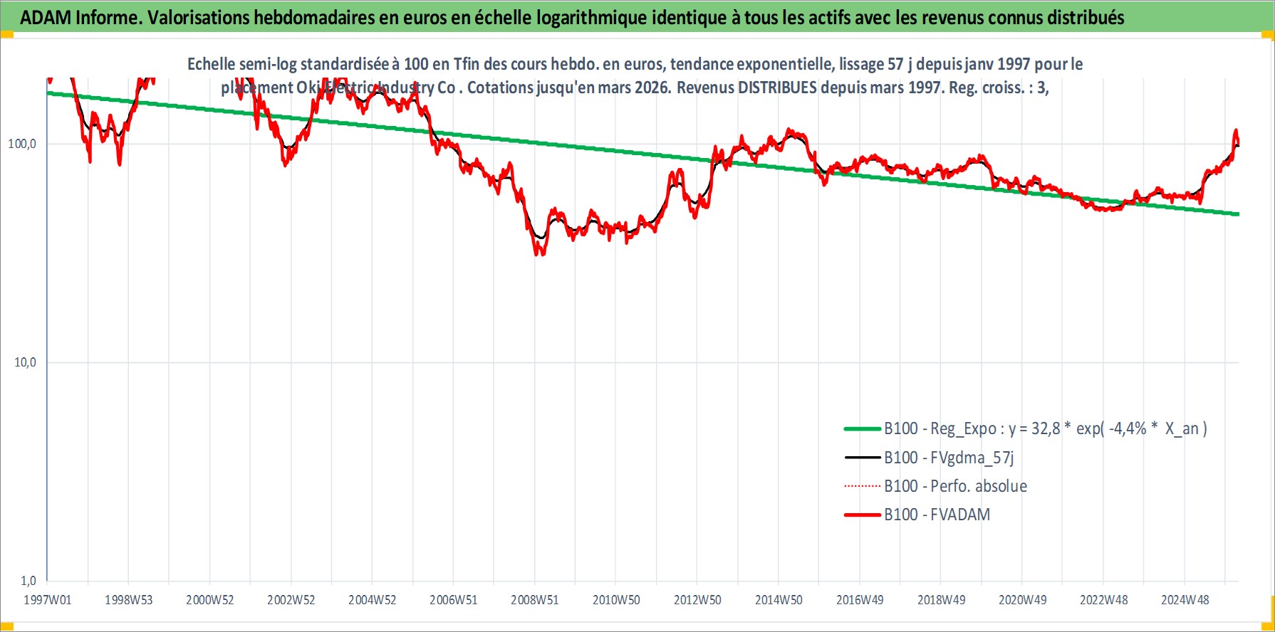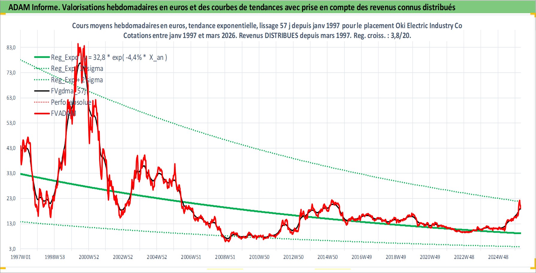 Site dédié aux investisseursPage dédiée sur site financeAnalyse des valorisations hebdomadaires de l'action Oki Electric Industry Co Ltd. Cet actif est cote en JPY. Les valorisations sont en contrevaleur EURO et couvrent les semaines 1997W01 a 2026W13. Les revenus de cet actif financier sont pris en compte depuis la semaine 1997W13. La note ESG de cet actif n'est pas connue.