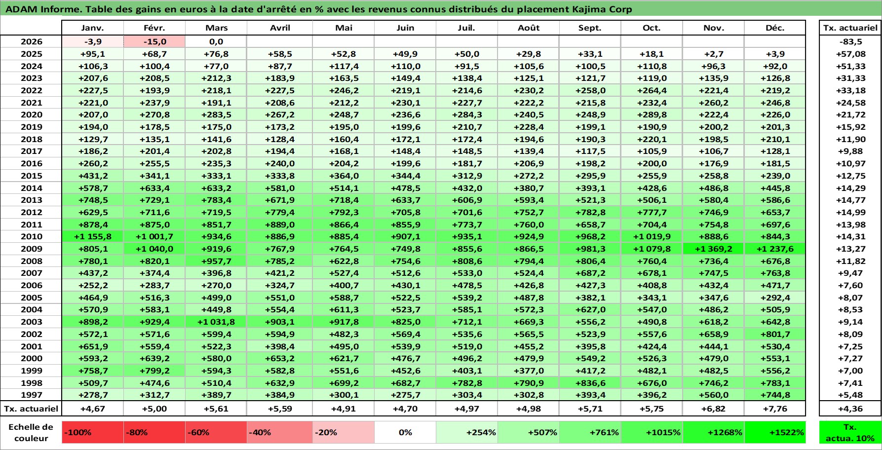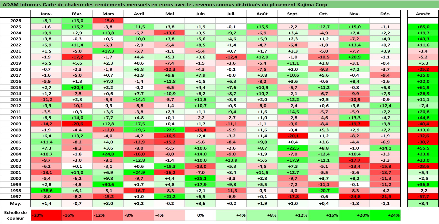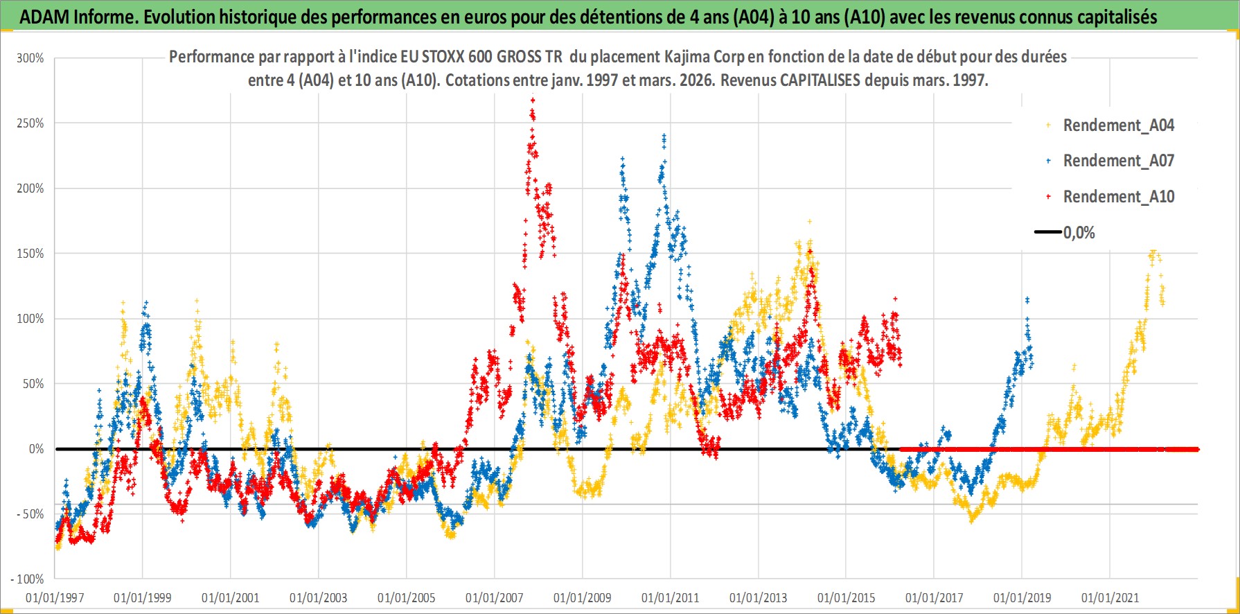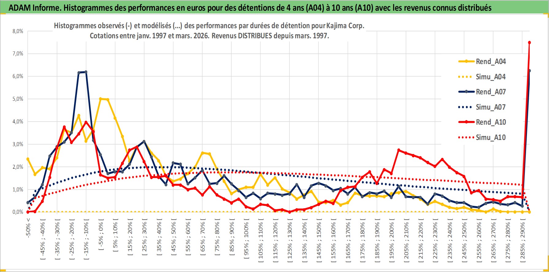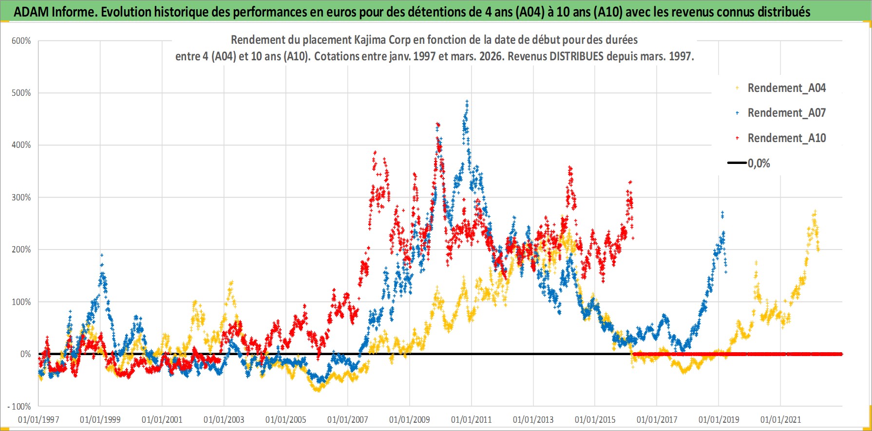 Site dédié aux investisseursPage dédiée sur site financeAnalyse des valorisations hebdomadaires de l'action Kajima Corp. Cet actif est cote en JPY. Les valorisations sont en contrevaleur EURO et couvrent les semaines 1997W01 a 2026W13. Les revenus de cet actif financier sont pris en compte depuis la semaine 1997W13. La note globale ESG de cet actif est estimee a 4.0 (apres rebasage entre 0 et 20).