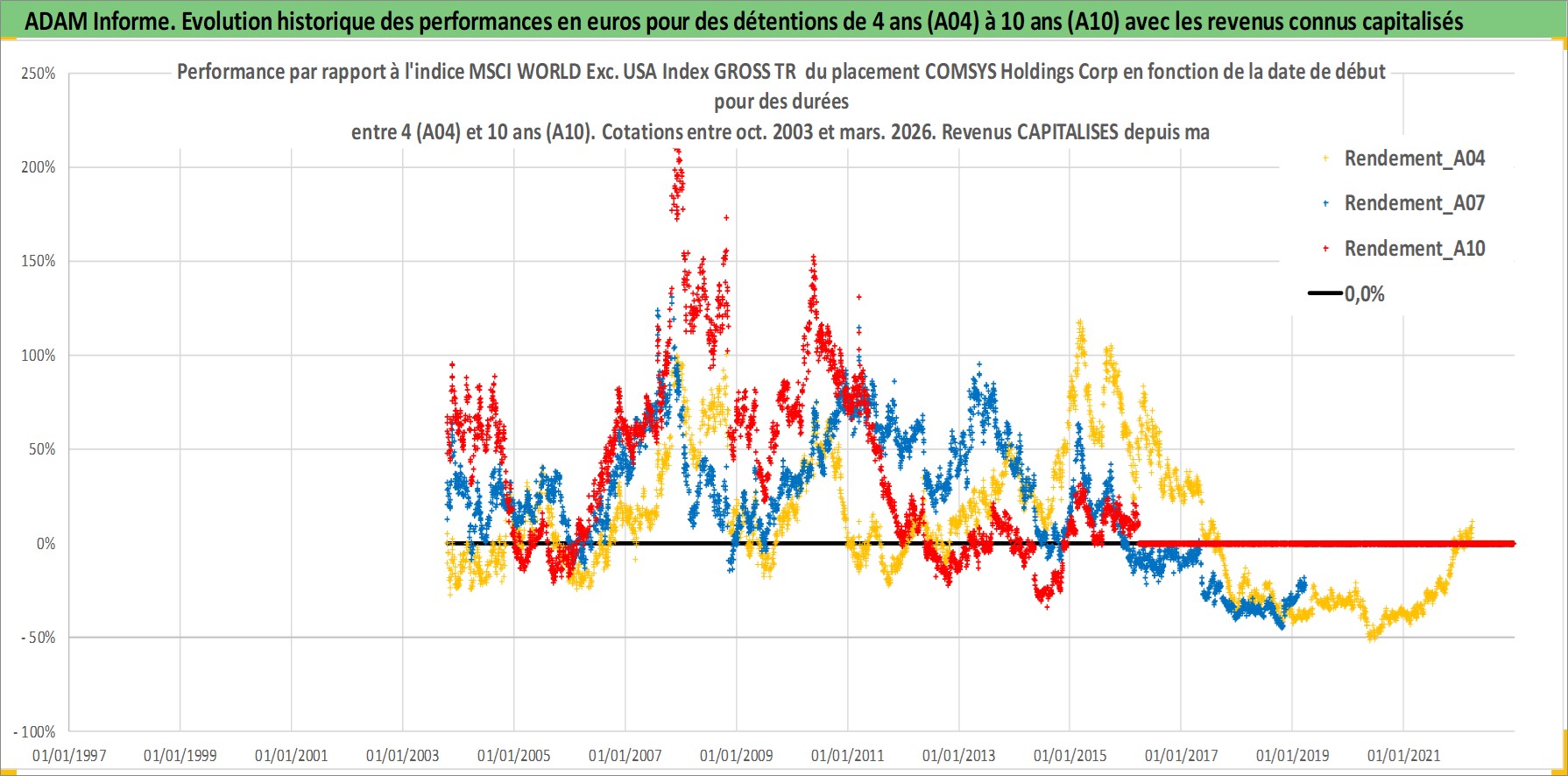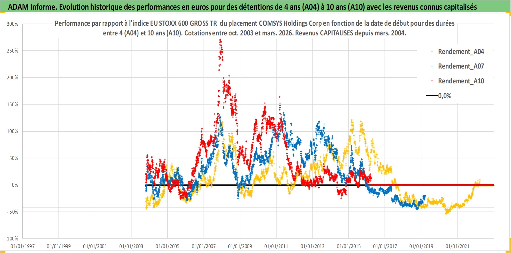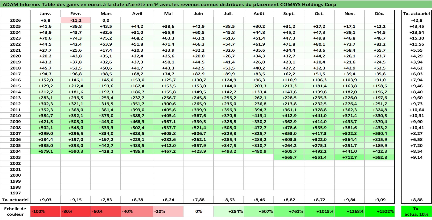 Site dédié aux investisseursPage dédiée sur site financeAnalyse des valorisations hebdomadaires de l'action COMSYS Holdings Corp. Cet actif est cote en JPY. Les valorisations sont en contrevaleur EURO et couvrent les semaines 2003W41 a 2026W13. Les revenus de cet actif financier sont pris en compte depuis la semaine 2004W13. La note ESG de cet actif n'est pas connue.