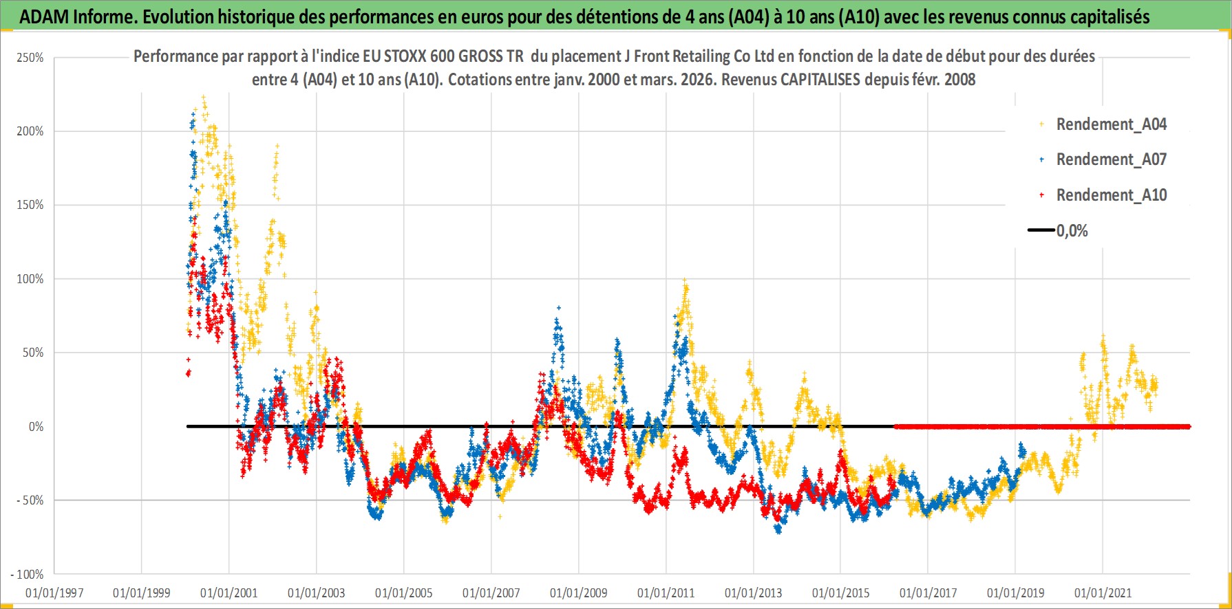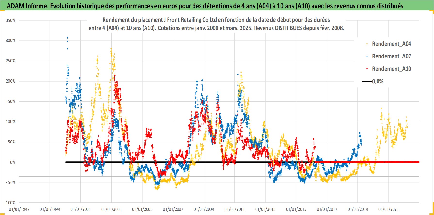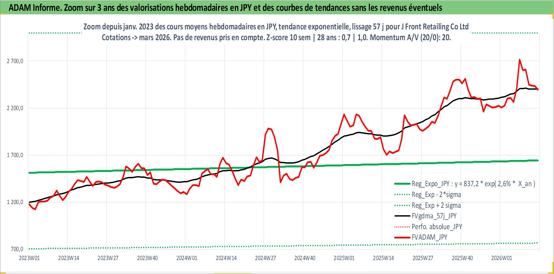 Site dédié aux investisseursPage dédiée sur site financeAnalyse des valorisations hebdomadaires de l'action J Front Retailing Co Ltd. Cet actif est cote en JPY. Les valorisations sont en contrevaleur EURO et couvrent les semaines 2000W01 a 2026W13. Les revenus de cet actif financier sont pris en compte depuis la semaine 2008W09. La note ESG de cet actif n'est pas connue.