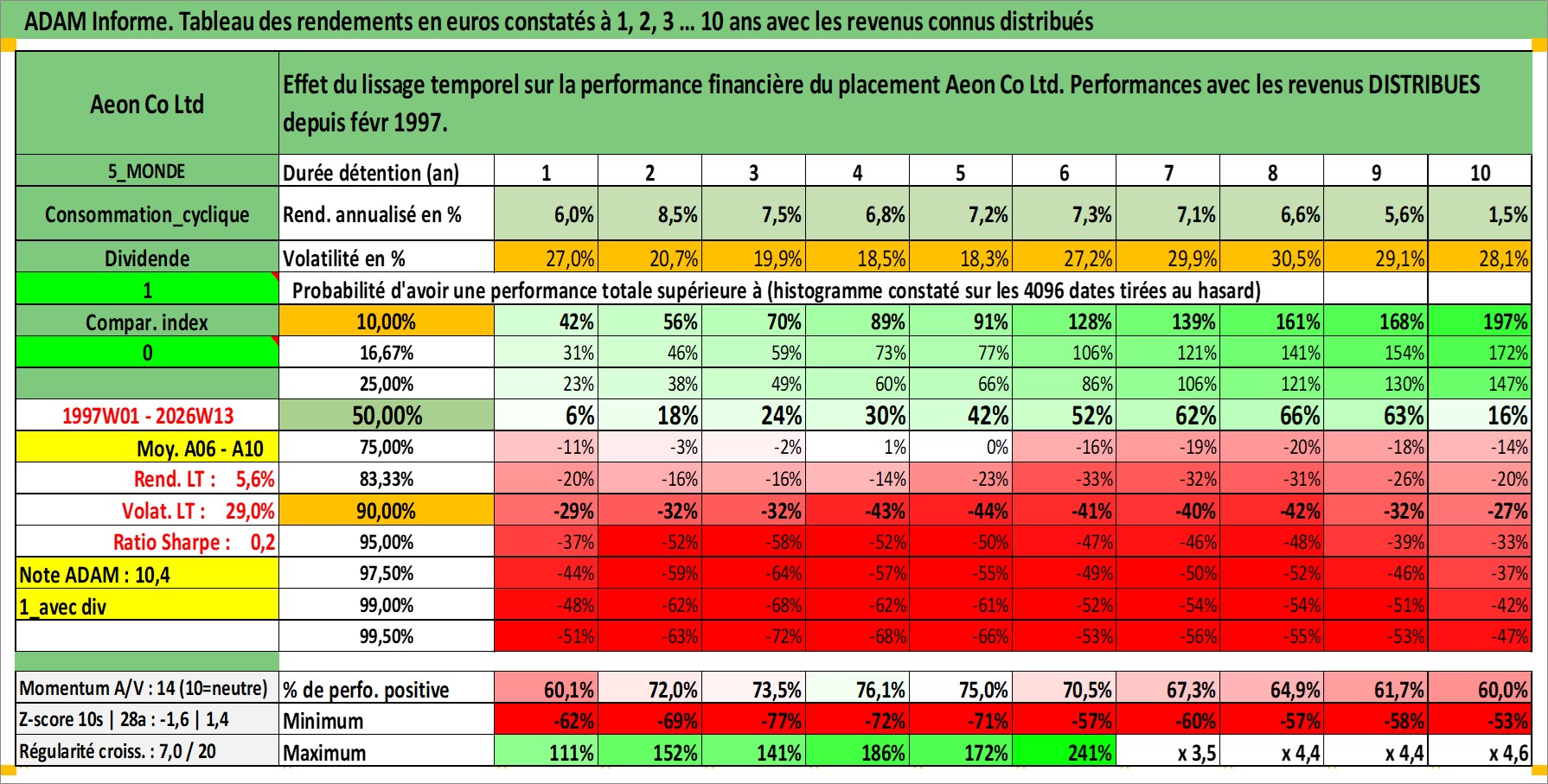 Dernière perfo 10 ans en %