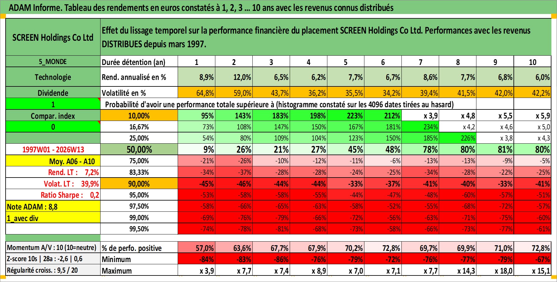 Dernière perfo 10 ans en %
