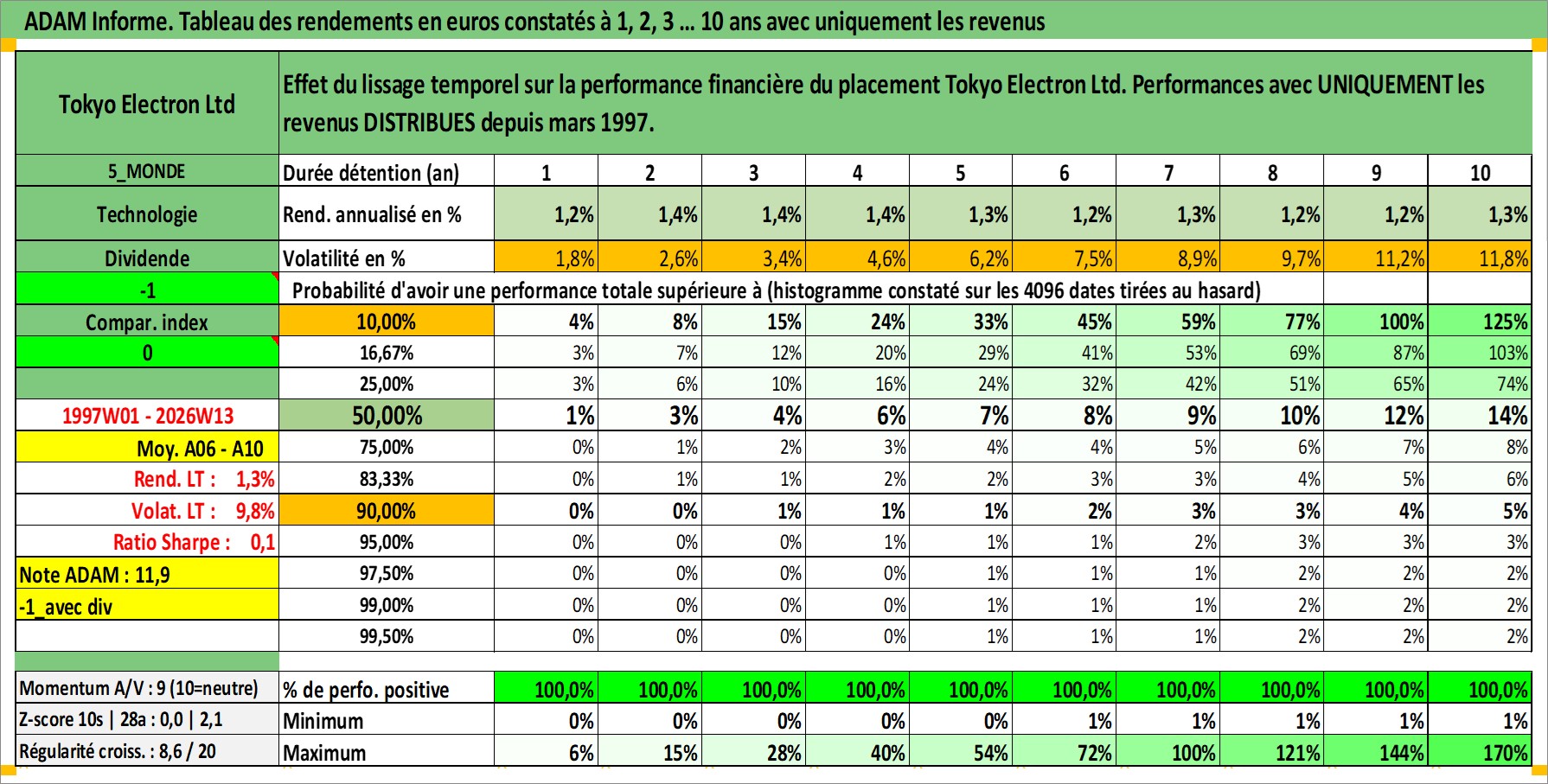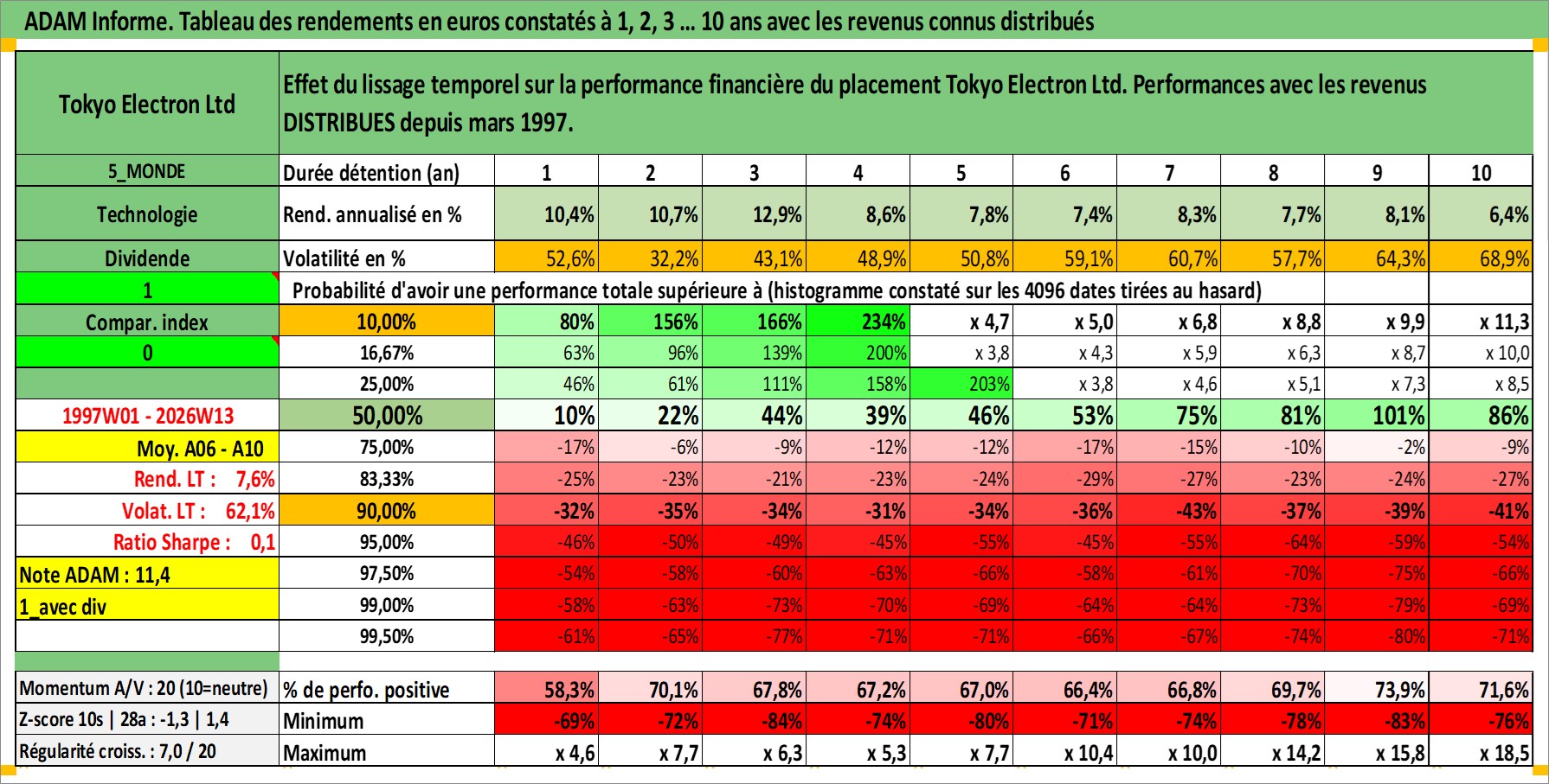 Dernière perfo 10 ans en %