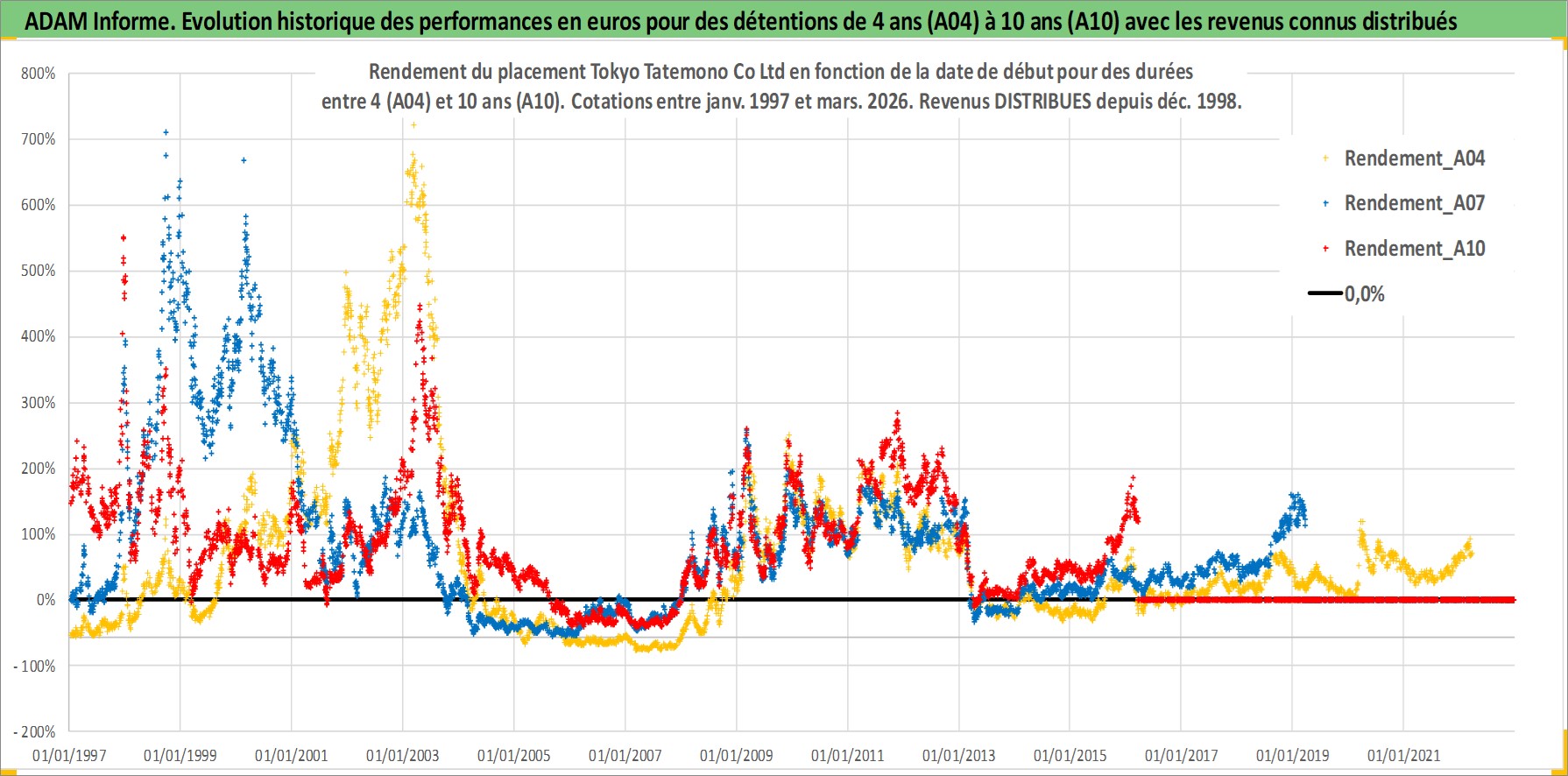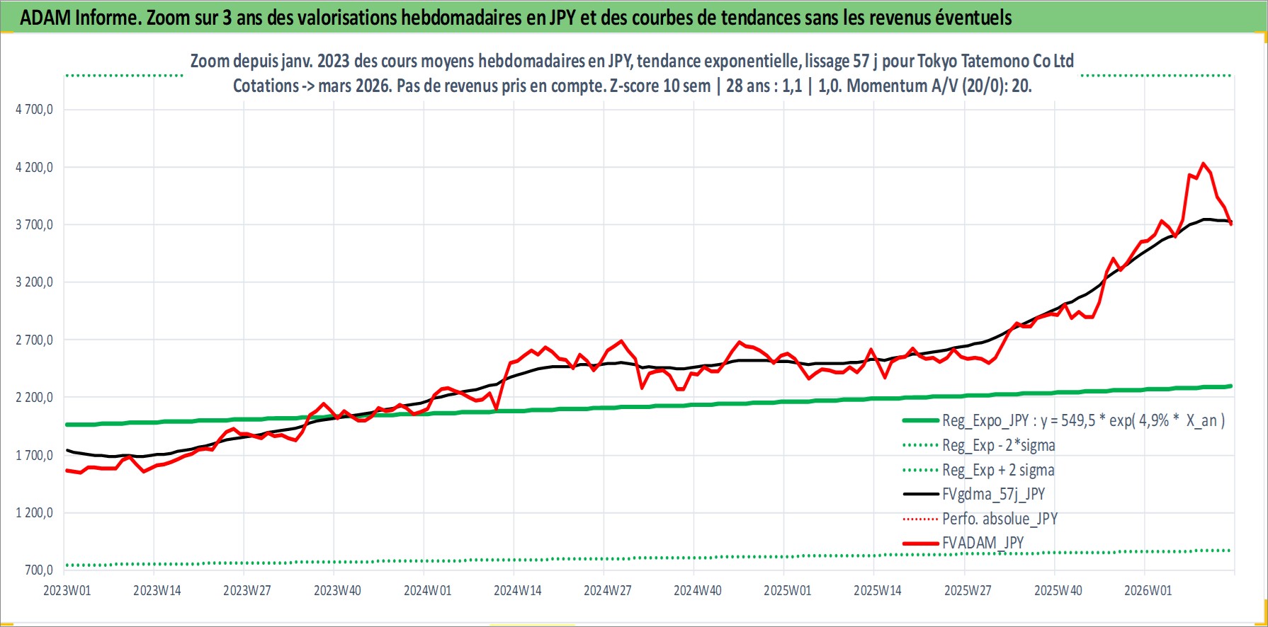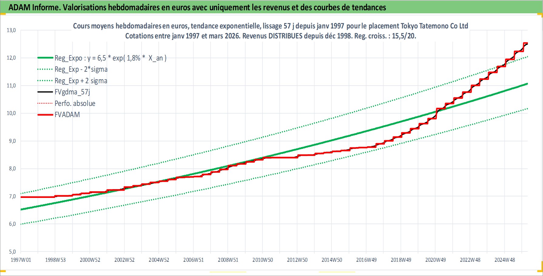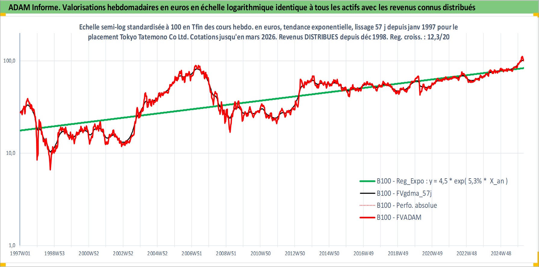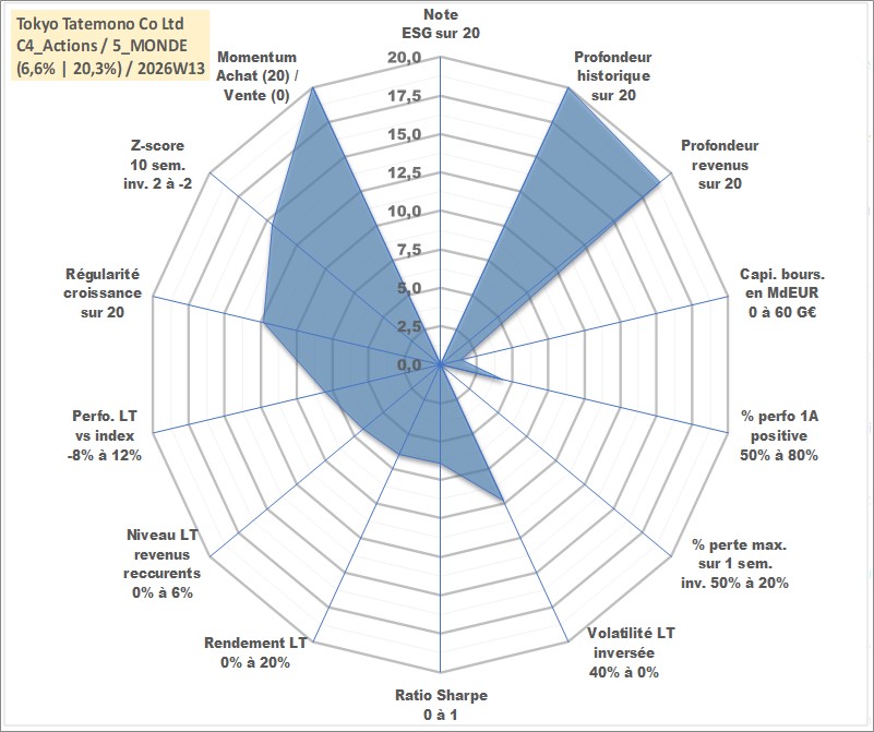 Site dédié aux investisseursPage dédiée sur site financeAnalyse des valorisations hebdomadaires de l'action Tokyo Tatemono Co Ltd. Cet actif est cote en JPY. Les valorisations sont en contrevaleur EURO et couvrent les semaines 1997W01 a 2026W13. Les revenus de cet actif financier sont pris en compte depuis la semaine 1998W52. La note ESG de cet actif n'est pas connue.
