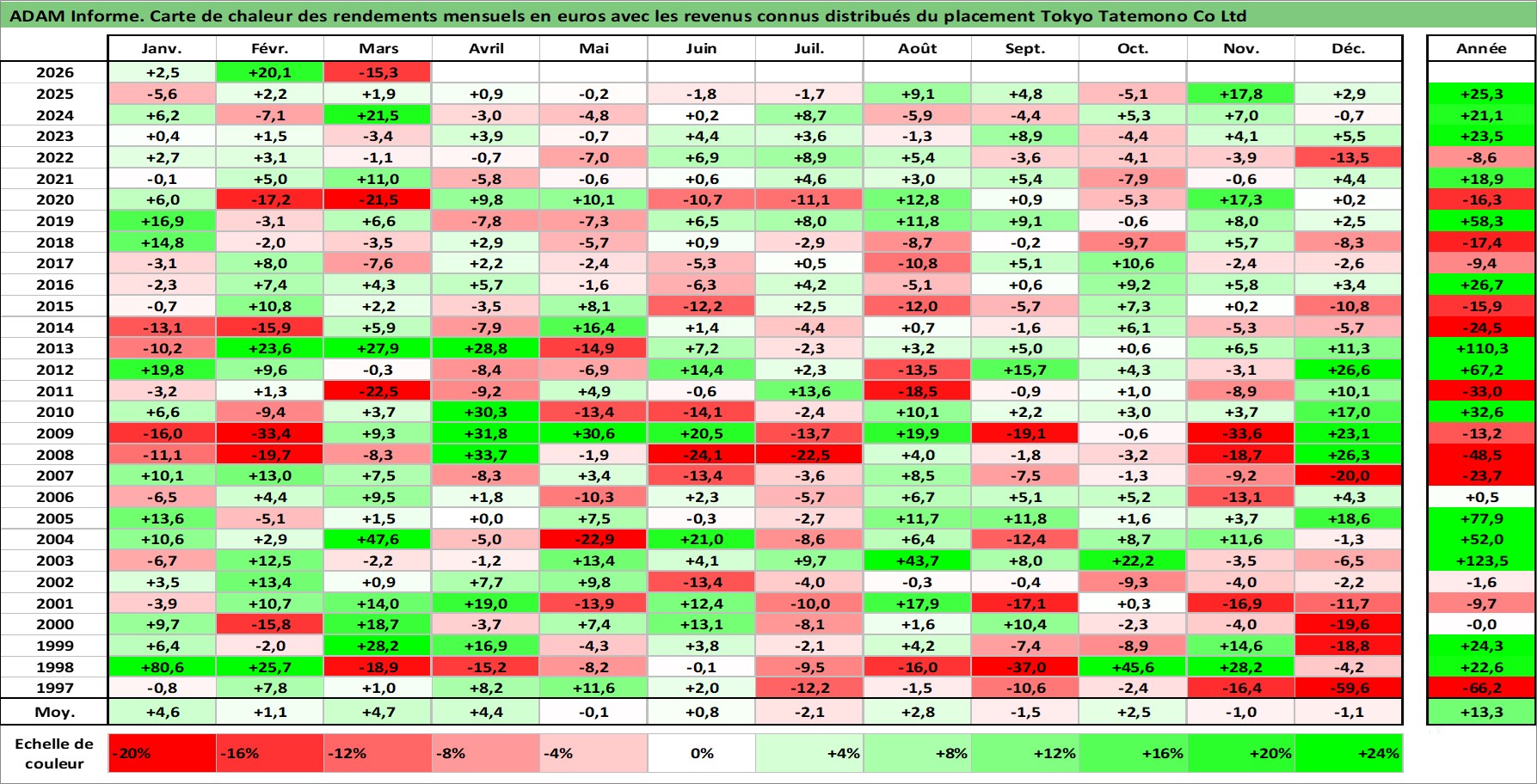 Dernière perfo 1 an en %