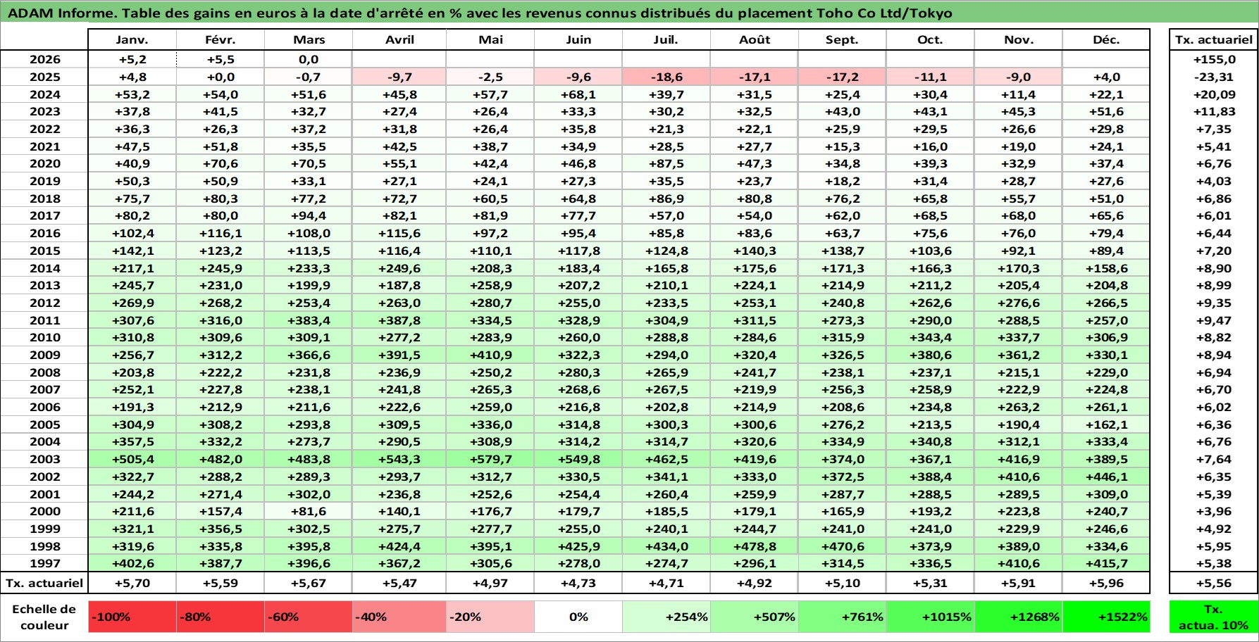 Dernière perfo 10 ans en %
