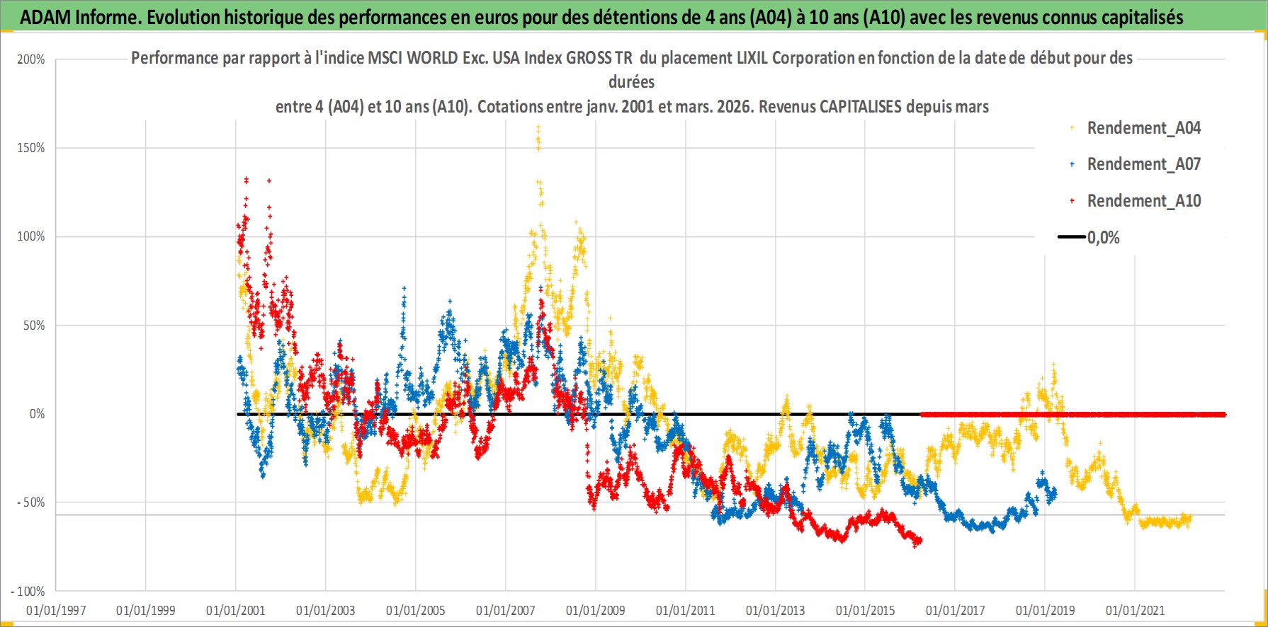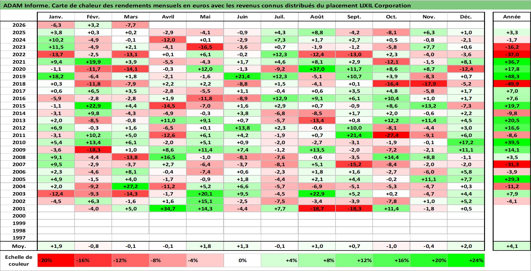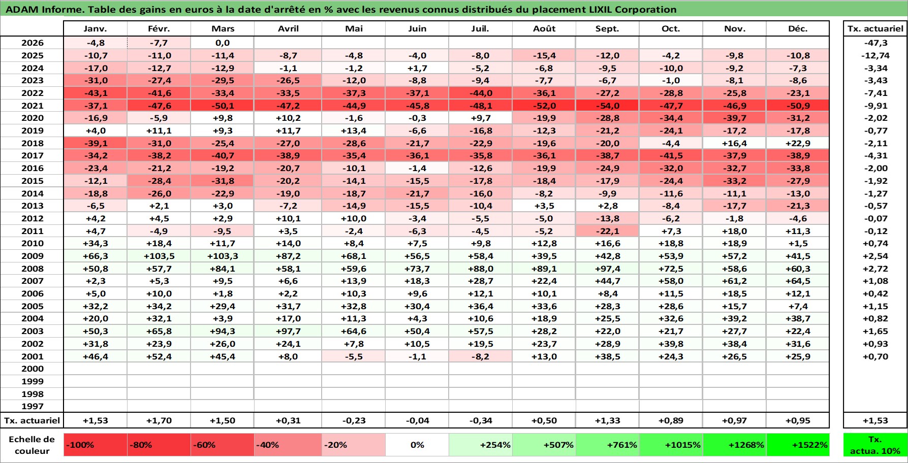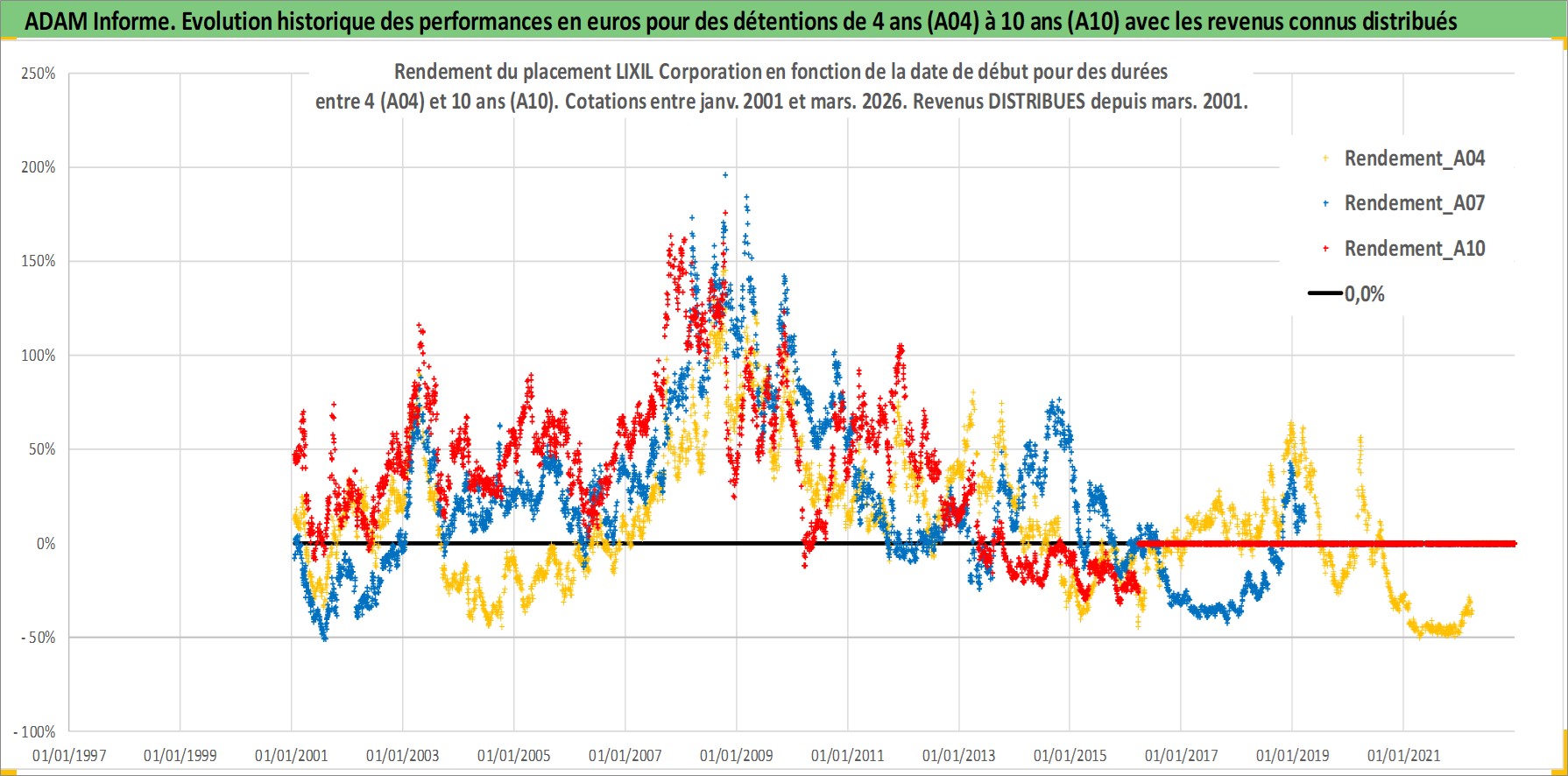 Site dédié aux investisseursPage dédiée sur site financeAnalyse des valorisations hebdomadaires de l'action LIXIL Corporation. Cet actif est cote en JPY. Les valorisations sont en contrevaleur EURO et couvrent les semaines 2001W02 a 2026W13. Les revenus de cet actif financier sont pris en compte depuis la semaine 2001W13. La note globale ESG de cet actif est estimee a 12.0 (apres rebasage entre 0 et 20).