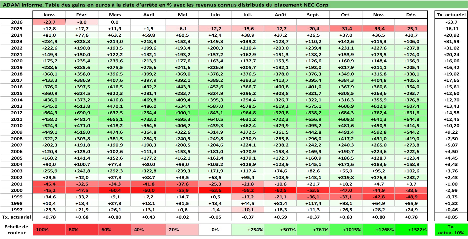 Dernière perfo 10 ans en %