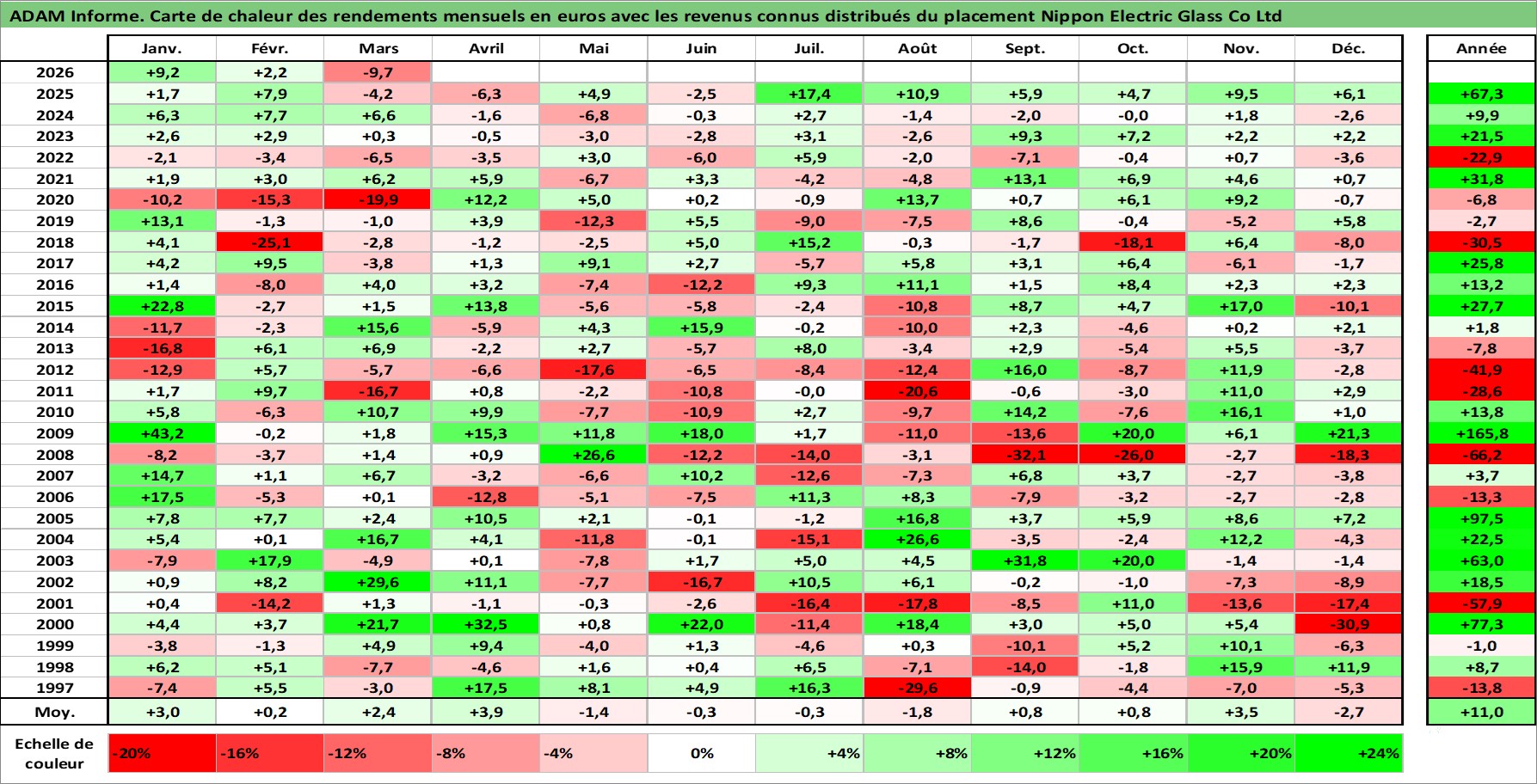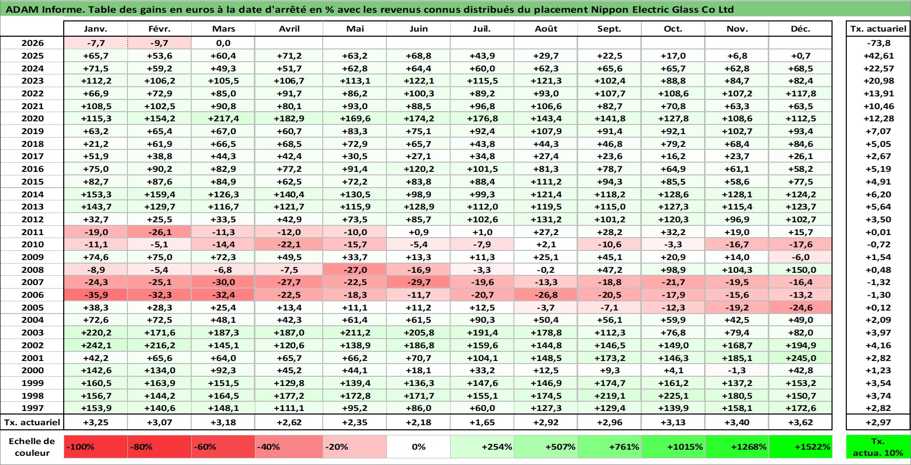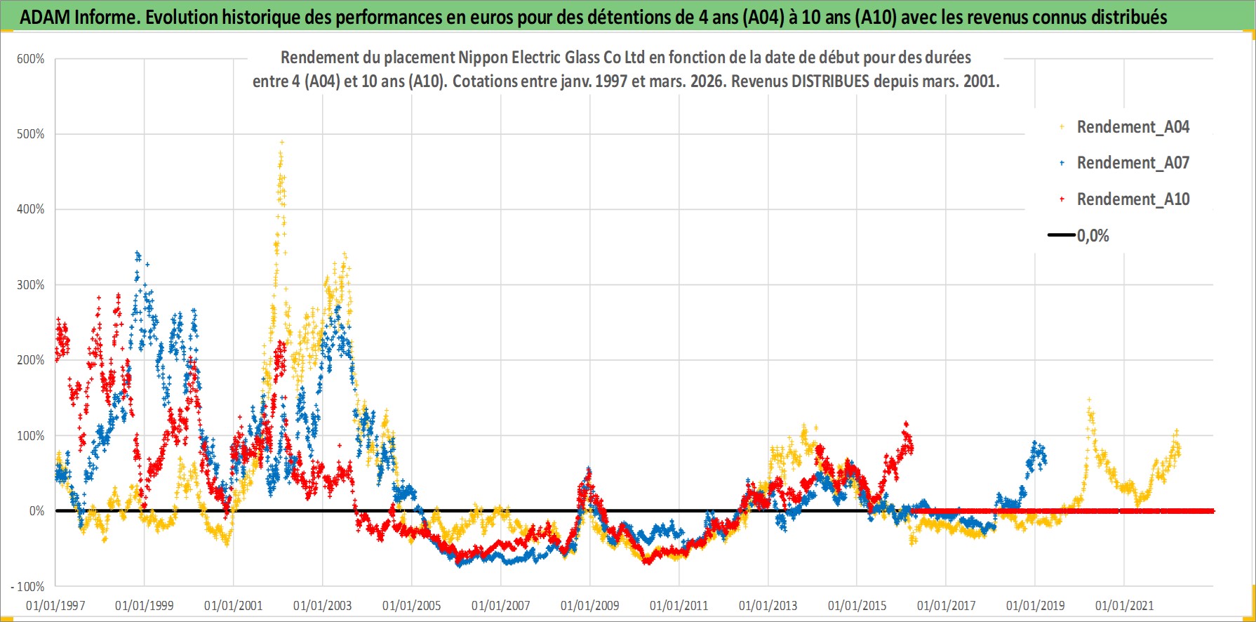 Site dédié aux investisseursPage dédiée sur site financeAnalyse des valorisations hebdomadaires de l'action Nippon Electric Glass Co Ltd. Cet actif est cote en JPY. Les valorisations sont en contrevaleur EURO et couvrent les semaines 1997W01 a 2026W13. Les revenus de cet actif financier sont pris en compte depuis la semaine 2001W13. La note ESG de cet actif n'est pas connue.