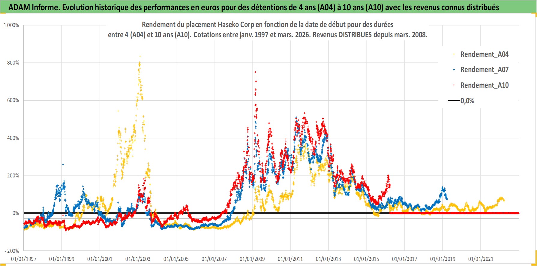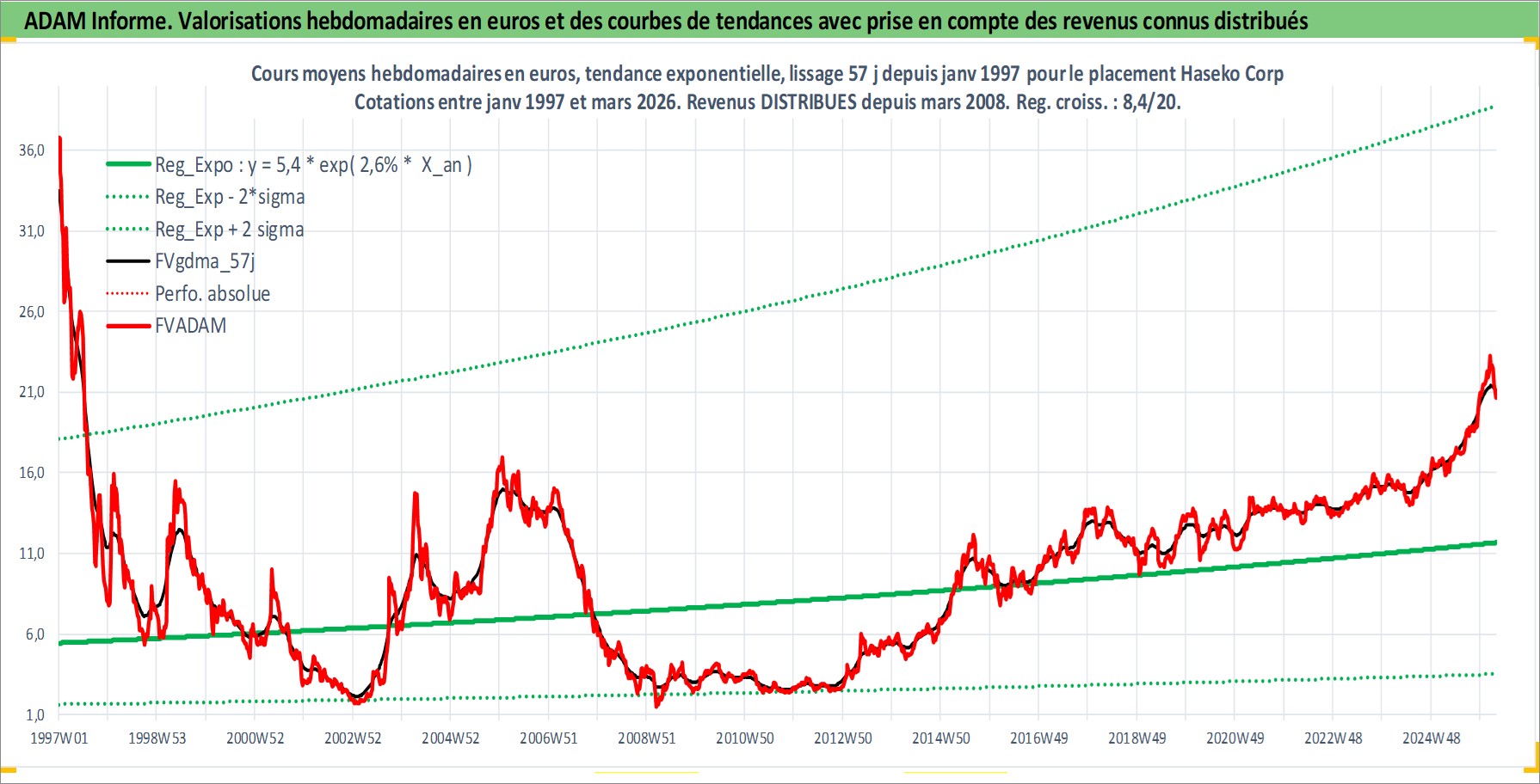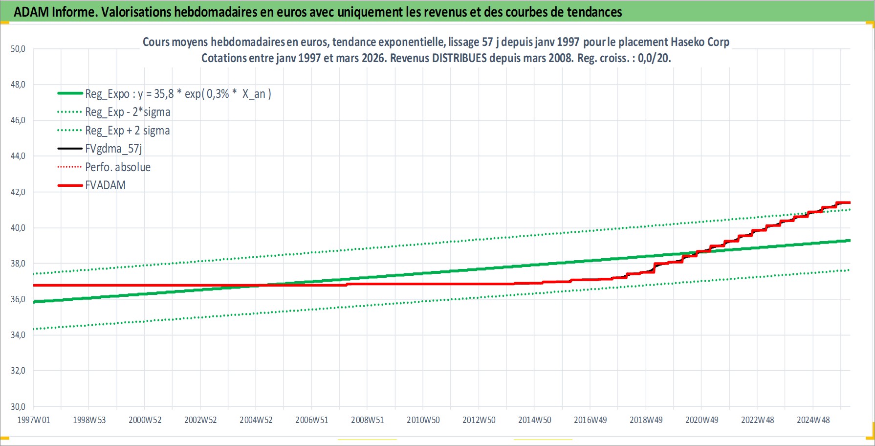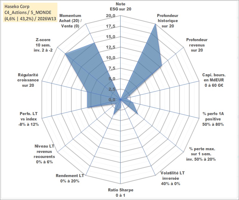 Site dédié aux investisseursPage dédiée sur site financeAnalyse des valorisations hebdomadaires de l'action Haseko Corp. Cet actif est cote en JPY. Les valorisations sont en contrevaleur EURO et couvrent les semaines 1997W01 a 2026W13. Les revenus de cet actif financier sont pris en compte depuis la semaine 2008W13. La note ESG de cet actif n'est pas connue.