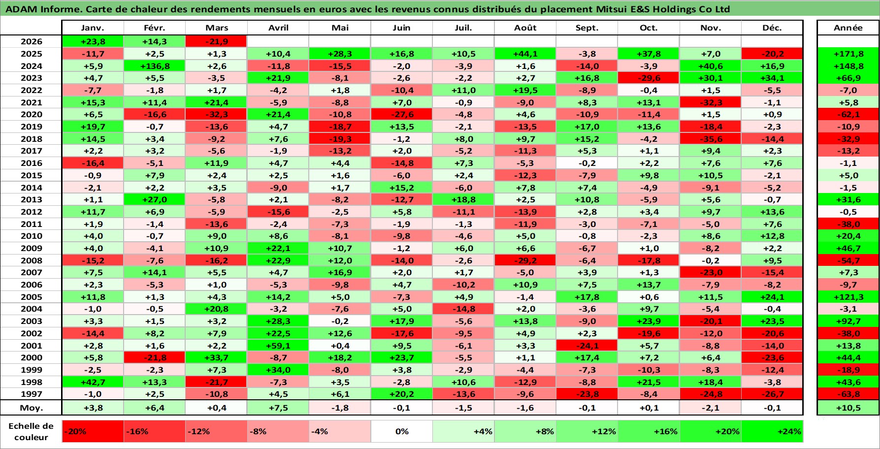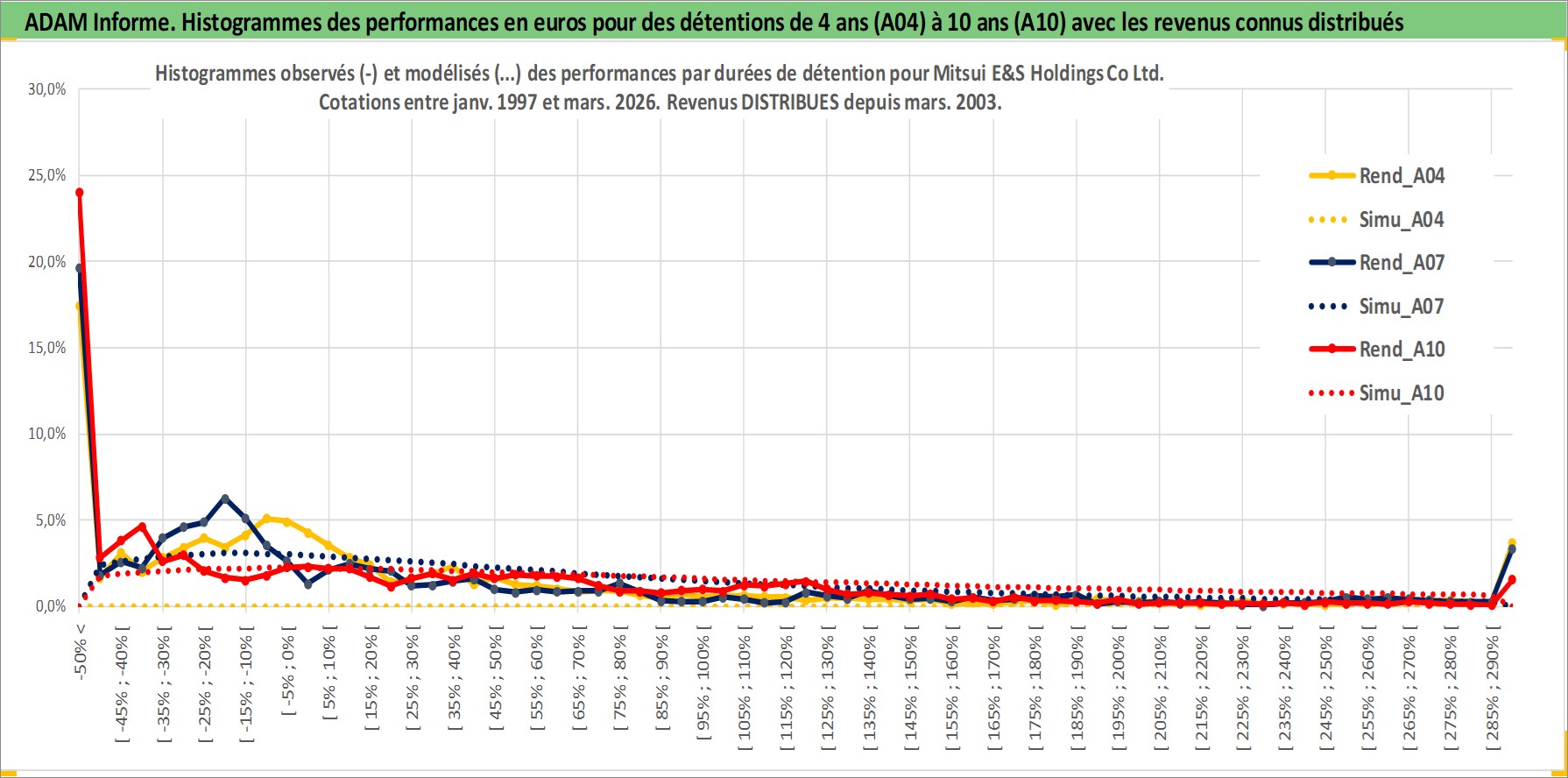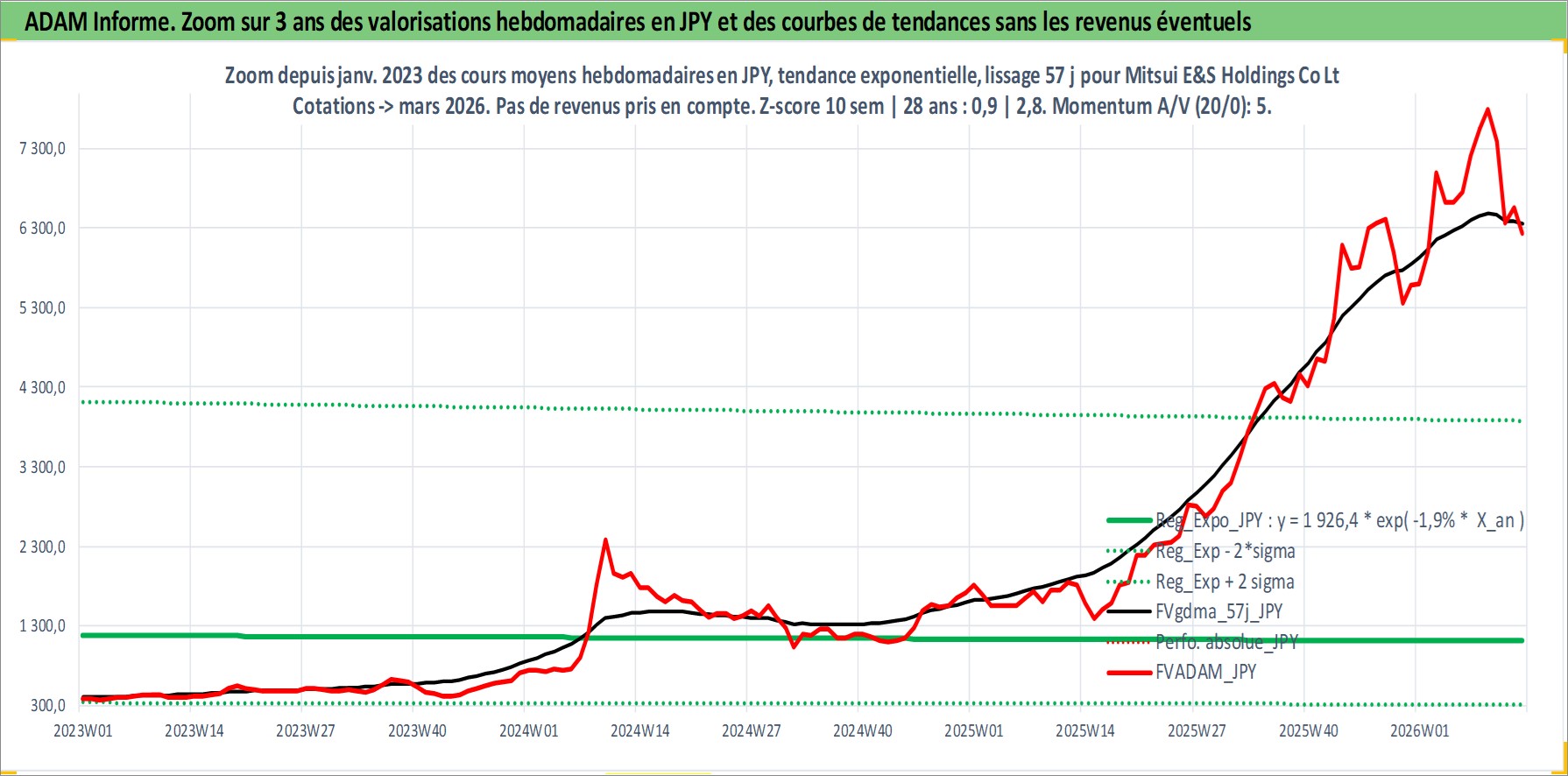 Site dédié aux investisseursPage dédiée sur site financeAnalyse des valorisations hebdomadaires de l'action Mitsui E&S Holdings Co Ltd. Cet actif est cote en JPY. Les valorisations sont en contrevaleur EURO et couvrent les semaines 1997W01 a 2026W13. Les revenus de cet actif financier sont pris en compte depuis la semaine 2003W13. La note ESG de cet actif n'est pas connue.