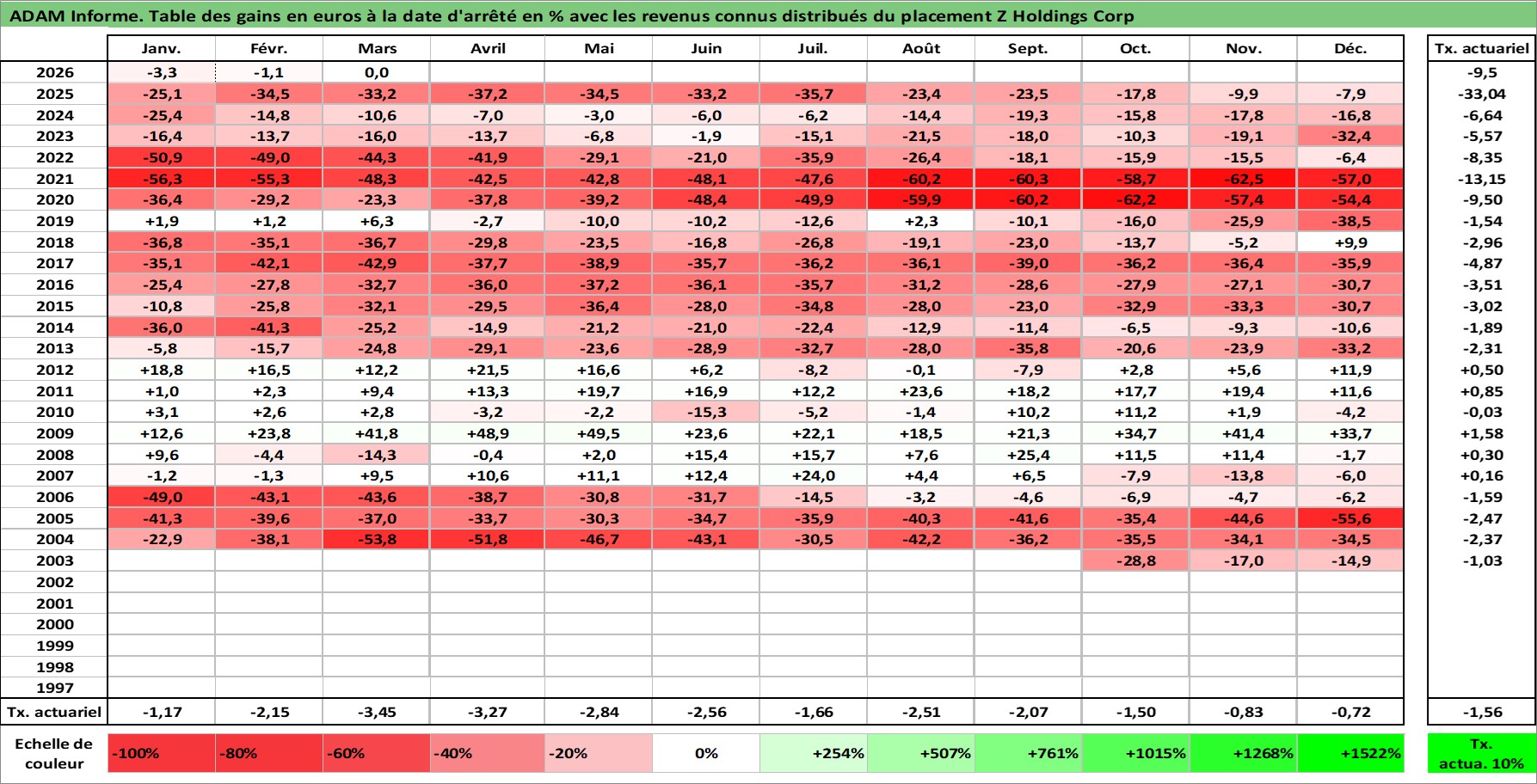 Dernière perfo 10 ans en %