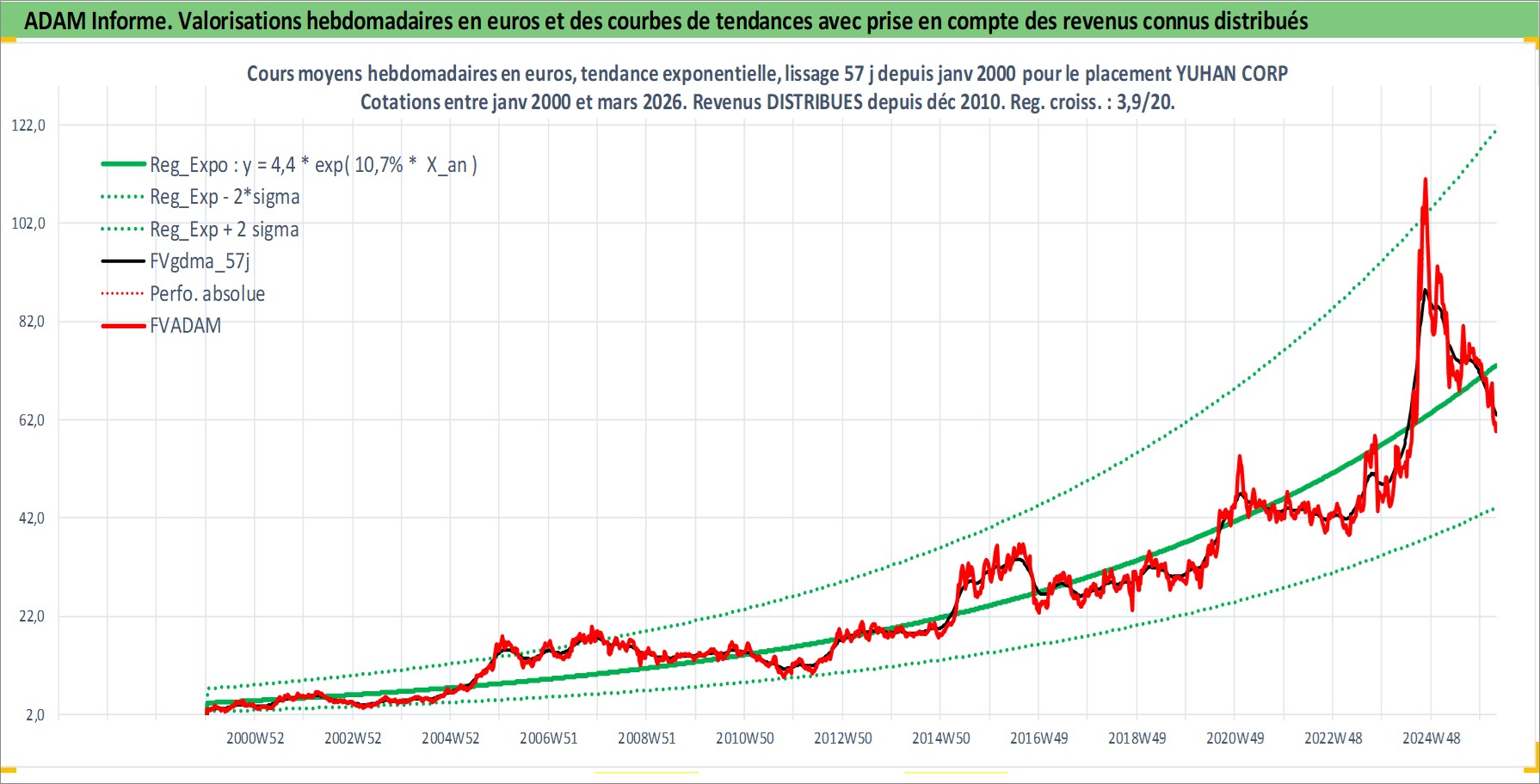 Site dédié aux investisseursPage dédiée sur site financeAnalyse des valorisations hebdomadaires de l'action YUHAN CORP. Cet actif est cote en KRW. Les valorisations sont en contrevaleur EURO et couvrent les semaines 2000W02 a 2026W13. Les revenus de cet actif financier sont pris en compte depuis la semaine 2010W52. La note ESG de cet actif n'est pas connue.