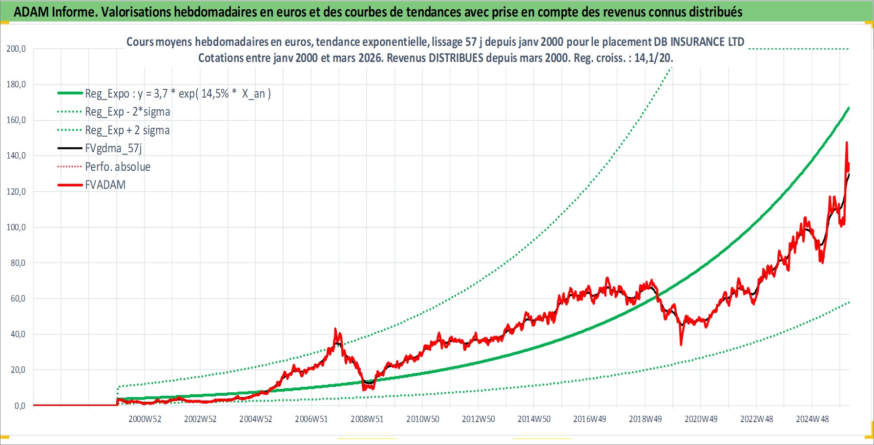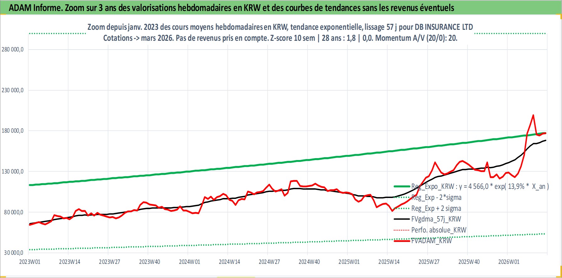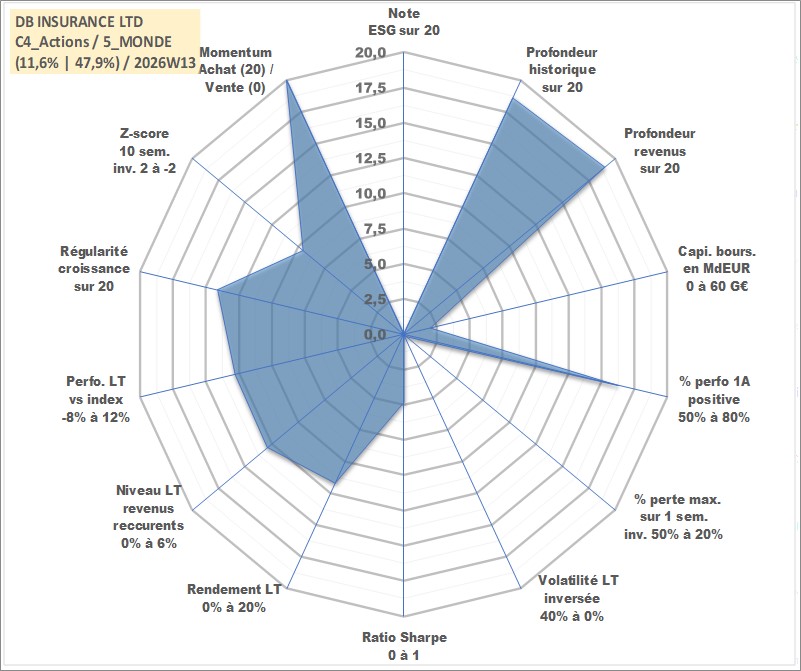 Site dédié aux investisseursPage dédiée sur site financeAnalyse des valorisations hebdomadaires de l'action DB INSURANCE LTD. Cet actif est cote en KRW. Les valorisations sont en contrevaleur EURO et couvrent les semaines 2000W02 a 2026W13. Les revenus de cet actif financier sont pris en compte depuis la semaine 2000W13. La note ESG de cet actif n'est pas connue.