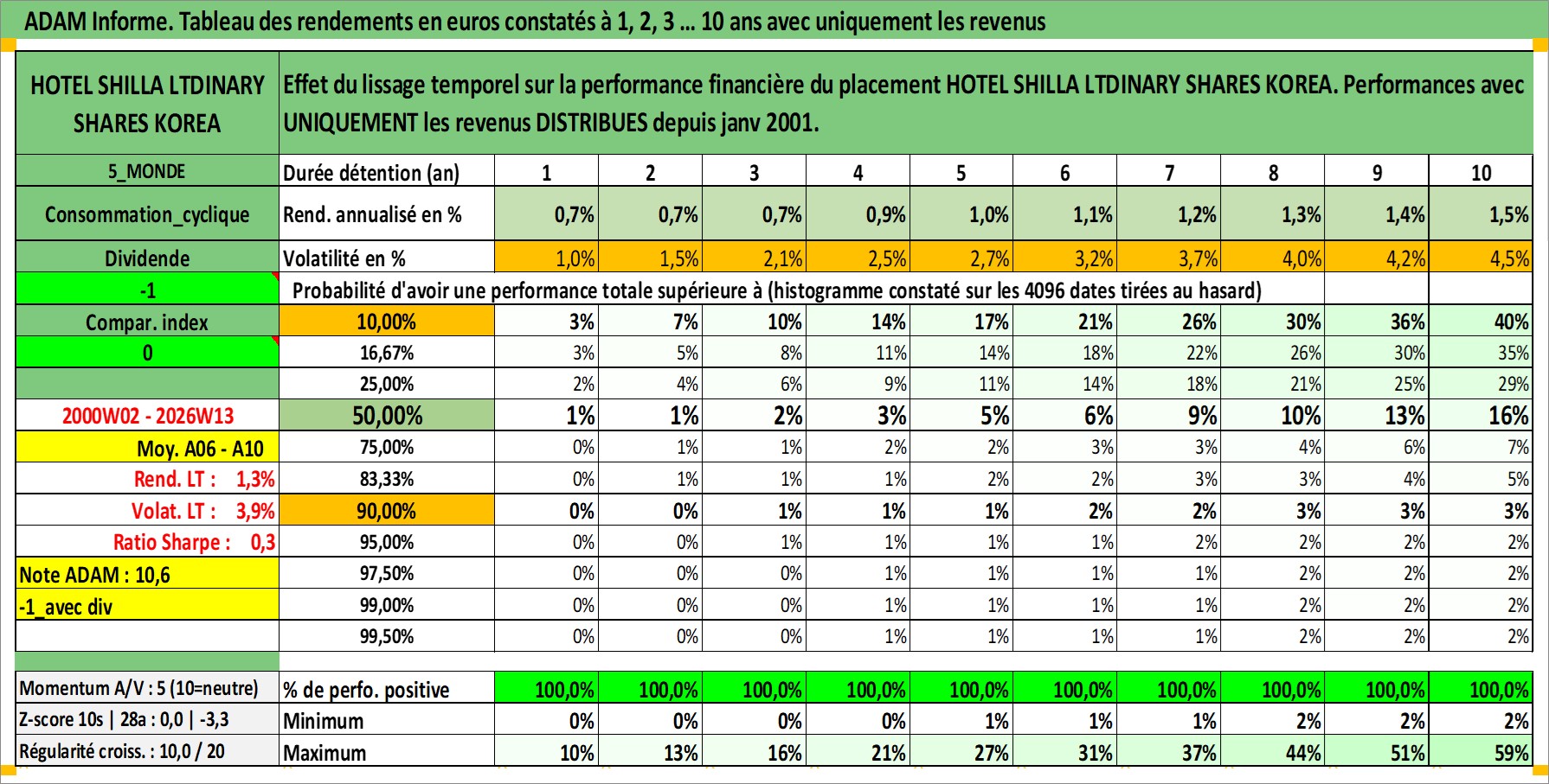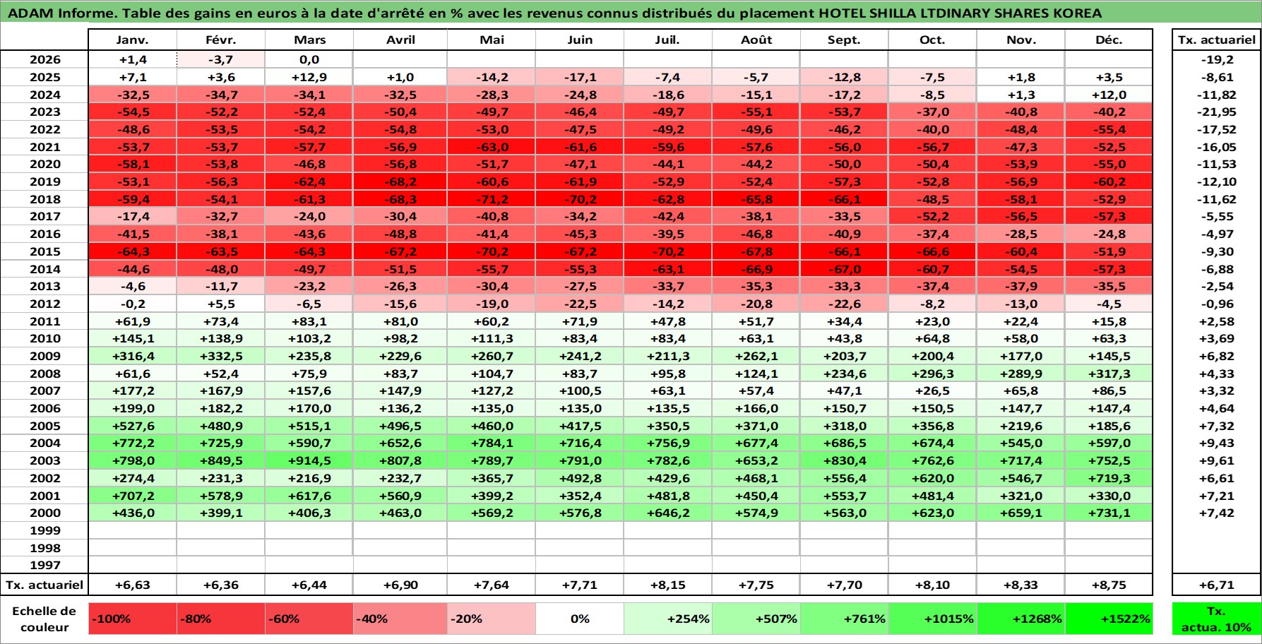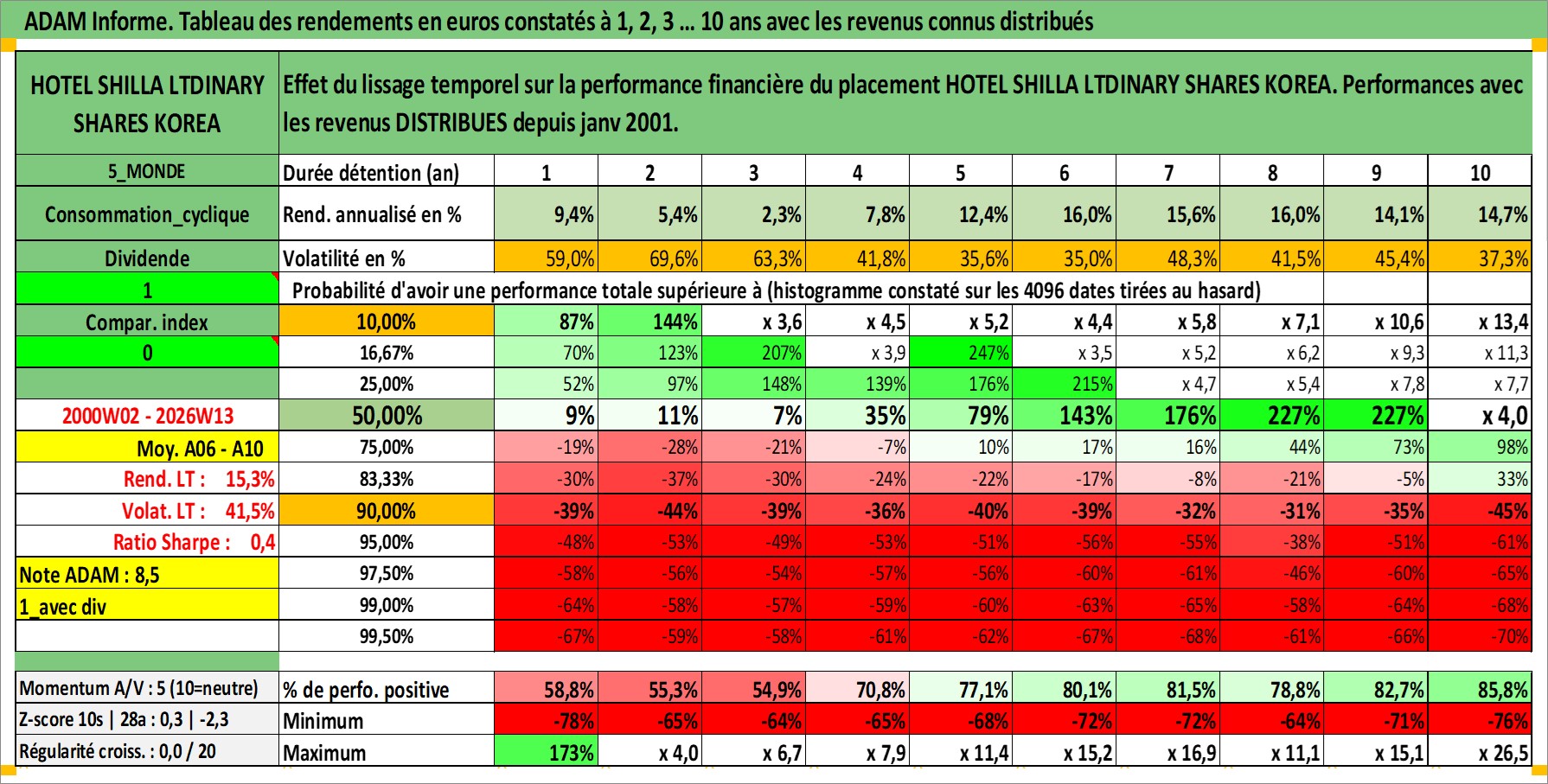 Site dédié aux investisseursPage dédiée sur site financeAnalyse des valorisations hebdomadaires de l'action HOTEL SHILLA LTDINARY SHARES KOREA. Cet actif est cote en KRW. Les valorisations sont en contrevaleur EURO et couvrent les semaines 2000W02 a 2026W13. Les revenus de cet actif financier sont pris en compte depuis la semaine 2001W01. La note ESG de cet actif n'est pas connue.