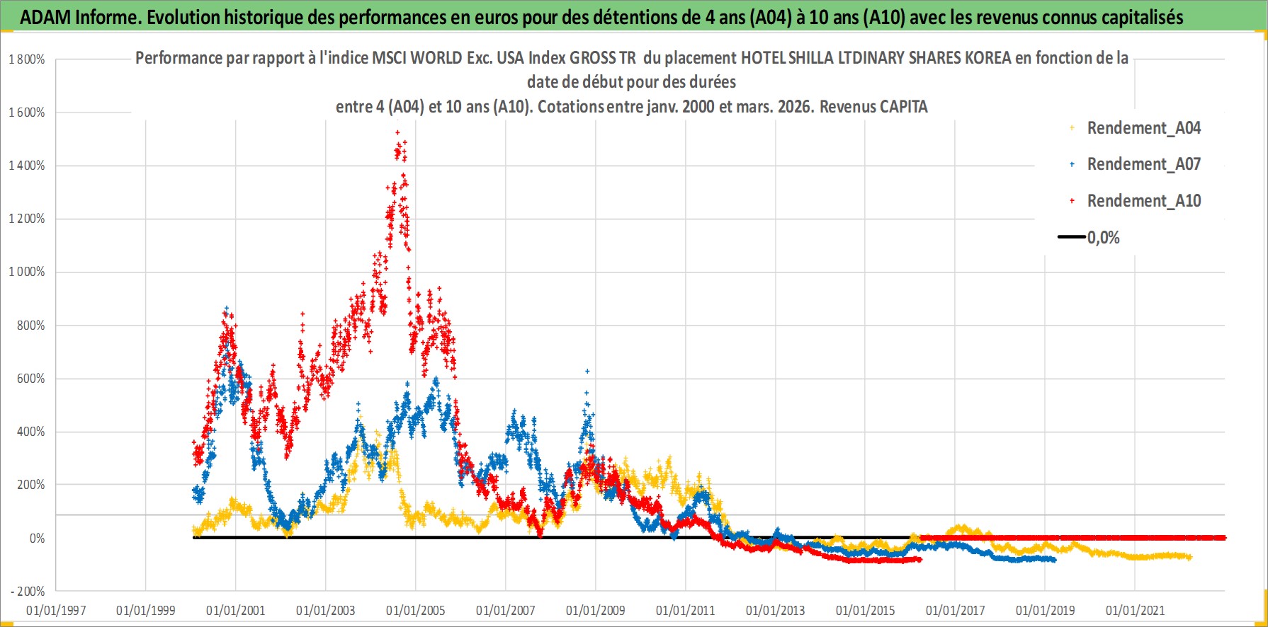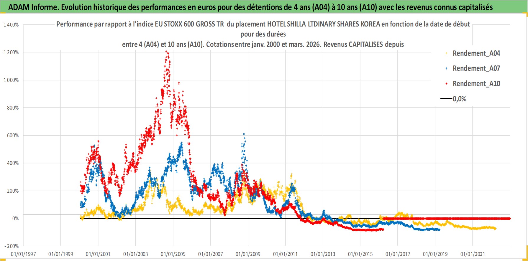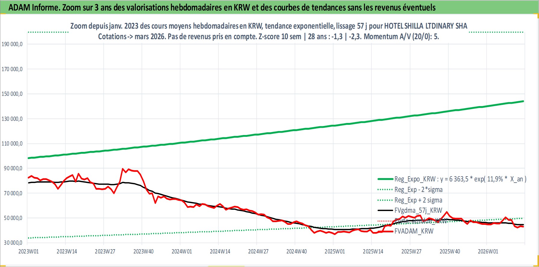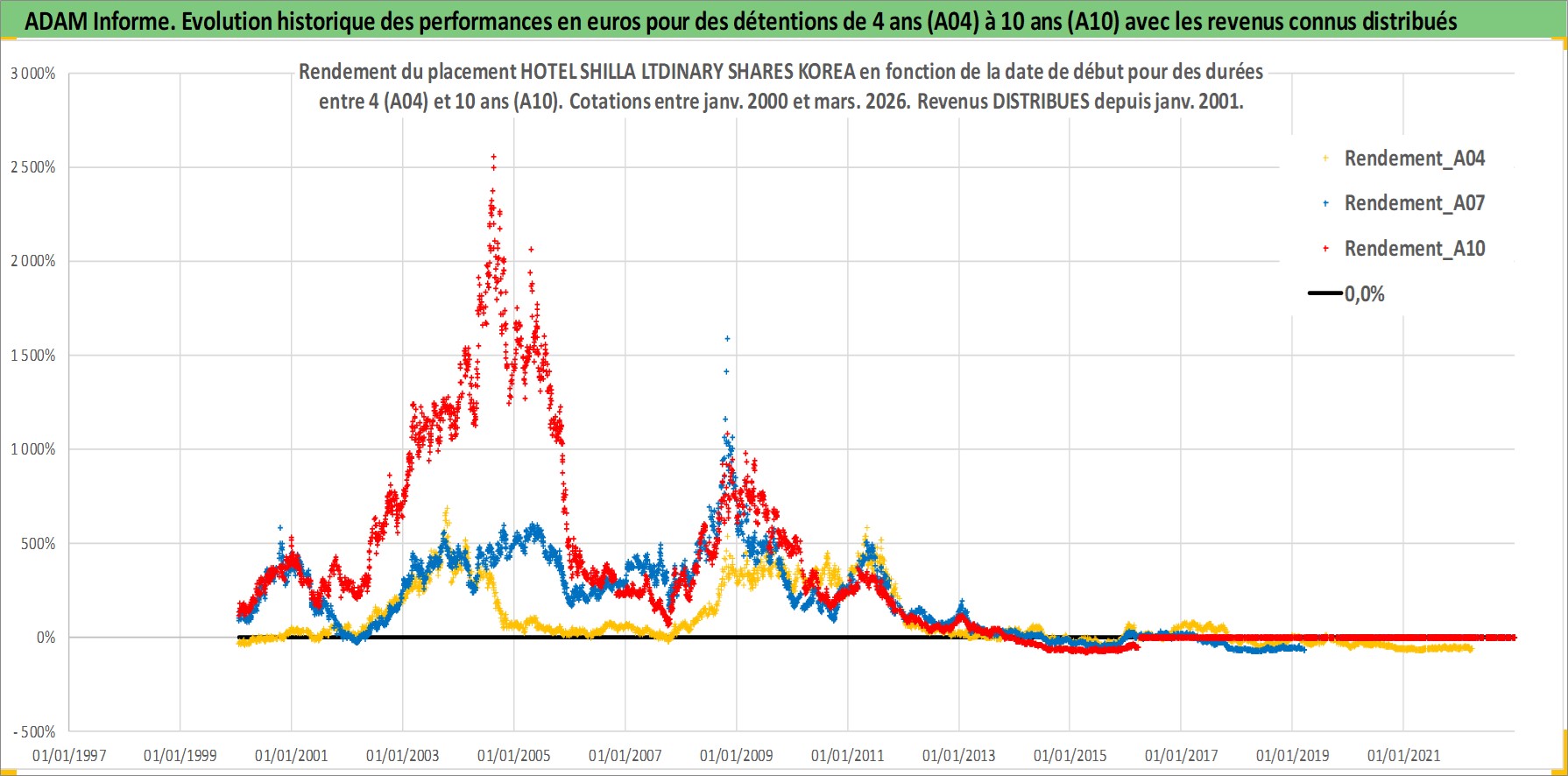 Site dédié aux investisseursPage dédiée sur site financeAnalyse des valorisations hebdomadaires de l'action HOTEL SHILLA LTDINARY SHARES KOREA. Cet actif est cote en KRW. Les valorisations sont en contrevaleur EURO et couvrent les semaines 2000W02 a 2026W13. Les revenus de cet actif financier sont pris en compte depuis la semaine 2001W01. La note ESG de cet actif n'est pas connue.