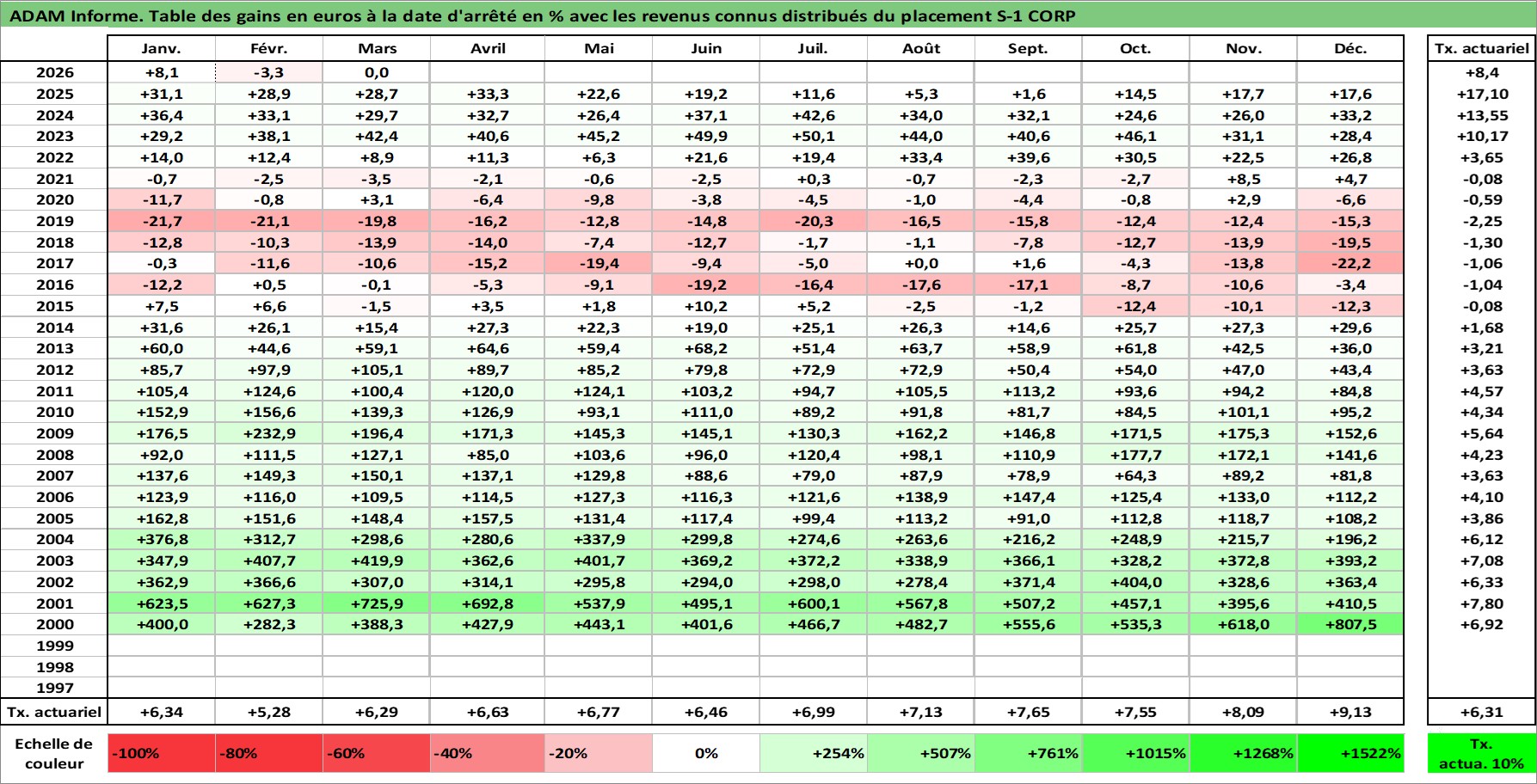 Dernière perfo 10 ans en %