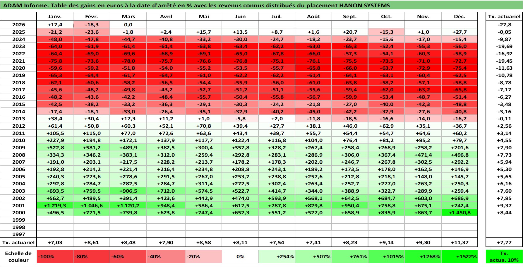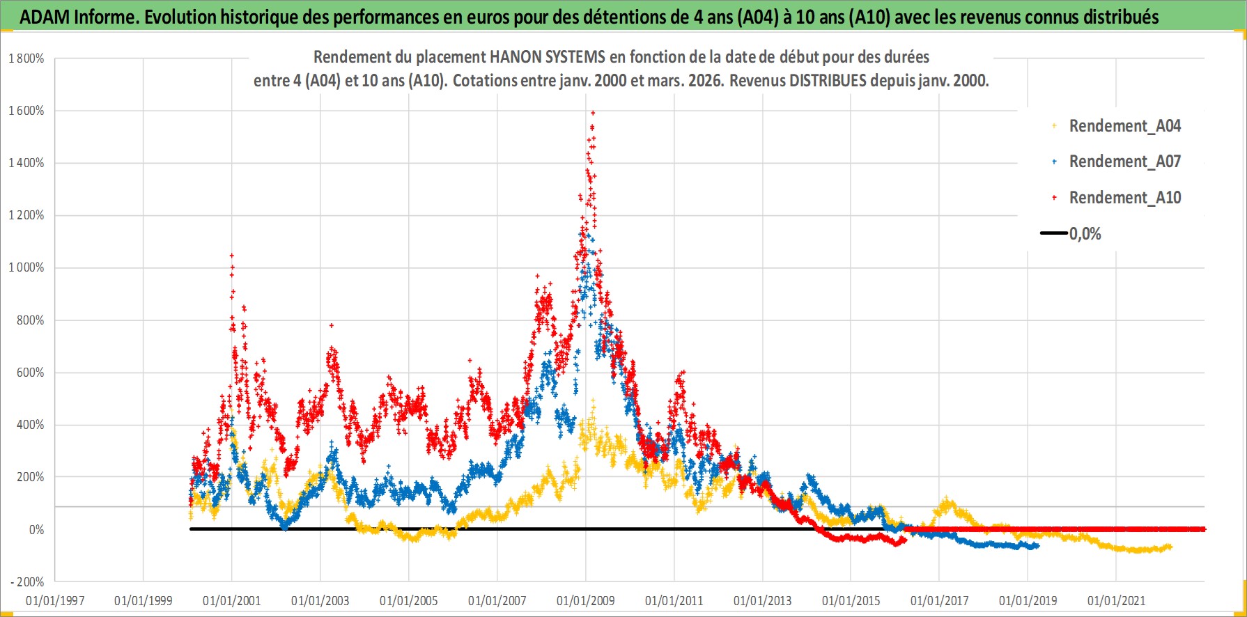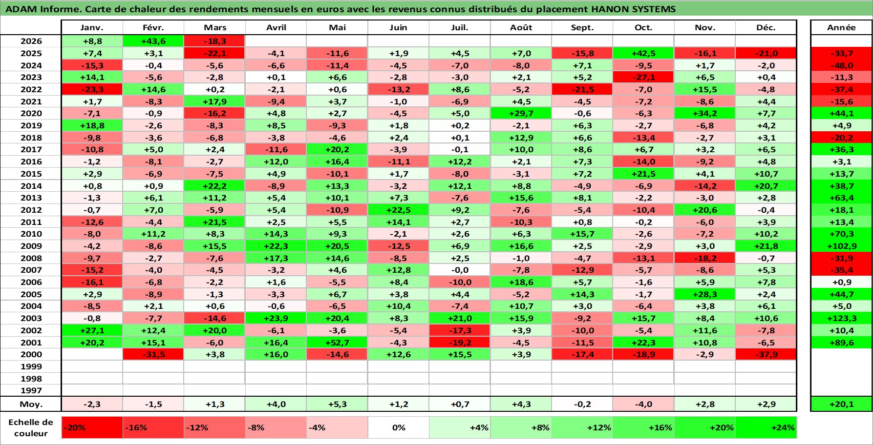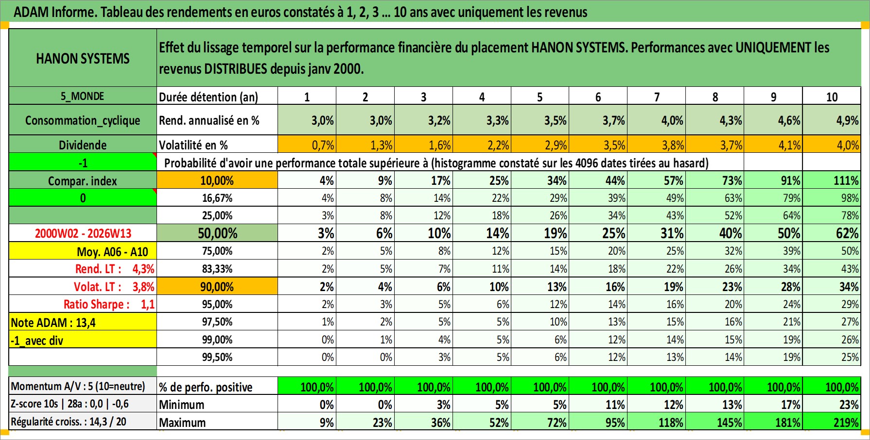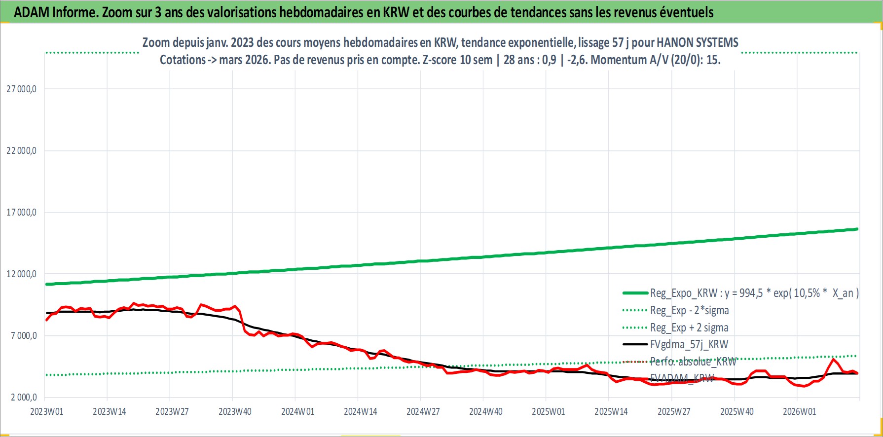 Site dédié aux investisseursPage dédiée sur site financeAnalyse des valorisations hebdomadaires de l'action HANON SYSTEMS. Cet actif est cote en KRW. Les valorisations sont en contrevaleur EURO et couvrent les semaines 2000W02 a 2026W13. Les revenus de cet actif financier sont pris en compte depuis la semaine 2000W01. La note ESG de cet actif n'est pas connue.